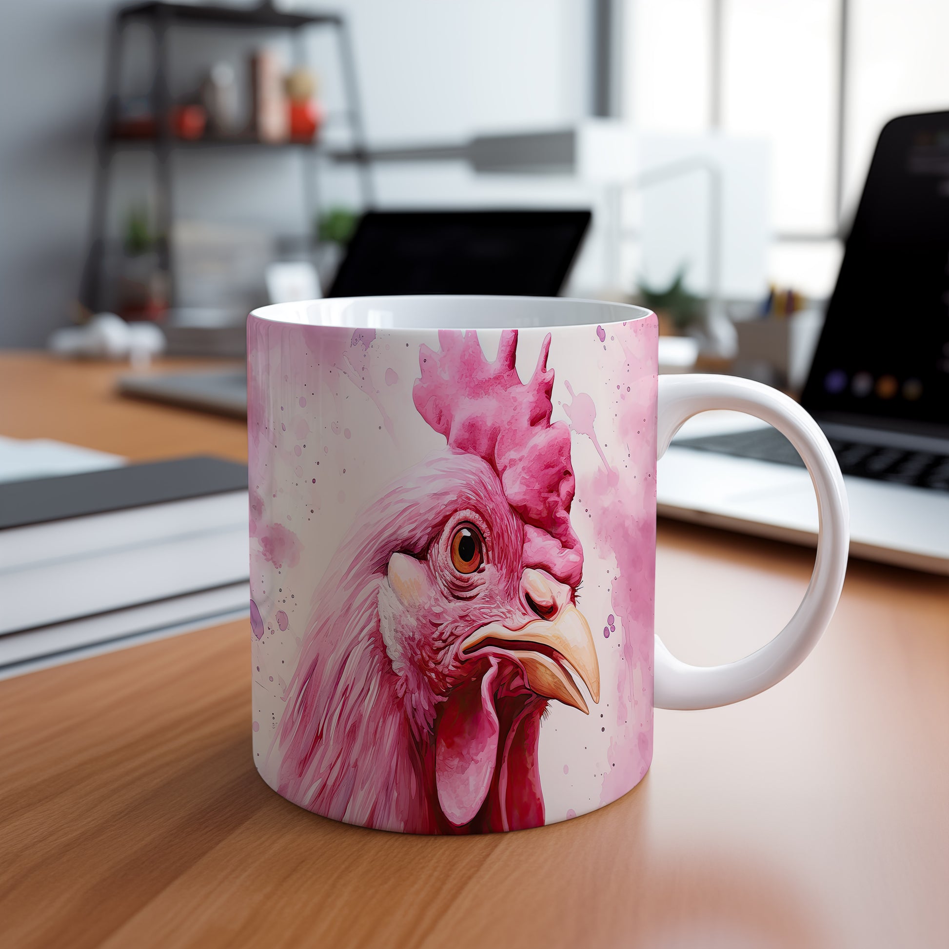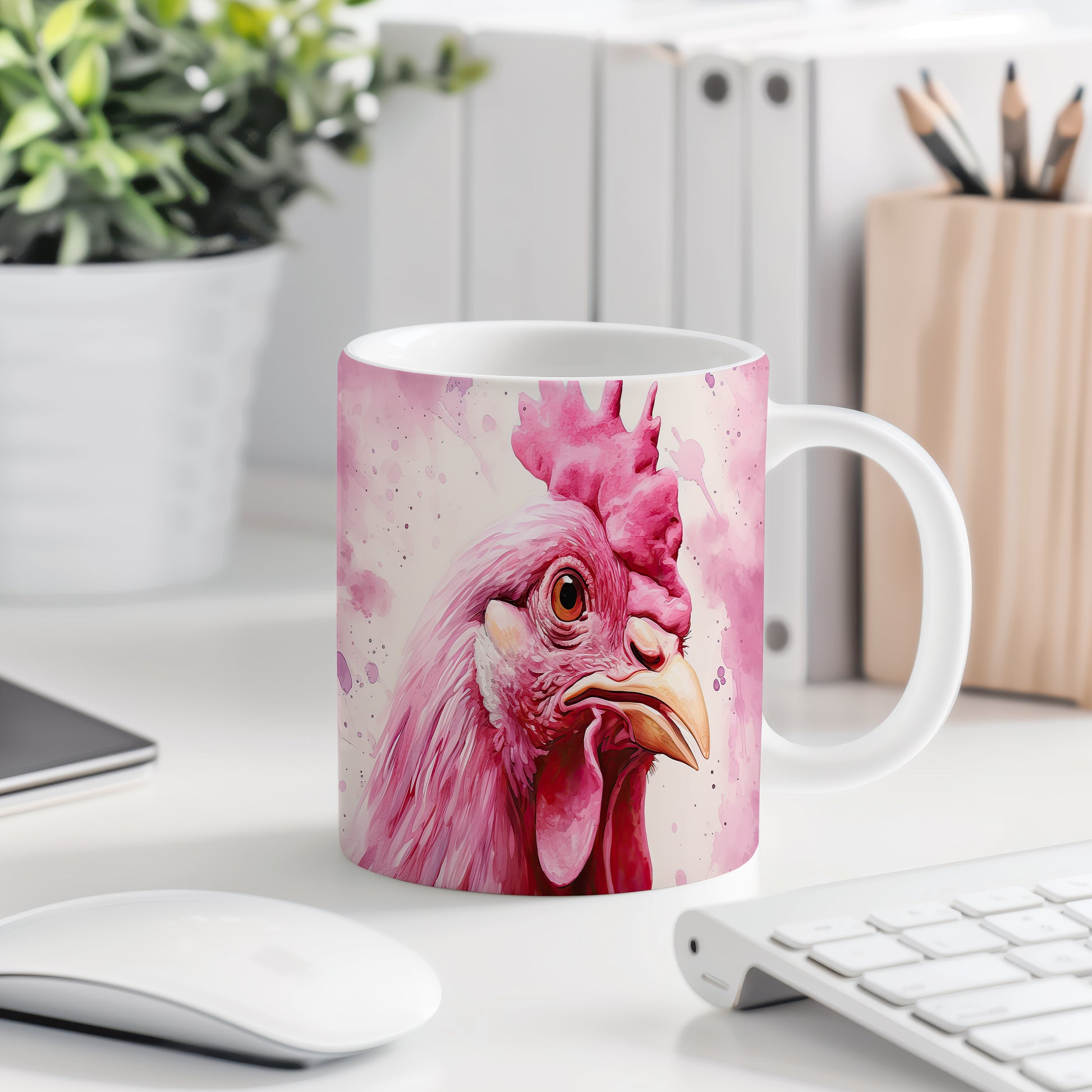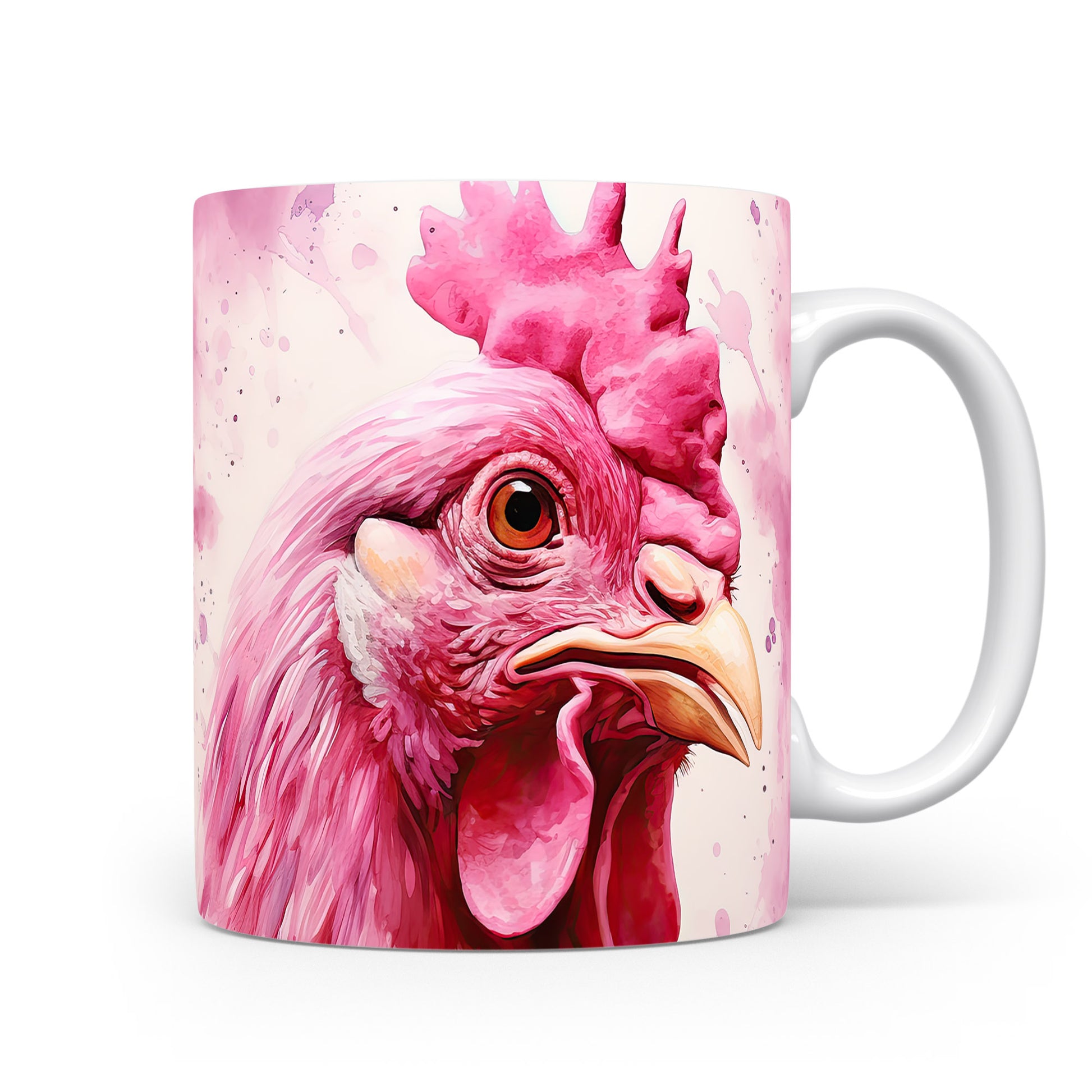 Tento hrnek zobrazuje detailní portrét růžové slepice v živých barvách. Je ideální pro milovníky zvířat a skvělým dárkem pro přátele či rodinu. Materiál: keramika. Objem: 330 ml. Vhodné do myčky i mikrovlnky. Používání tohoto hrnku přináší radost a barevnost do každodenního pití.
