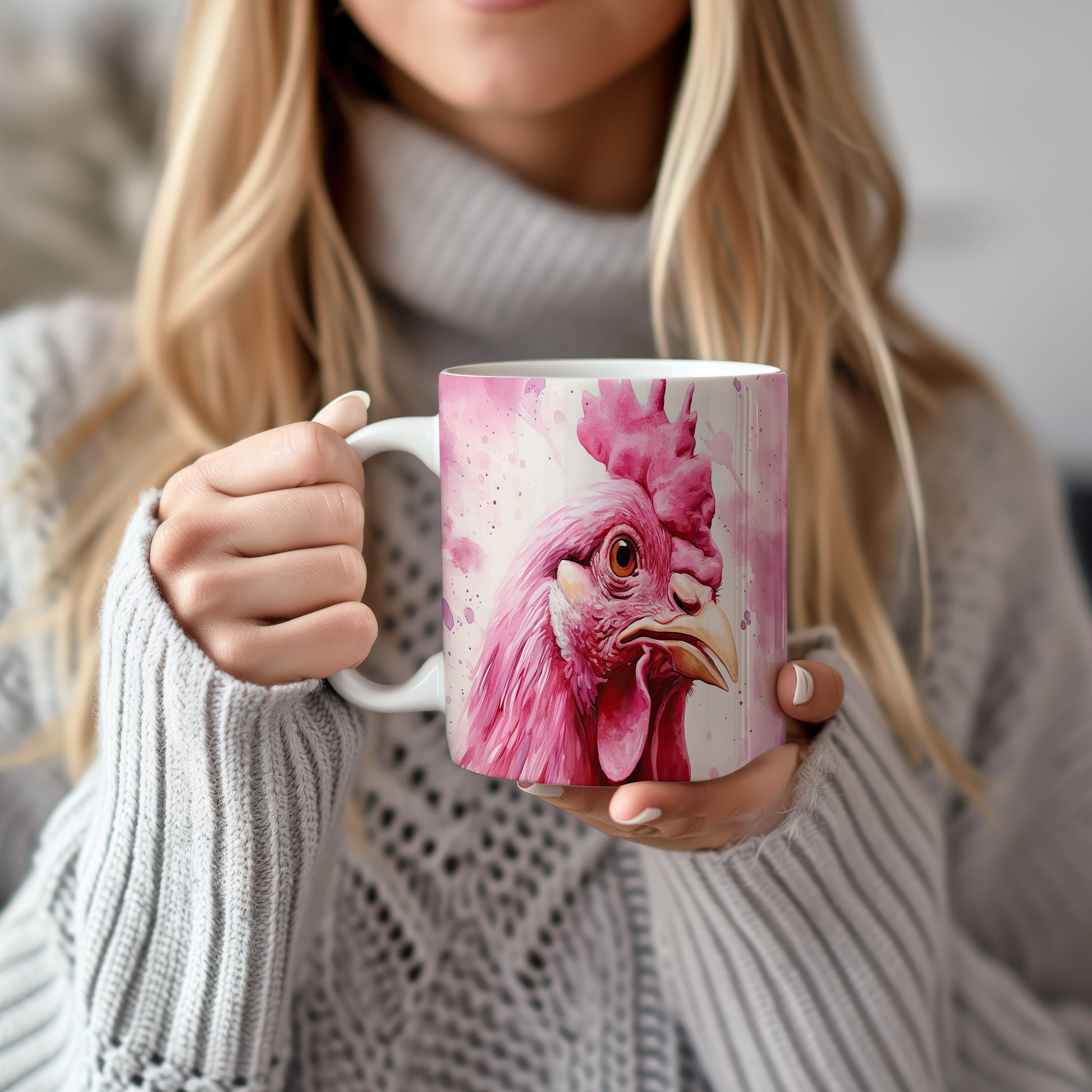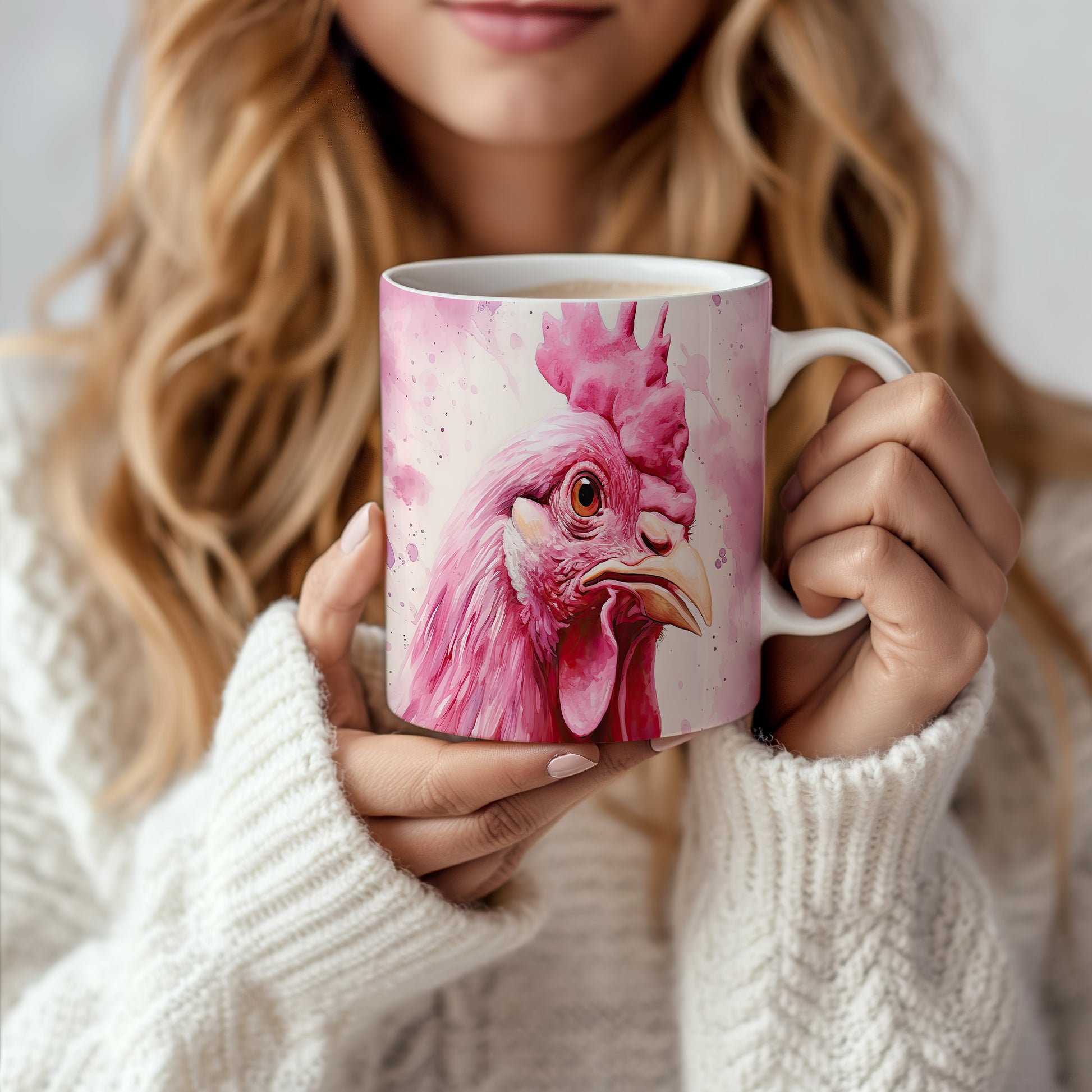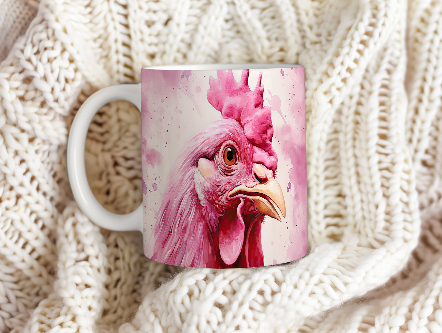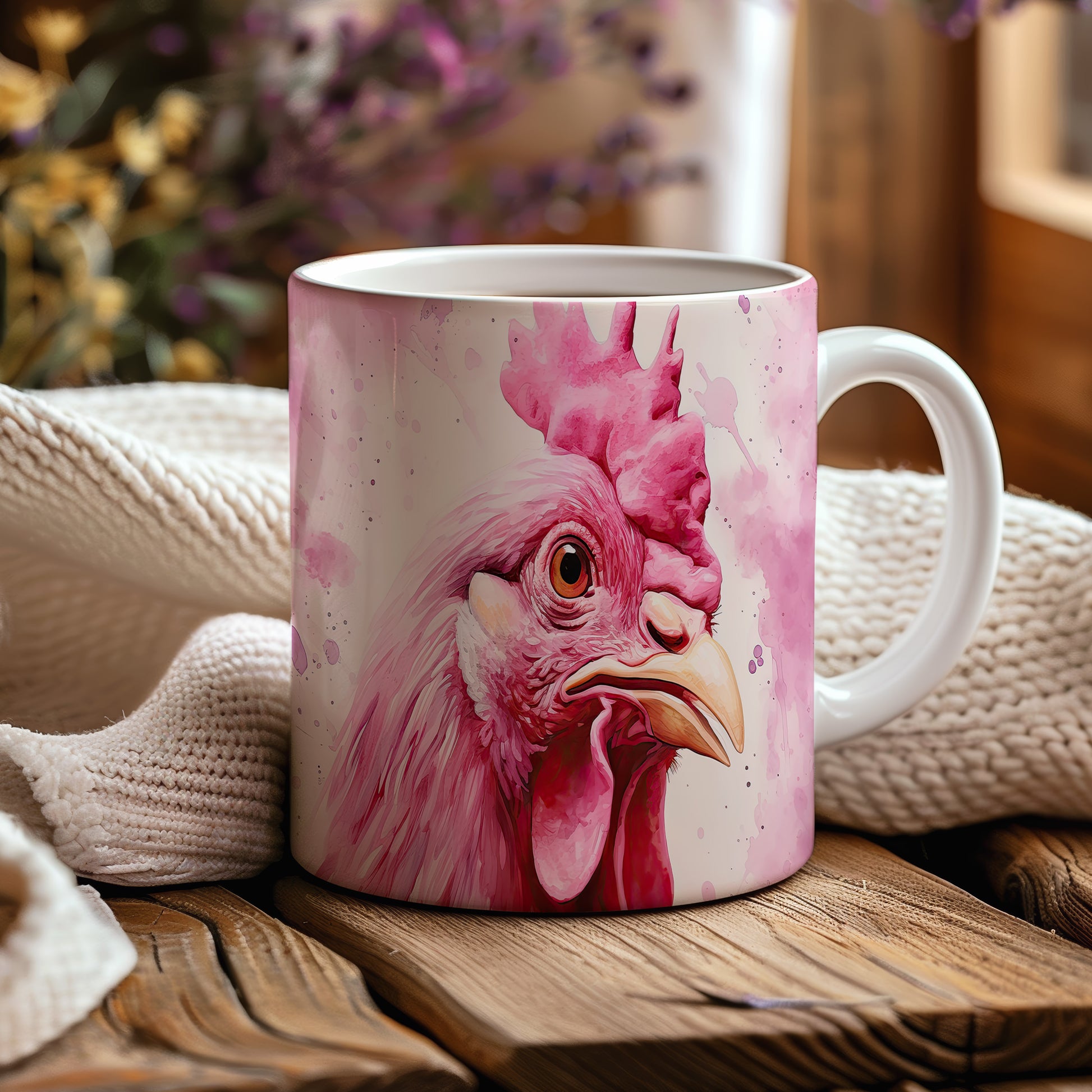 Tento hrnek zobrazuje detailní portrét růžové slepice v živých barvách. Je ideální pro milovníky zvířat a skvělým dárkem pro přátele či rodinu. Materiál: keramika. Objem: 330 ml. Vhodné do myčky i mikrovlnky. Používání tohoto hrnku přináší radost a barevnost do každodenního pití.
