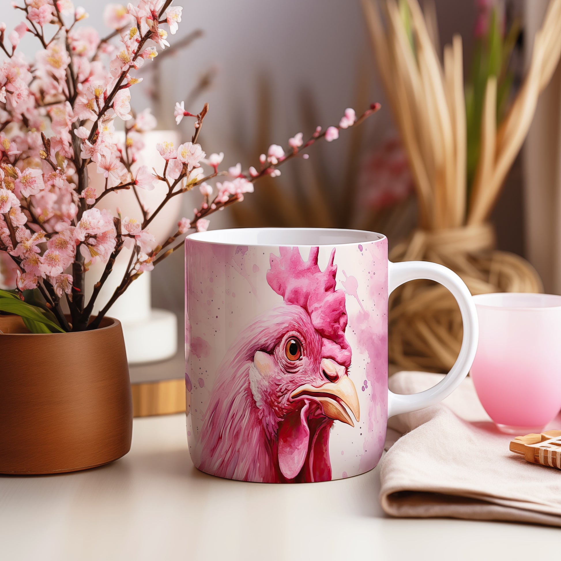 Hrnek s růžovou slepicí