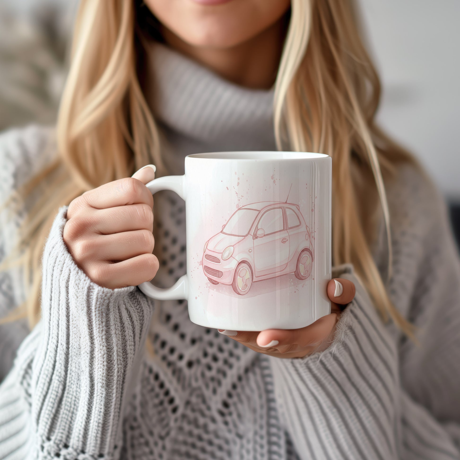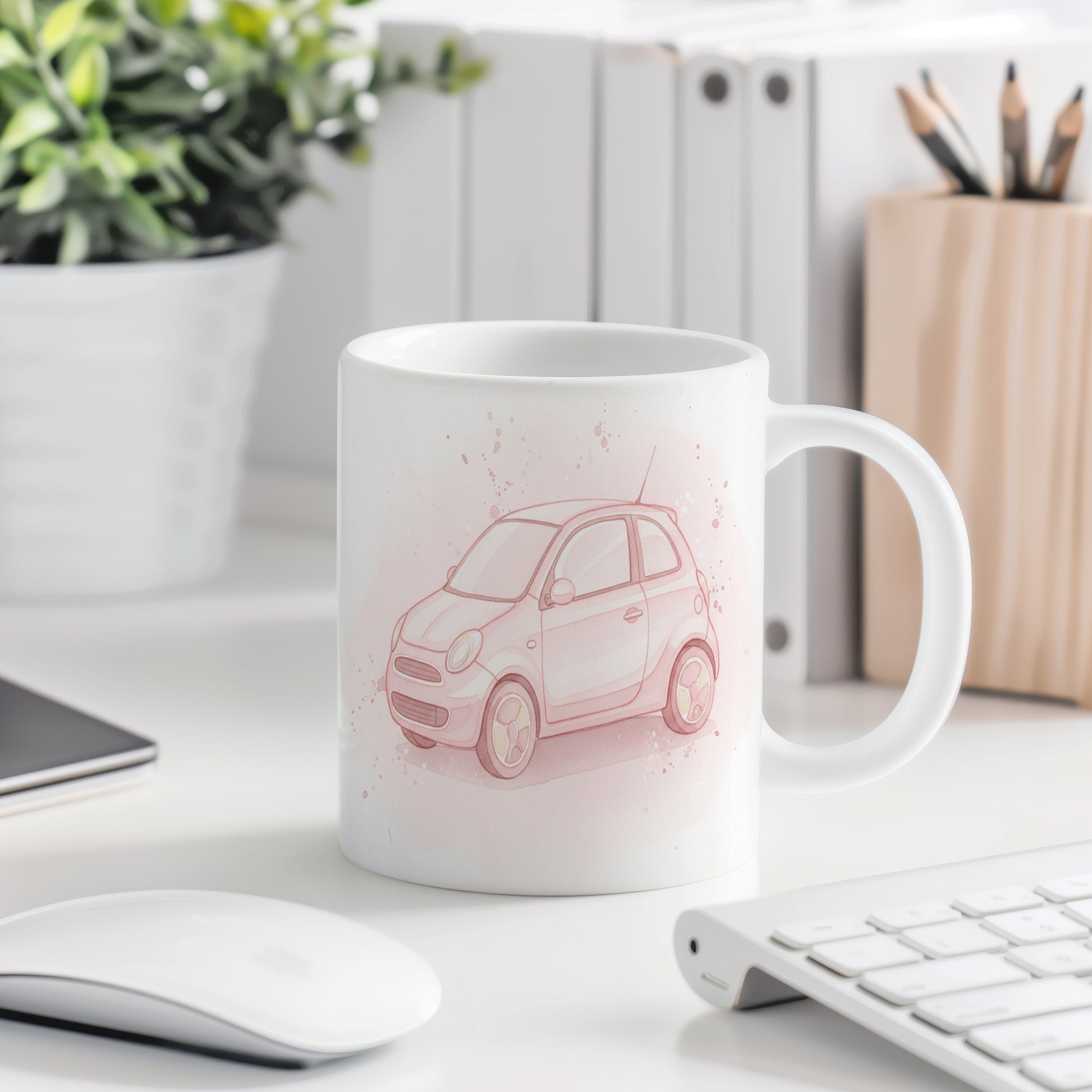 Objevte kouzlo akvarelového růžového autíčka na tomto hrnku. Jemné tóny vytvářejí elegantní vzhled. Hrnek 330 ml – vhodný do myčky i mikrovlnky.