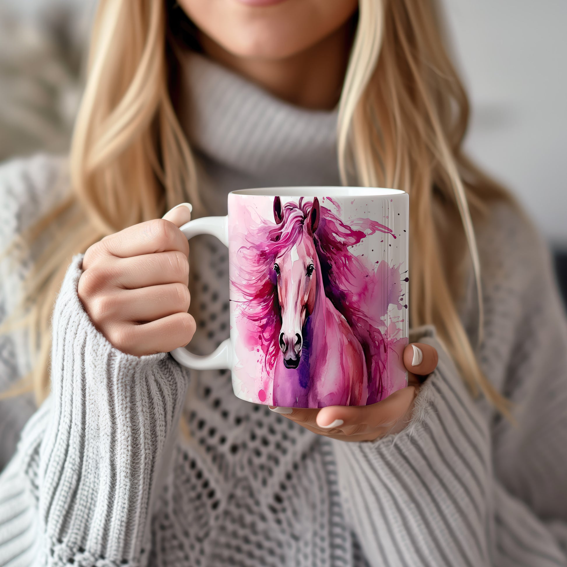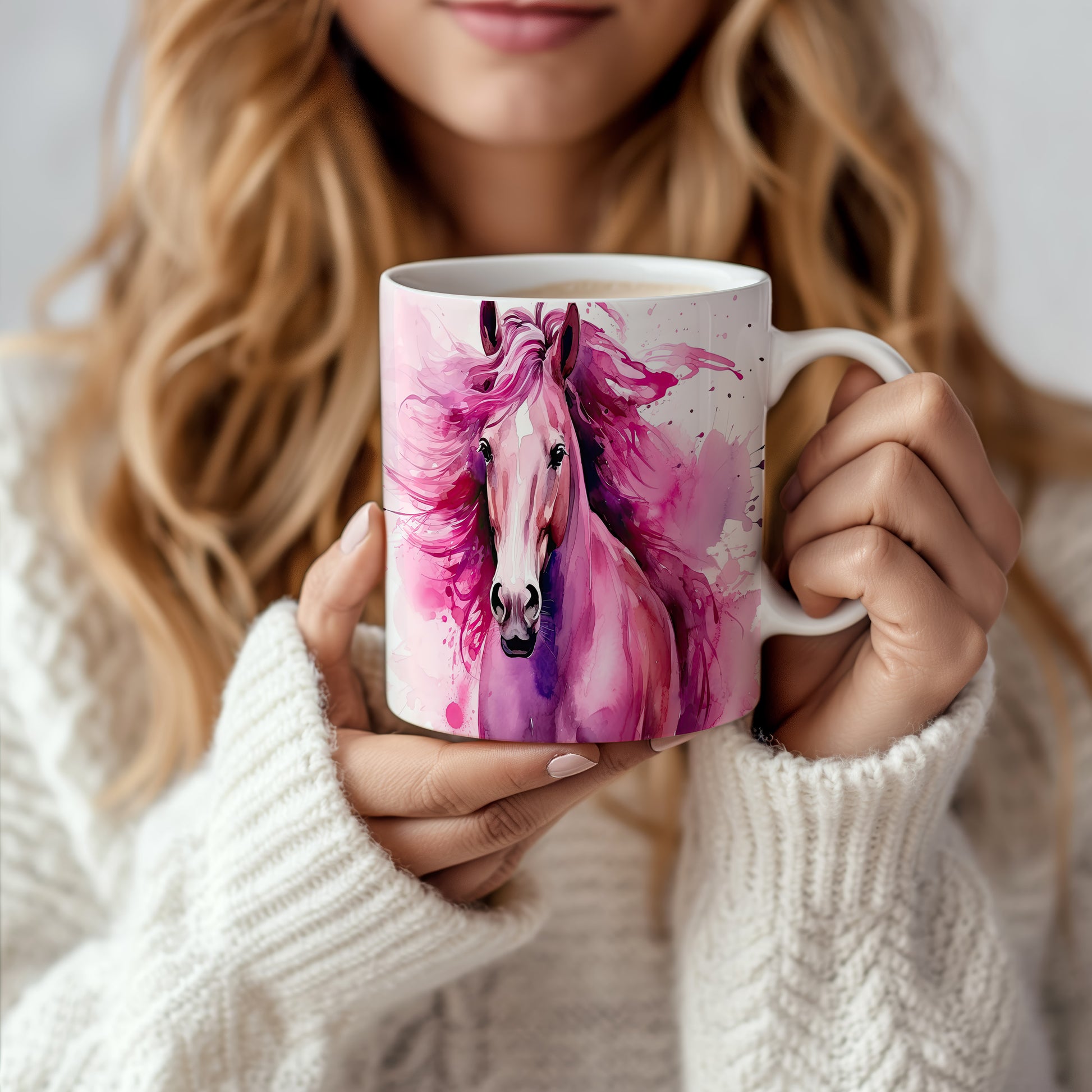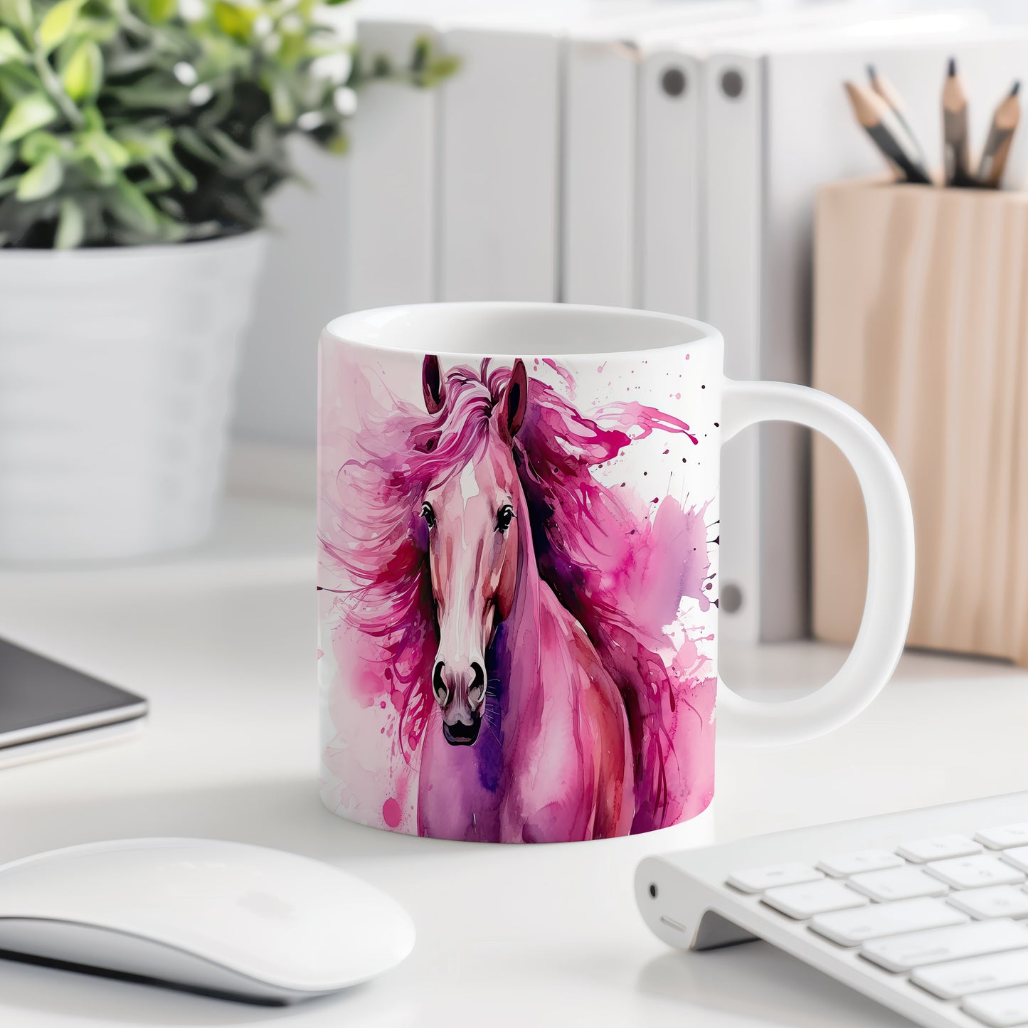 Tento hrnek s motivem růžového koně v akvarelovém stylu přinese do každého dne nádech originality. Je ideální pro milovníky zvířat a skvělým dárkem pro přátele či rodinu. Materiál: keramika. Objem: 330 ml. Vhodné do myčky i mikrovlnky. Používání tohoto hrnku vám zpříjemní každé ráno.