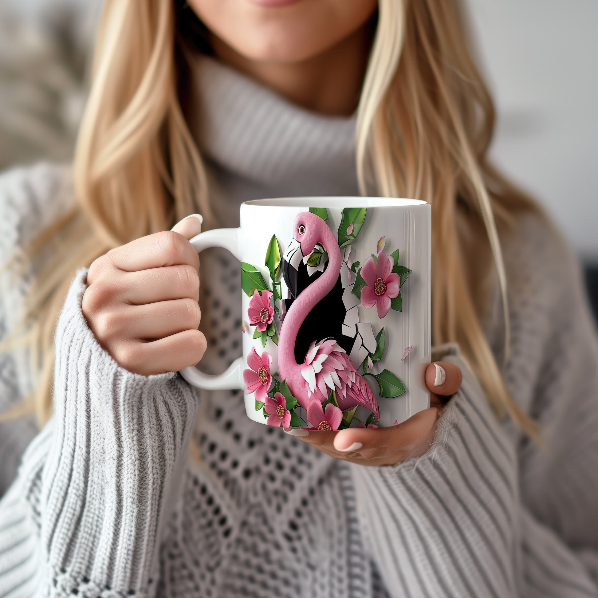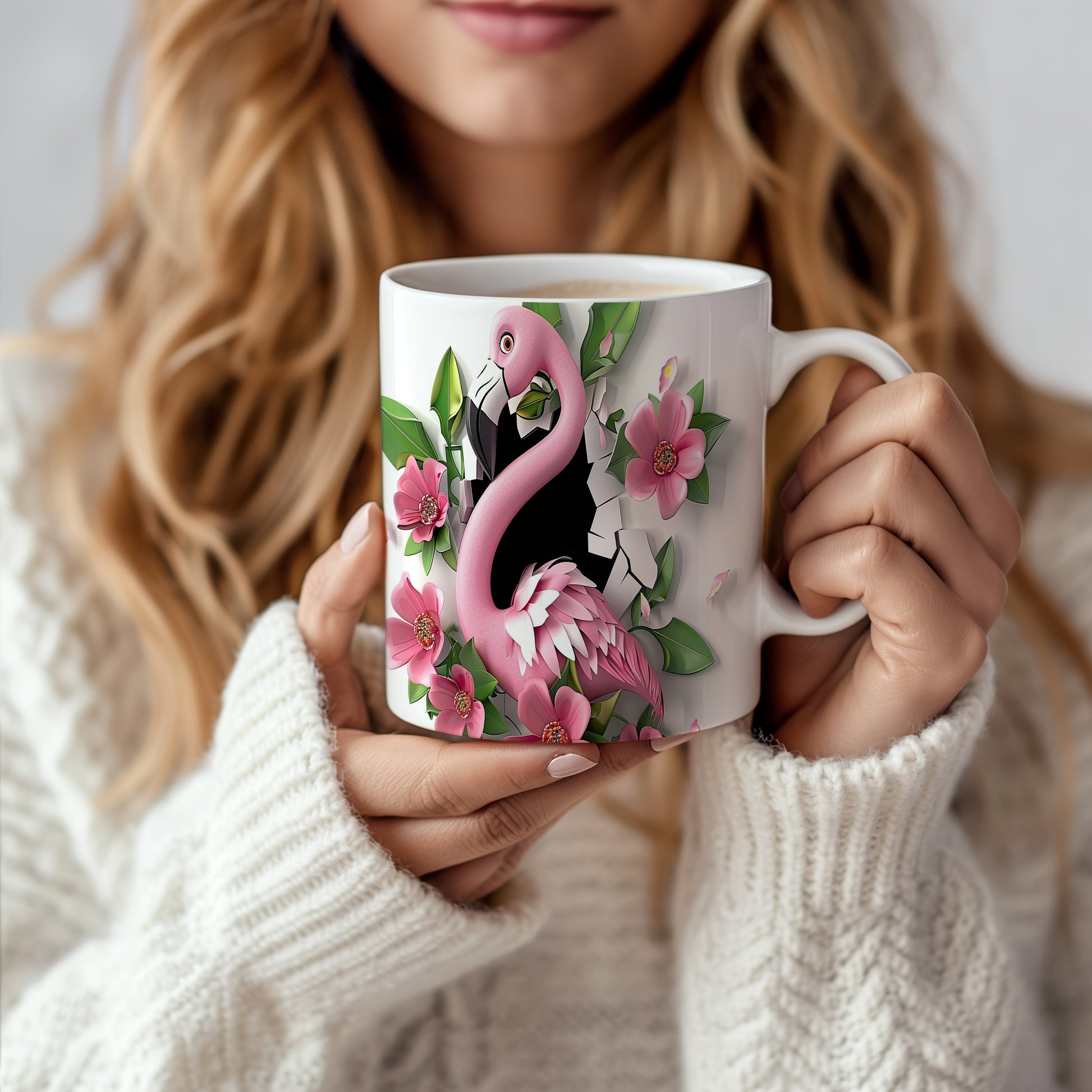 Tento hrnek zobrazuje růžového plameňáka s květinovým motivem. Je ideální pro milovníky přírody a exotických zvířat, skvělý tip na dárek pro přátele nebo rodinu. Materiál: keramika. Objem: 330 ml. Vhodné do myčky i mikrovlnky. Používání tohoto hrnku přináší radost a oživí každé pití.