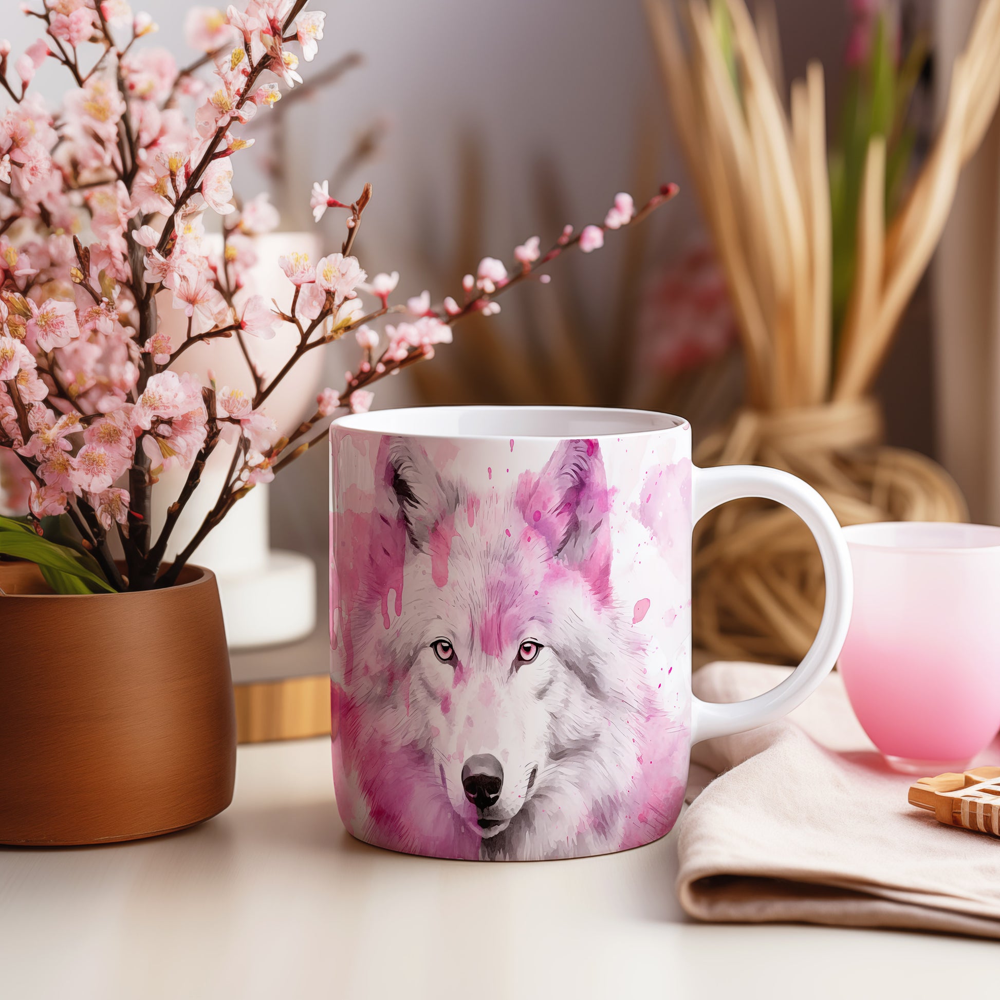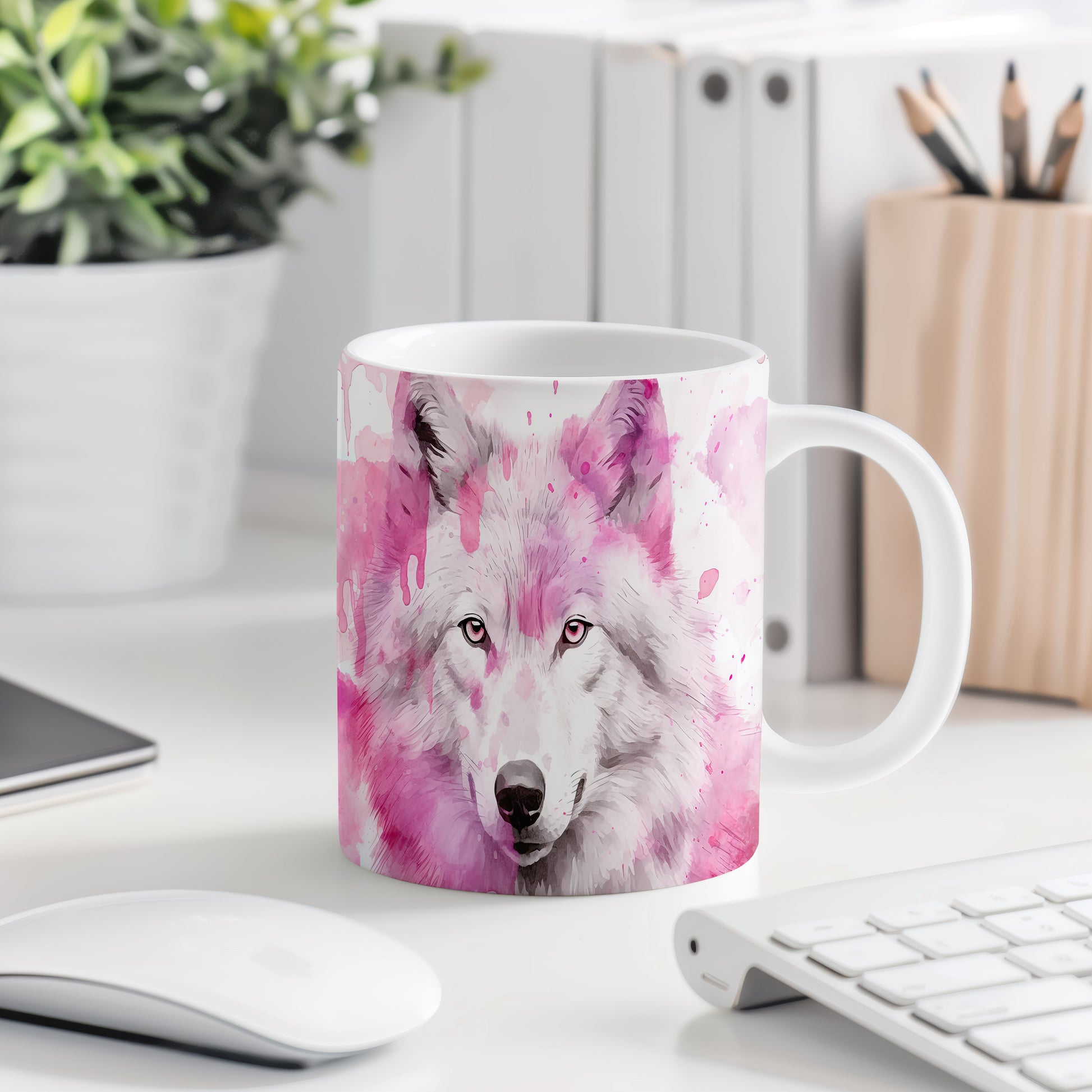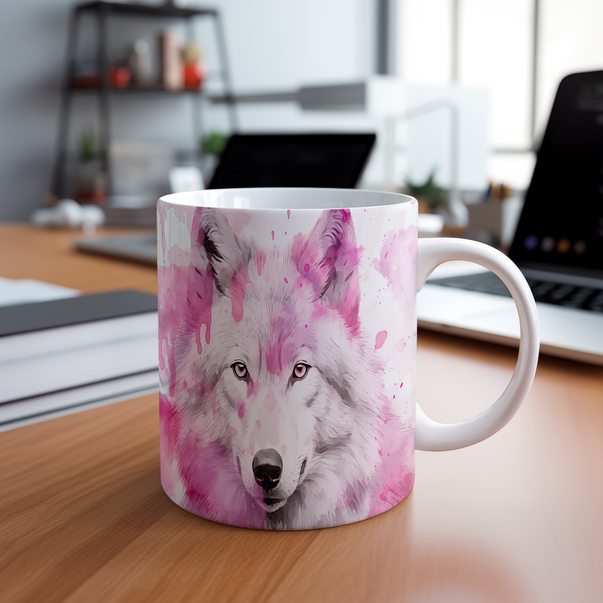 Tento překrásný hrnek zobrazuje detailní ilustraci vlka na jemném růžovém pozadí. Je ideální pro každého milovníka zvířat a skvělým dárkem pro přátele či rodinu. Materiál: keramika. Objem: 330 ml. Vhodné do myčky i mikrovlnky. Díky svému designu s 3D efektem přináší do každodenního pití radost a styl.