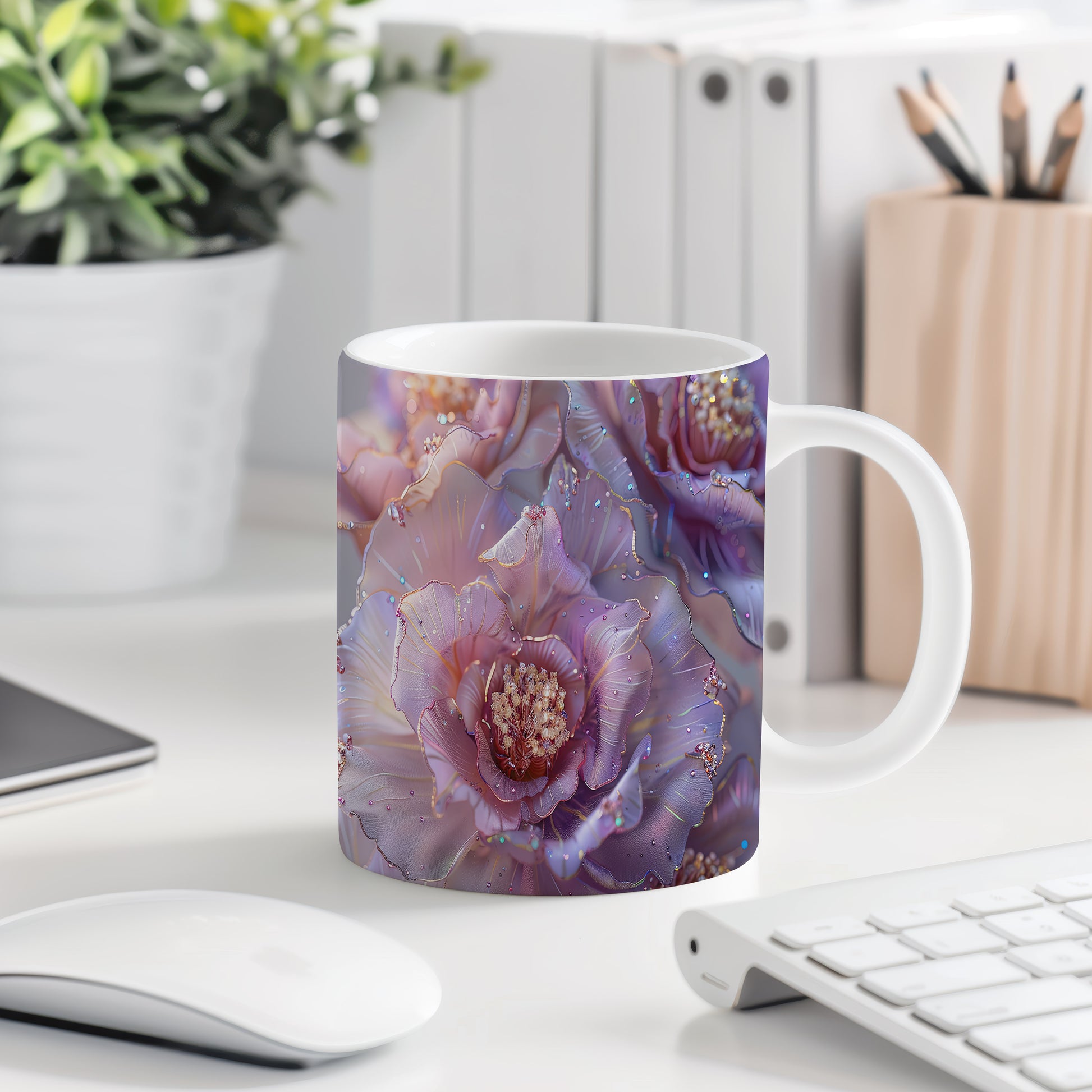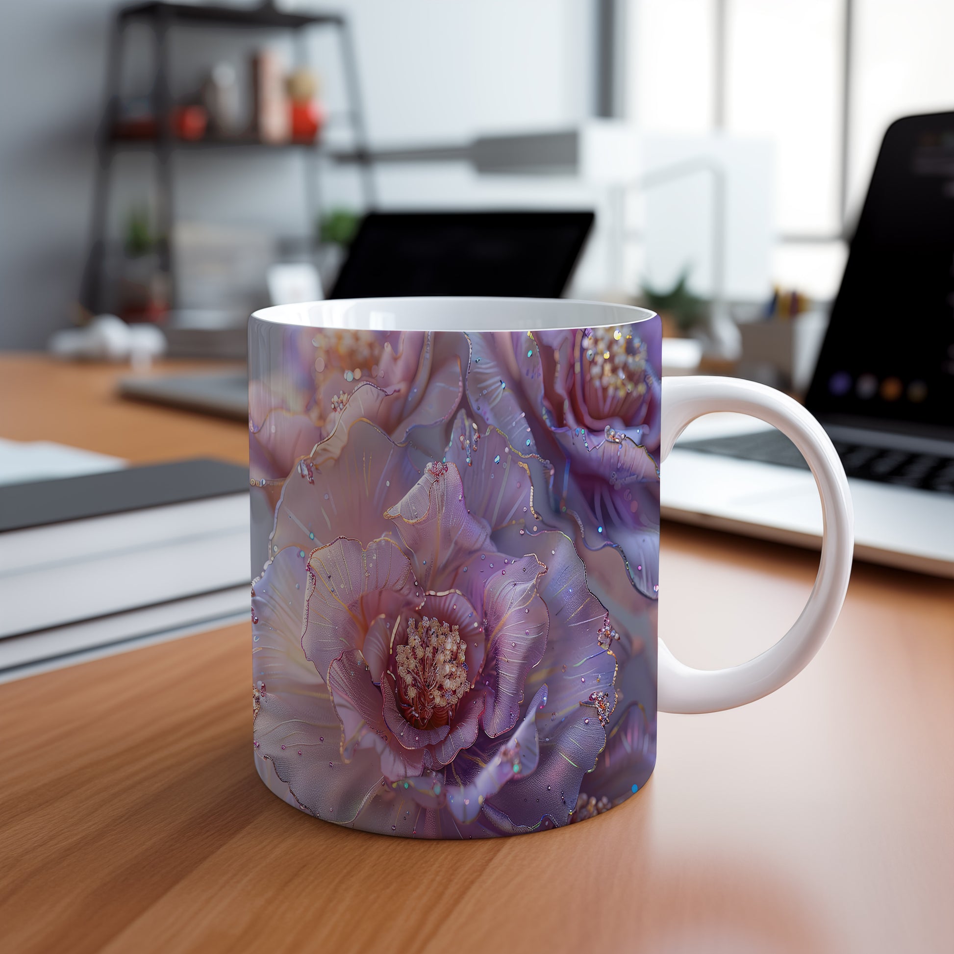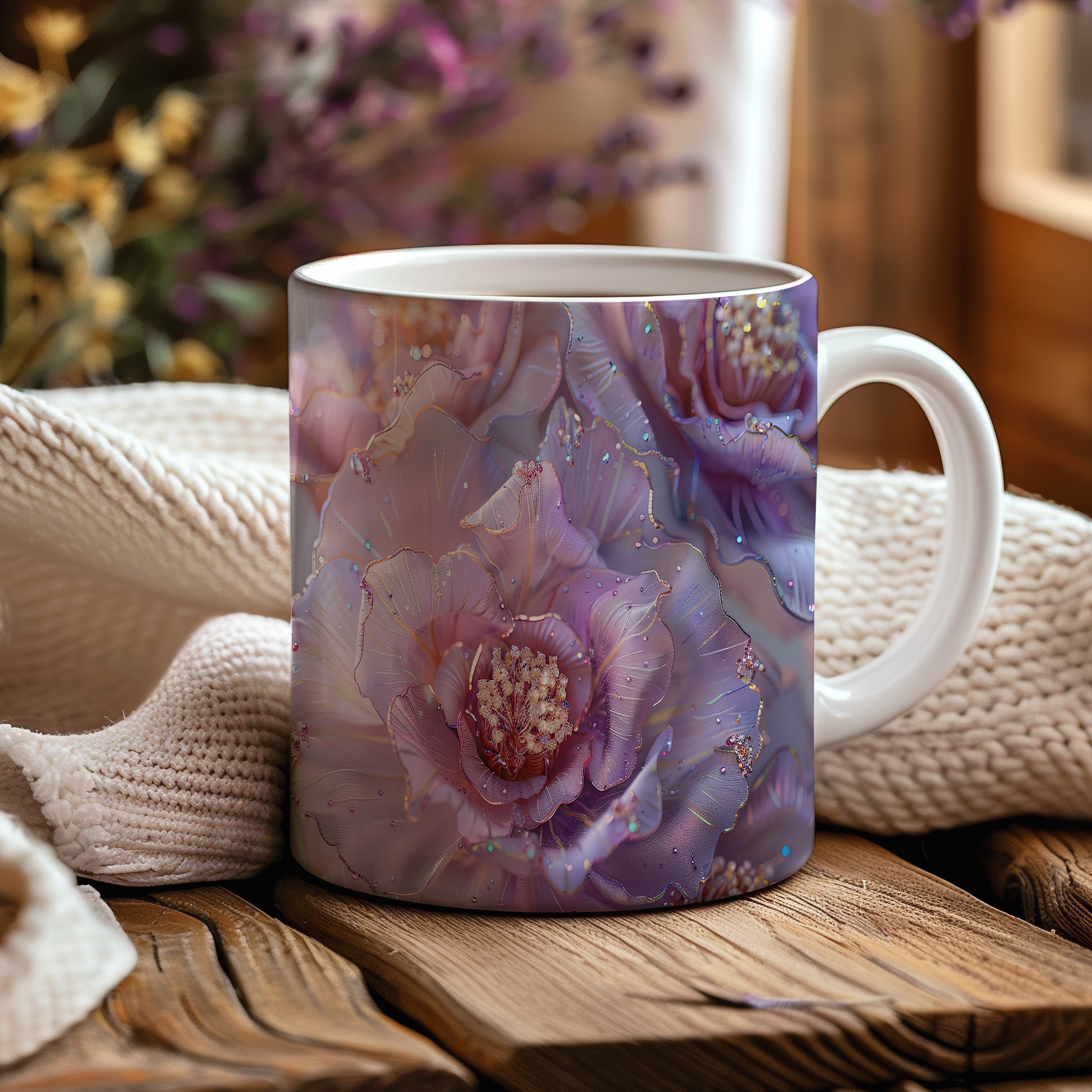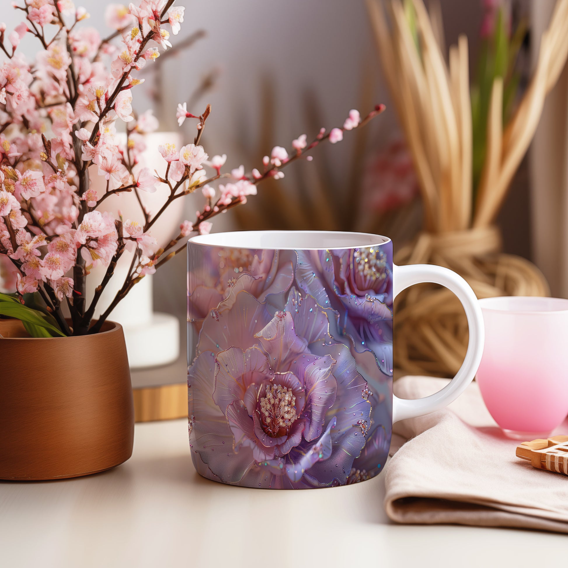 Tento hrnek zdobí krásné květinové motivy v jemných odstínech růžové a fialové. Je ideální pro milovníky přírody a skvělým dárkem pro každou příležitost. Materiál: keramika. Objem: 330 ml. Vhodné do myčky i mikrovlnky. Díky svému designu přináší do každodenního pití radost a pohodu.