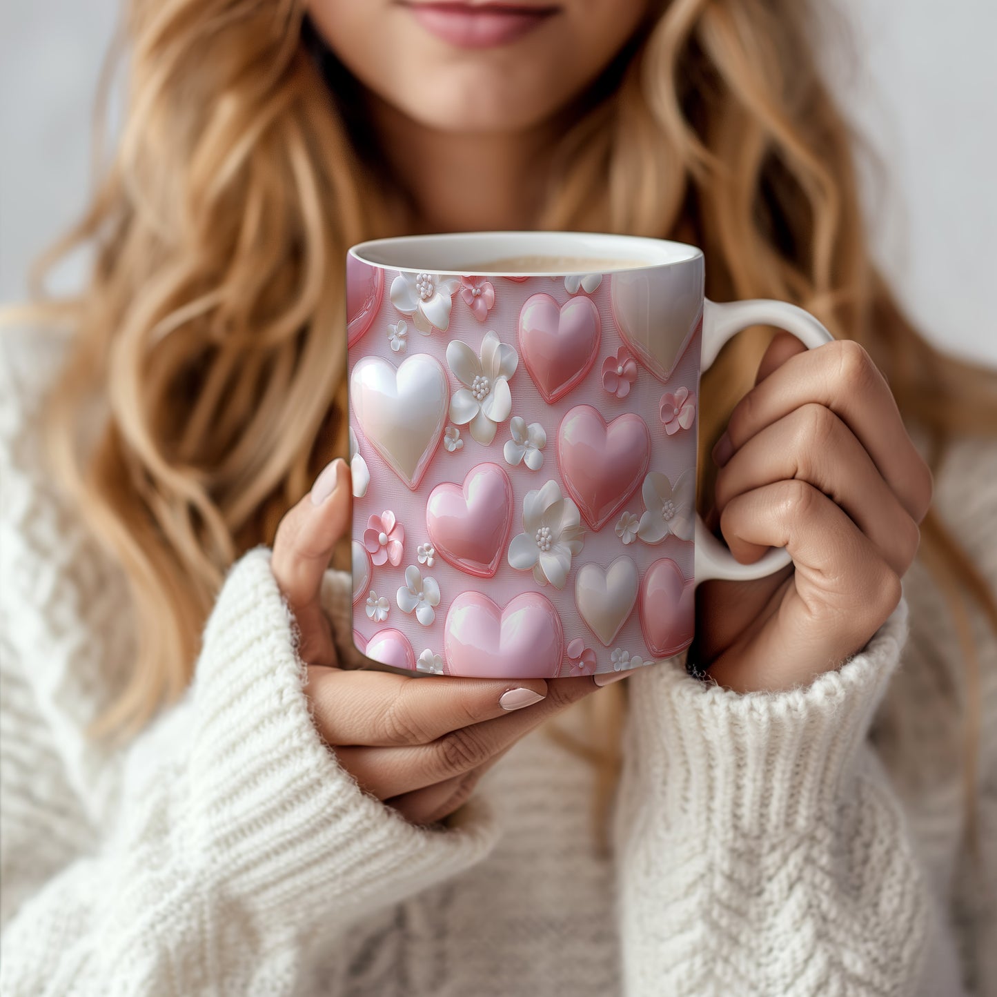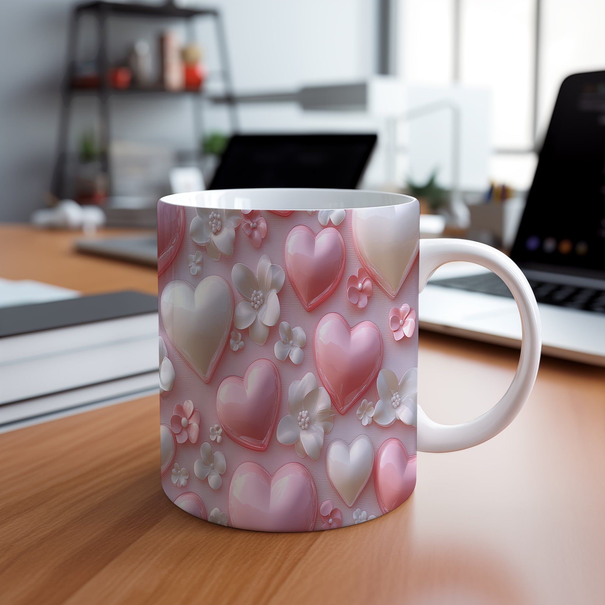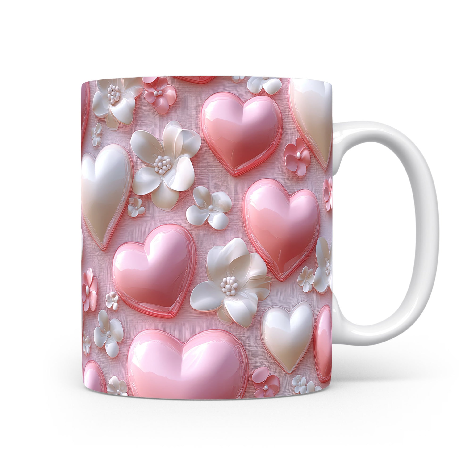 Tento hrnek zdobí jemné motivy růžových srdíček a bílých květin, ideální pro romantické duše. Skvěle se hodí jako dárek pro milovníky květin a jemných designů. Materiál: keramika. Objem: 330 ml. Vhodné do myčky i mikrovlnky. Používání tohoto hrnku přináší radost a útulnost do každodenního pití.