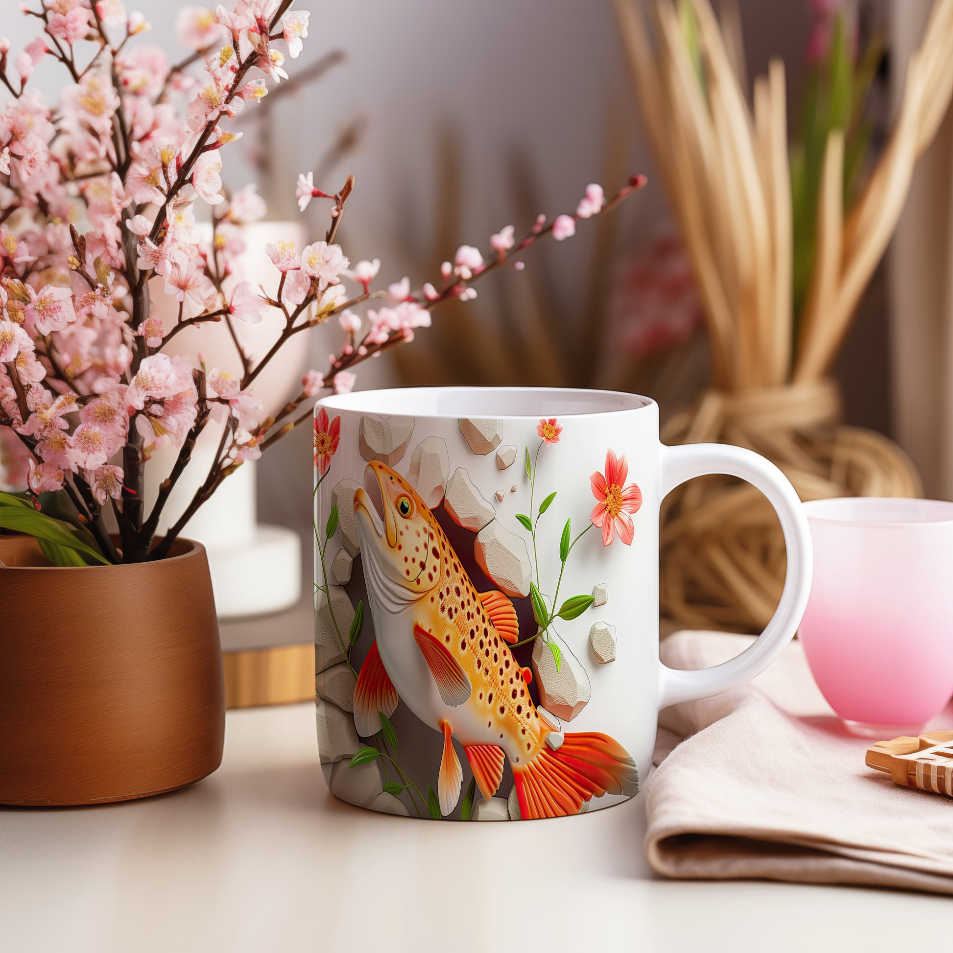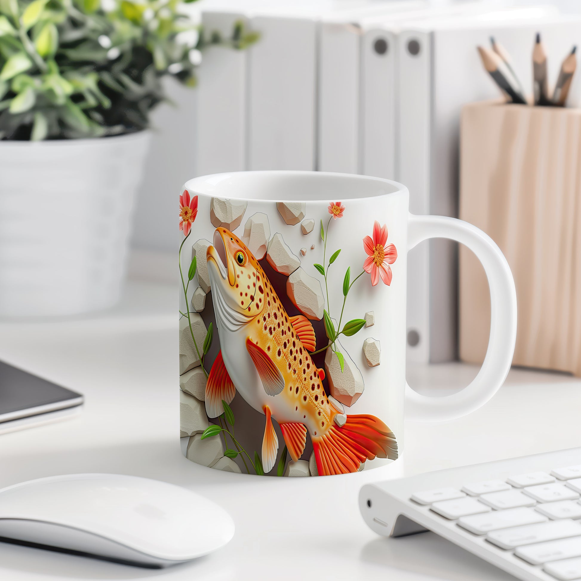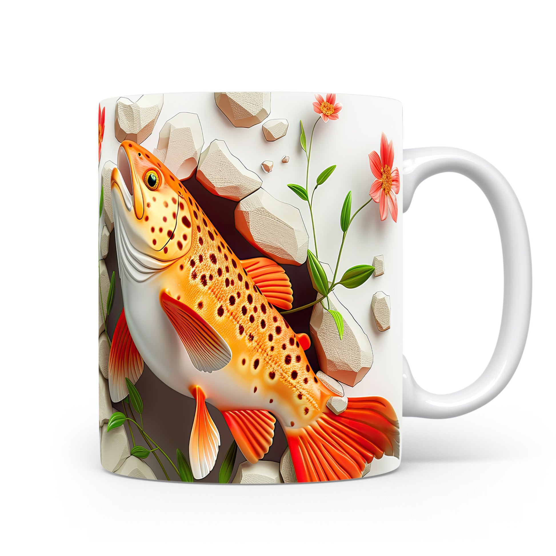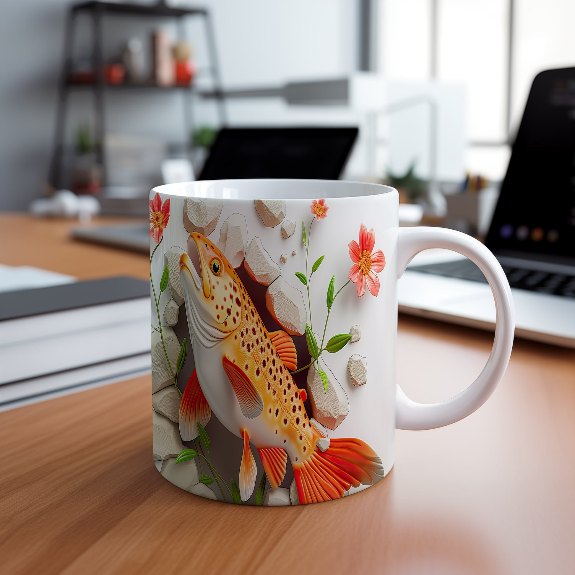 Tento keramický hrnek zobrazuje pstruhovou rybu mezi květinami a kameny. Je ideální pro milovníky přírody a rybaření, skvělý tip na dárek pro každého, kdo má rád vodní svět. Materiál: keramika. Objem: 330 ml. Vhodné do myčky i mikrovlnky. Používání tohoto hrnku přináší radost z každého doušku.