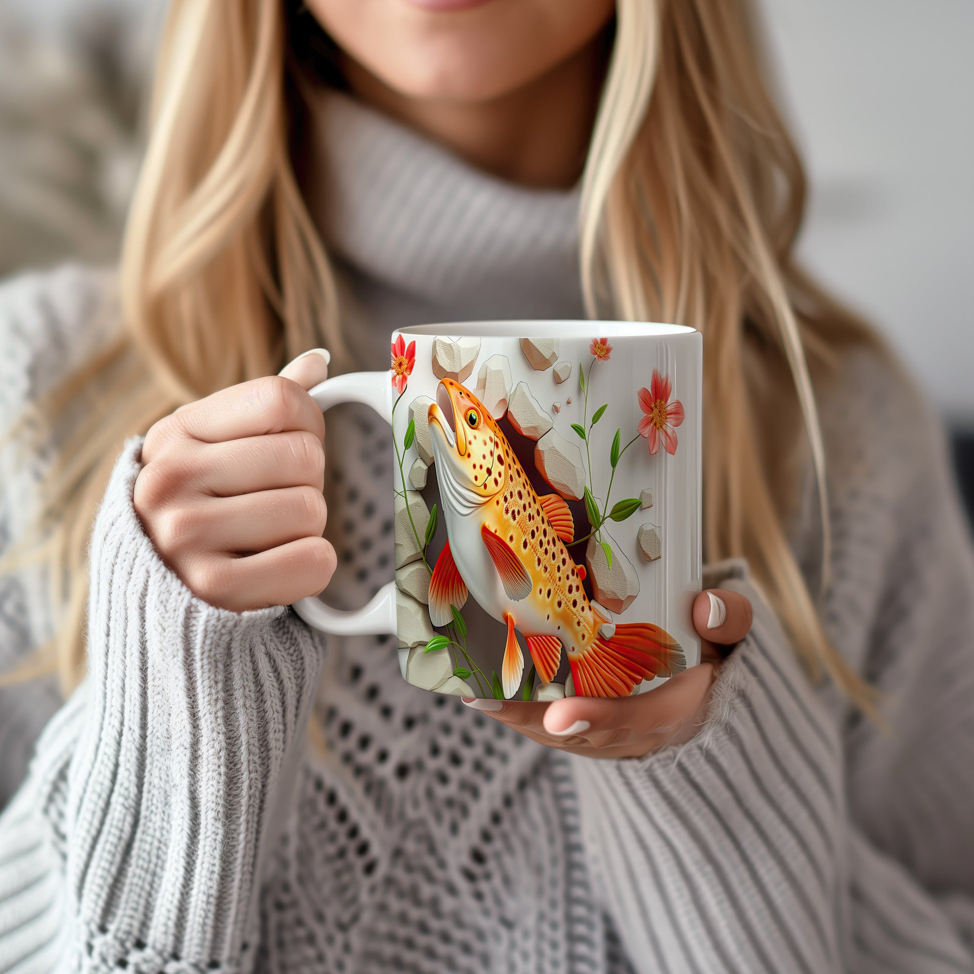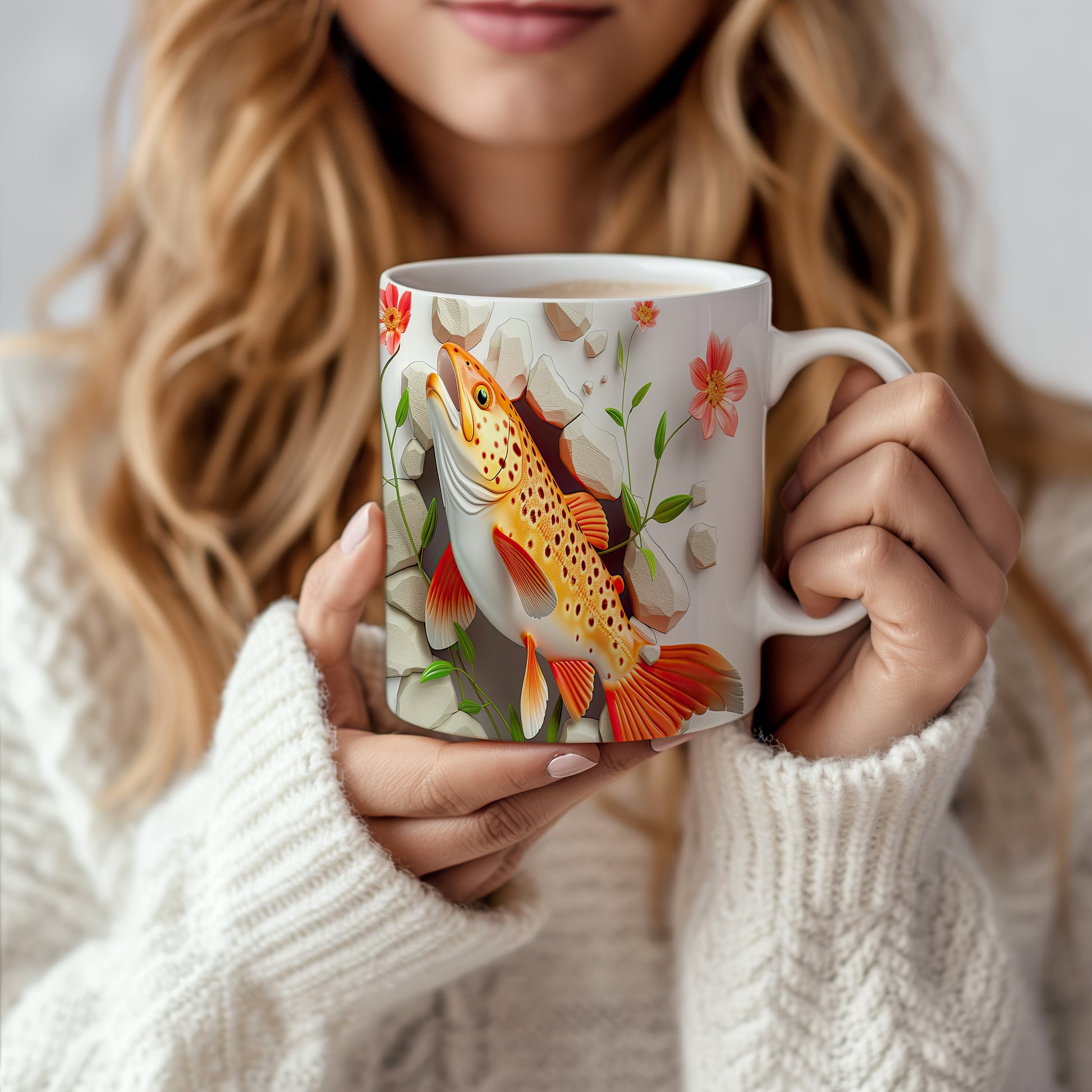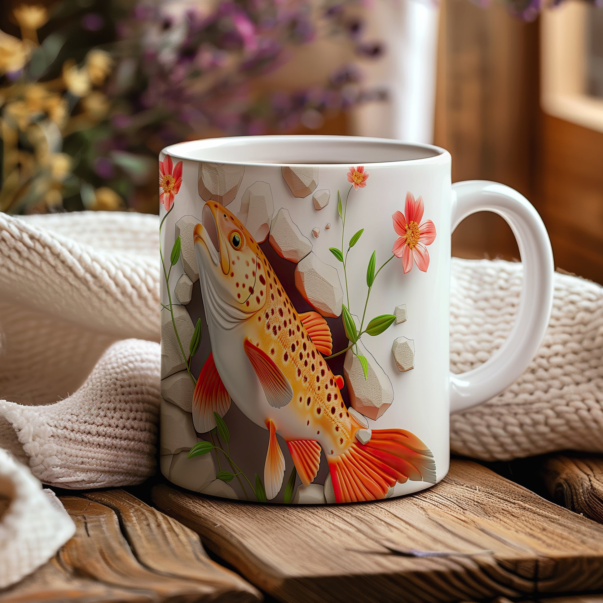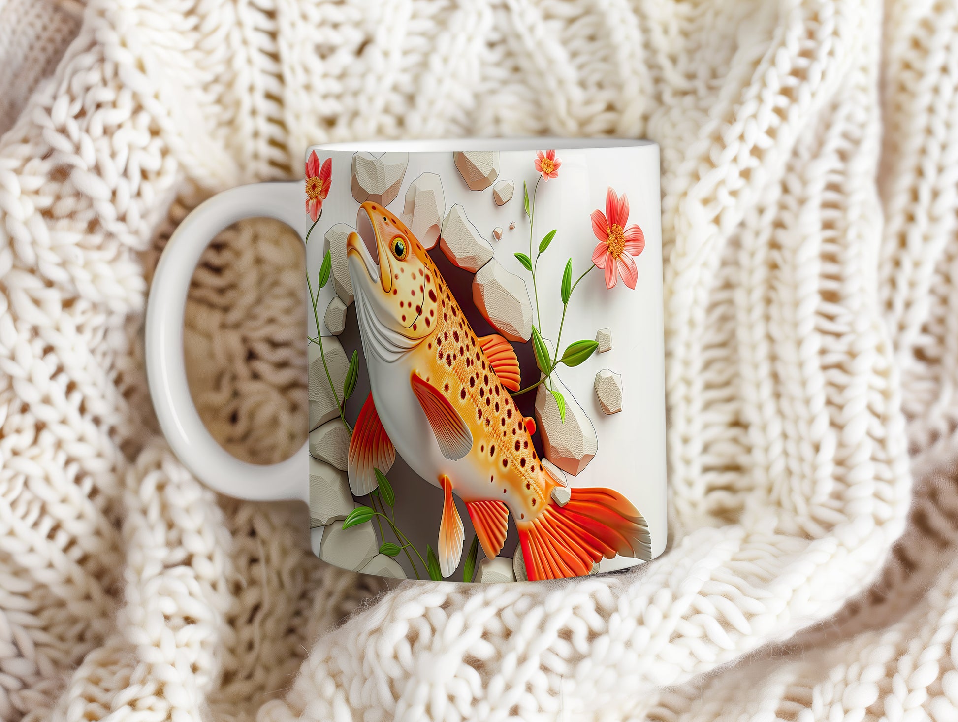 Tento keramický hrnek zobrazuje pstruhovou rybu mezi květinami a kameny. Je ideální pro milovníky přírody a rybaření, skvělý tip na dárek pro každého, kdo má rád vodní svět. Materiál: keramika. Objem: 330 ml. Vhodné do myčky i mikrovlnky. Používání tohoto hrnku přináší radost z každého doušku.