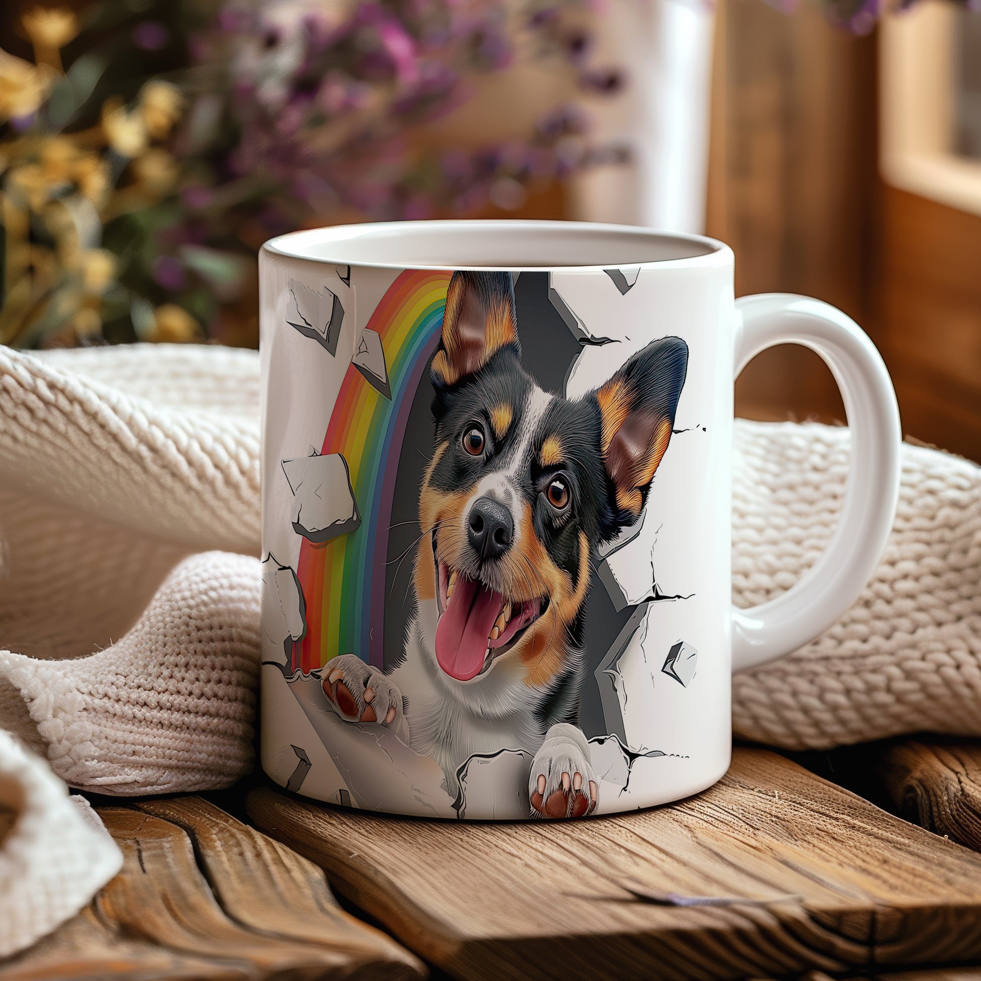 Hrnek s teriérem a 3D efektem duhy