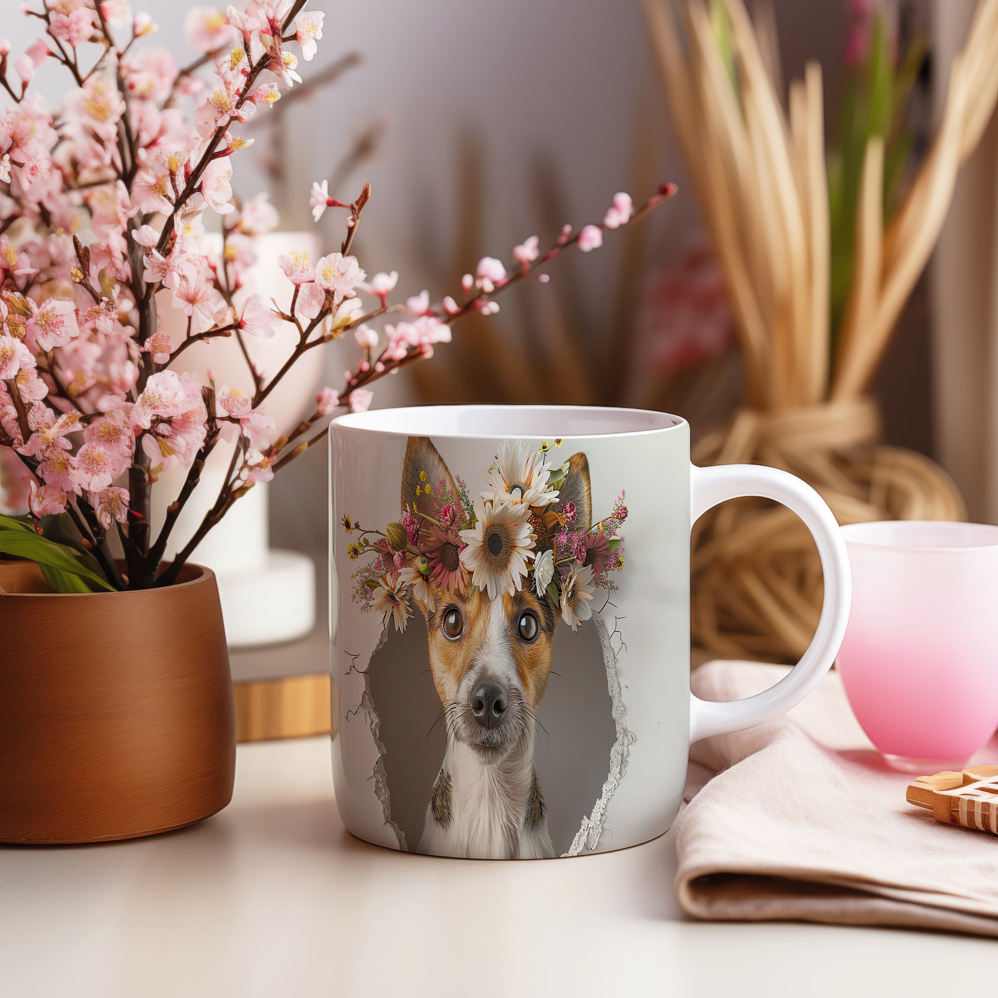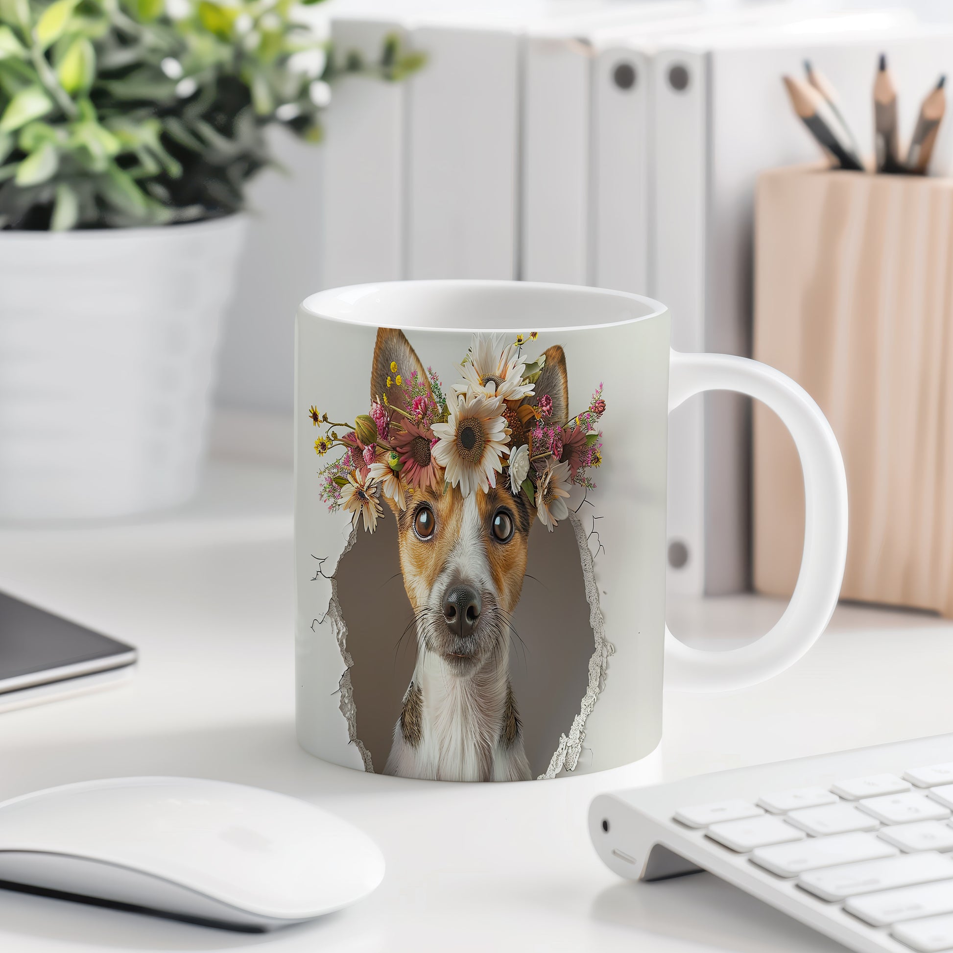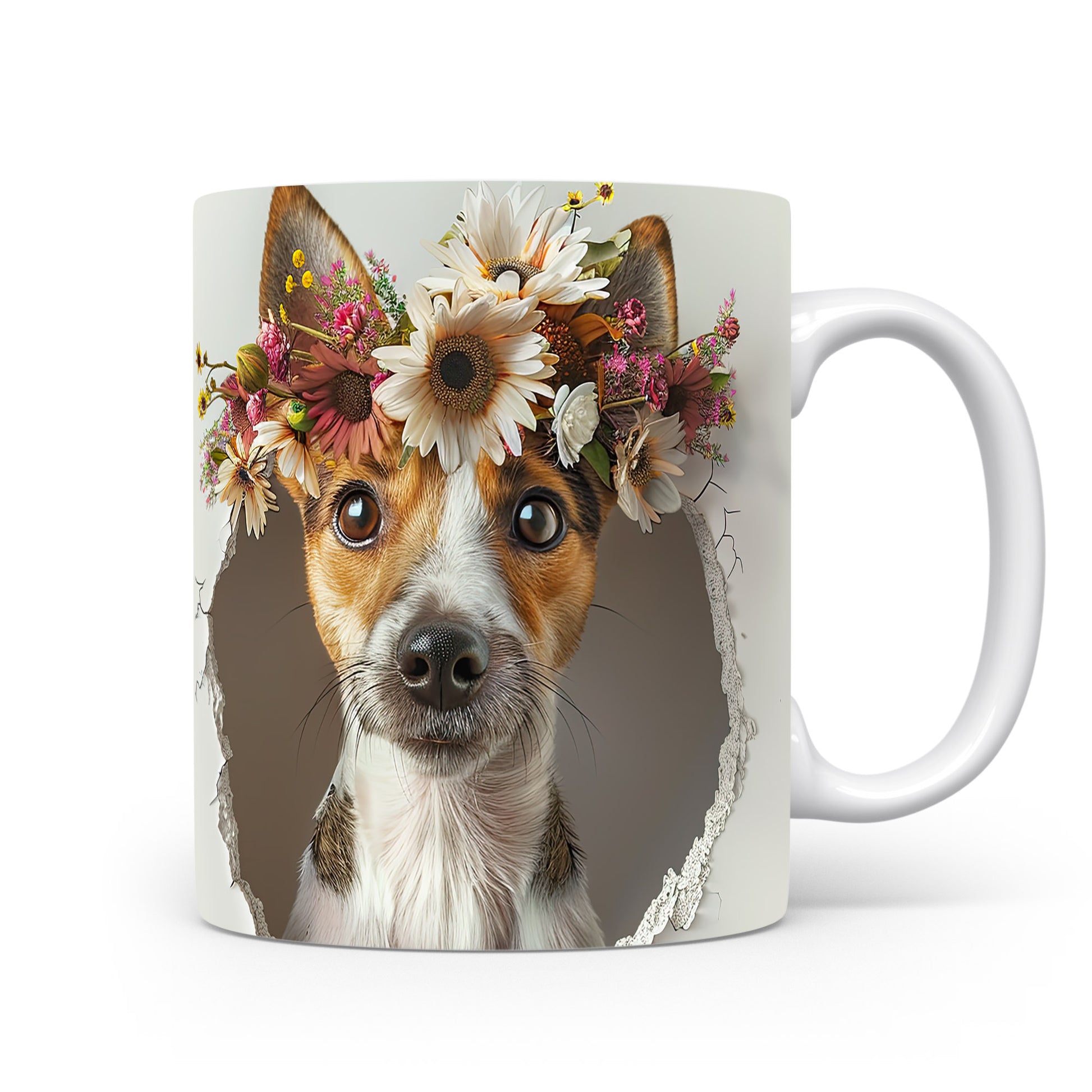 Hrnek s teriérem a 3D efektem květin