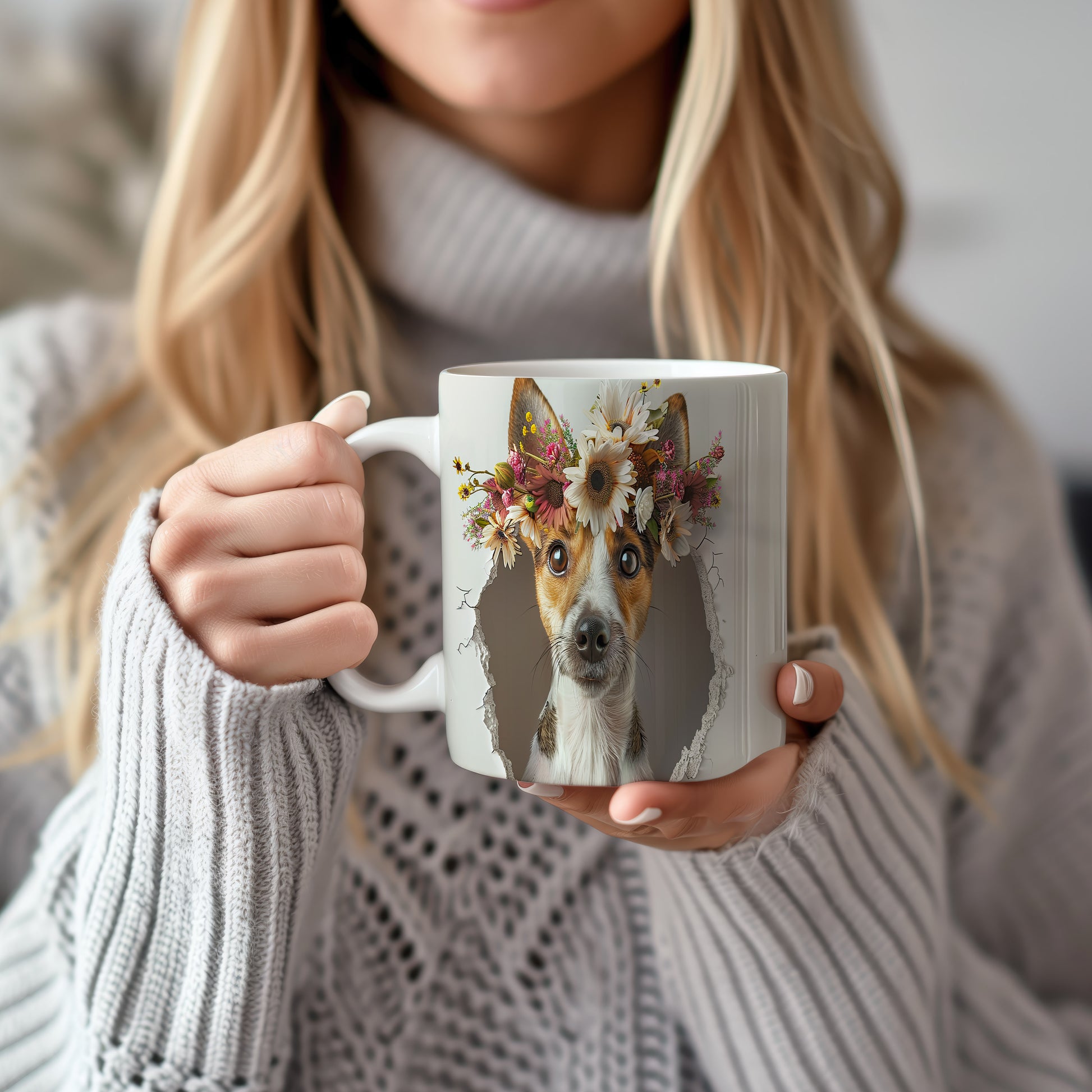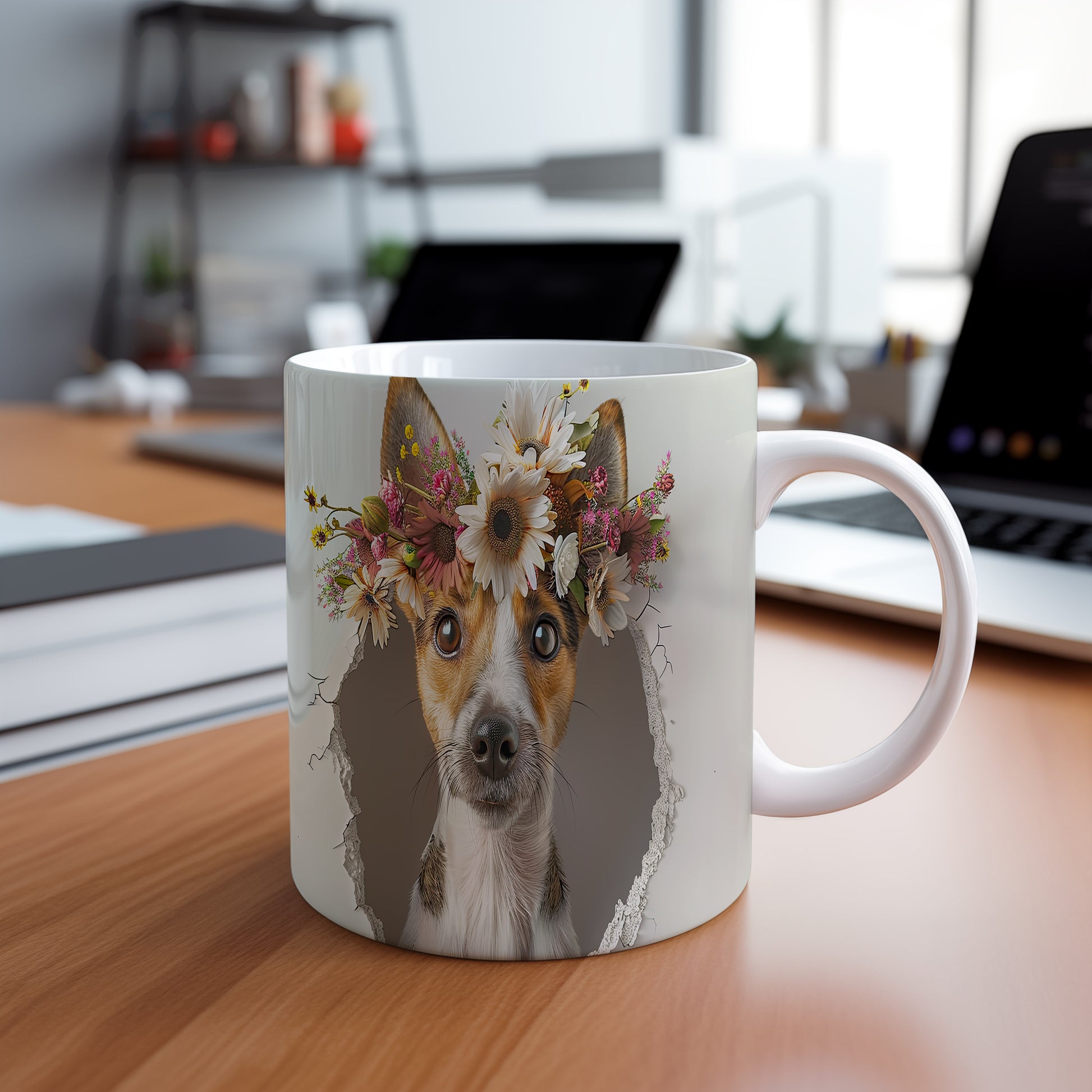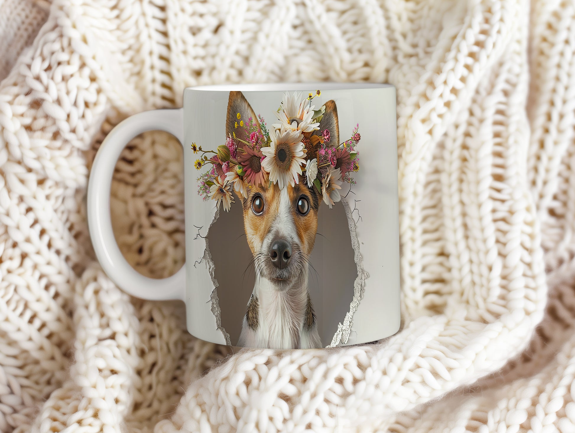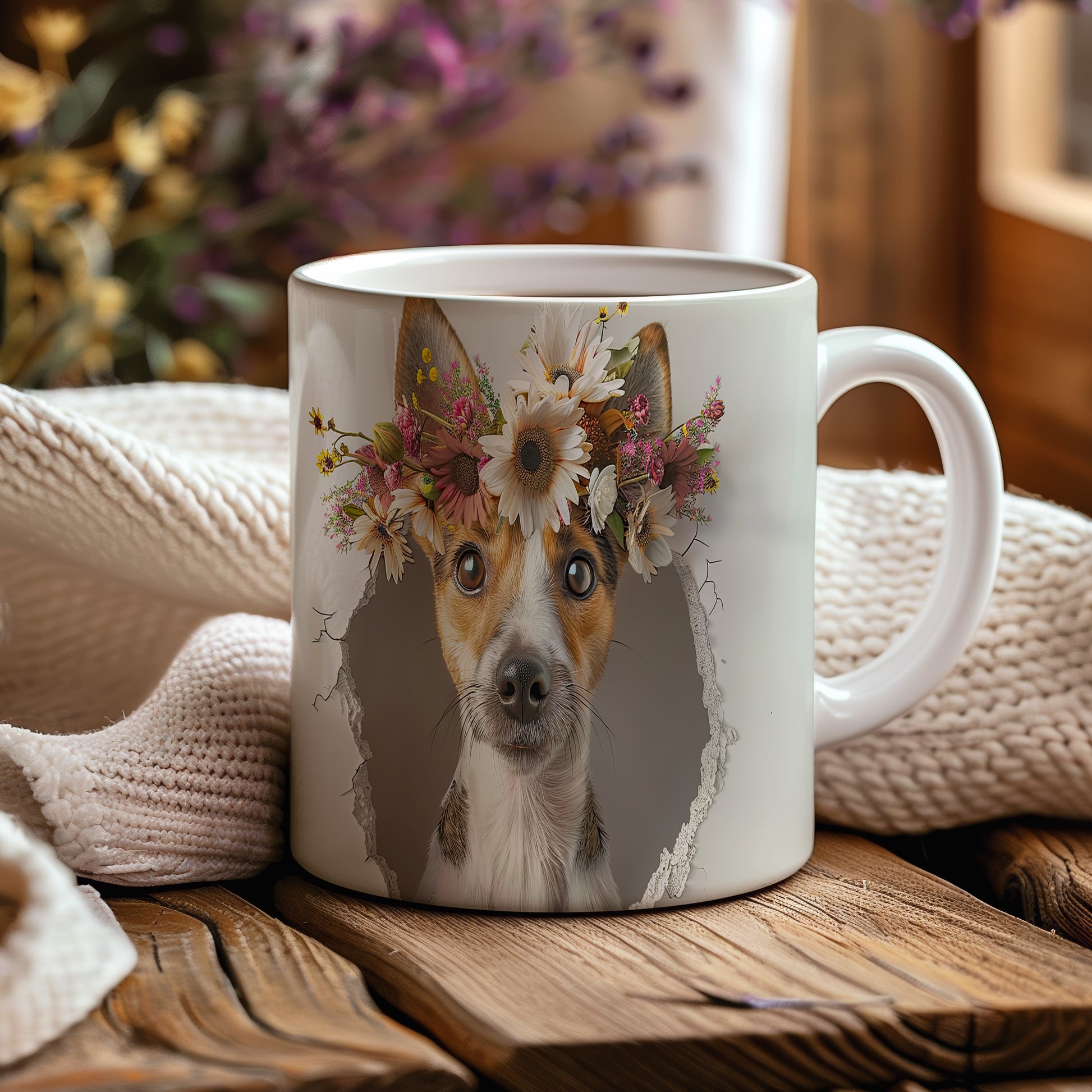 Hrnek s teriérem a 3D efektem květin
