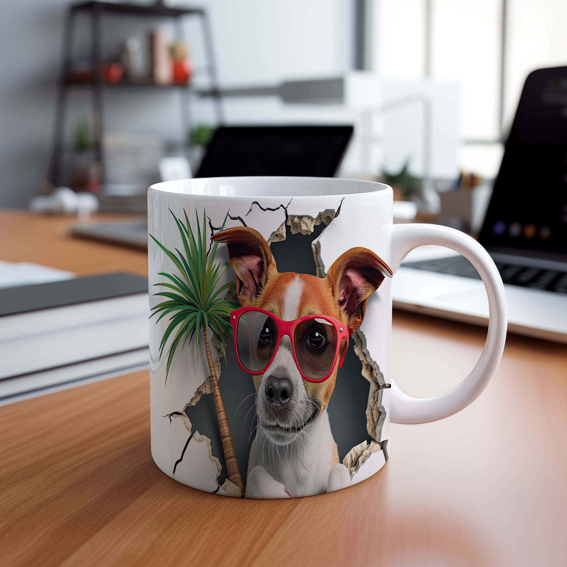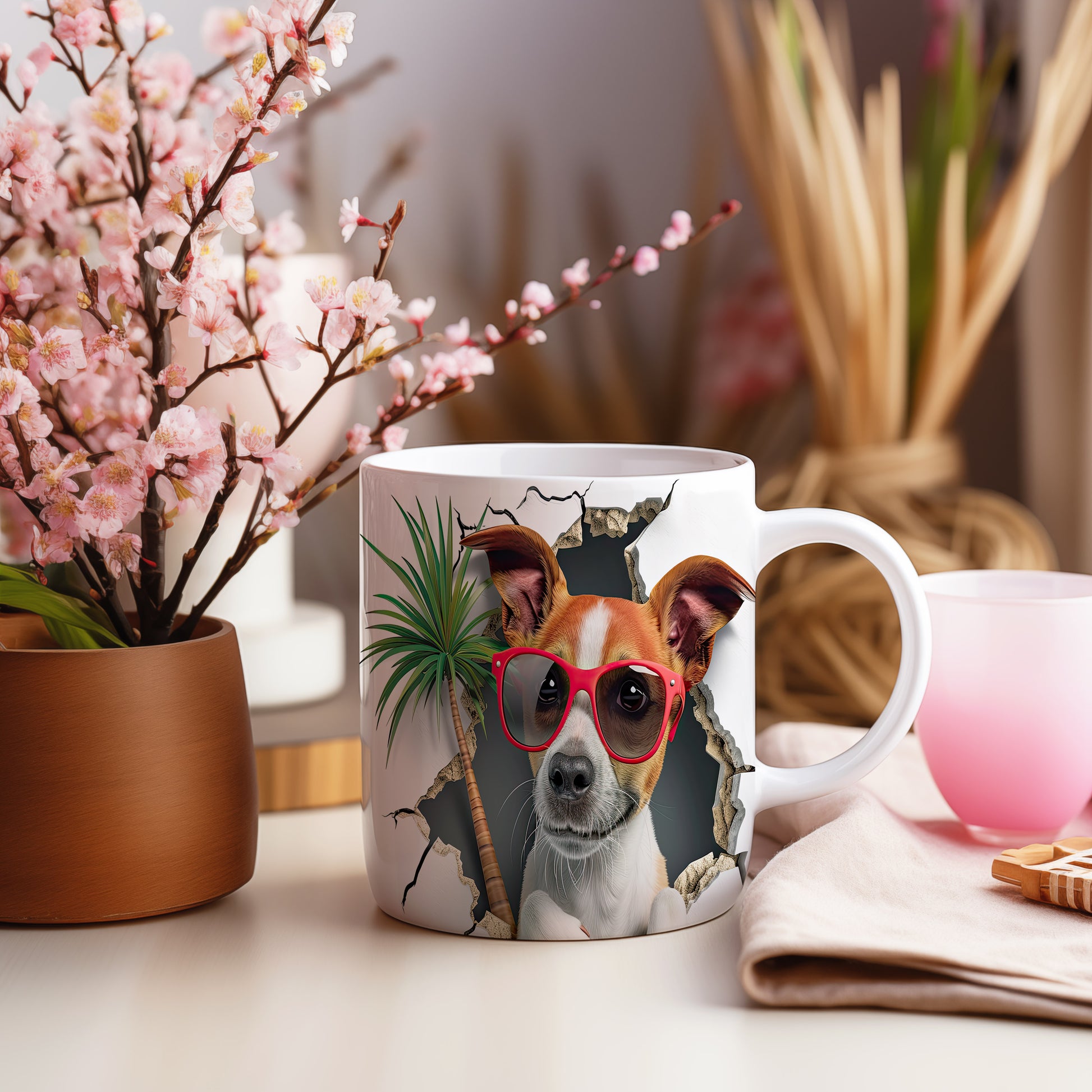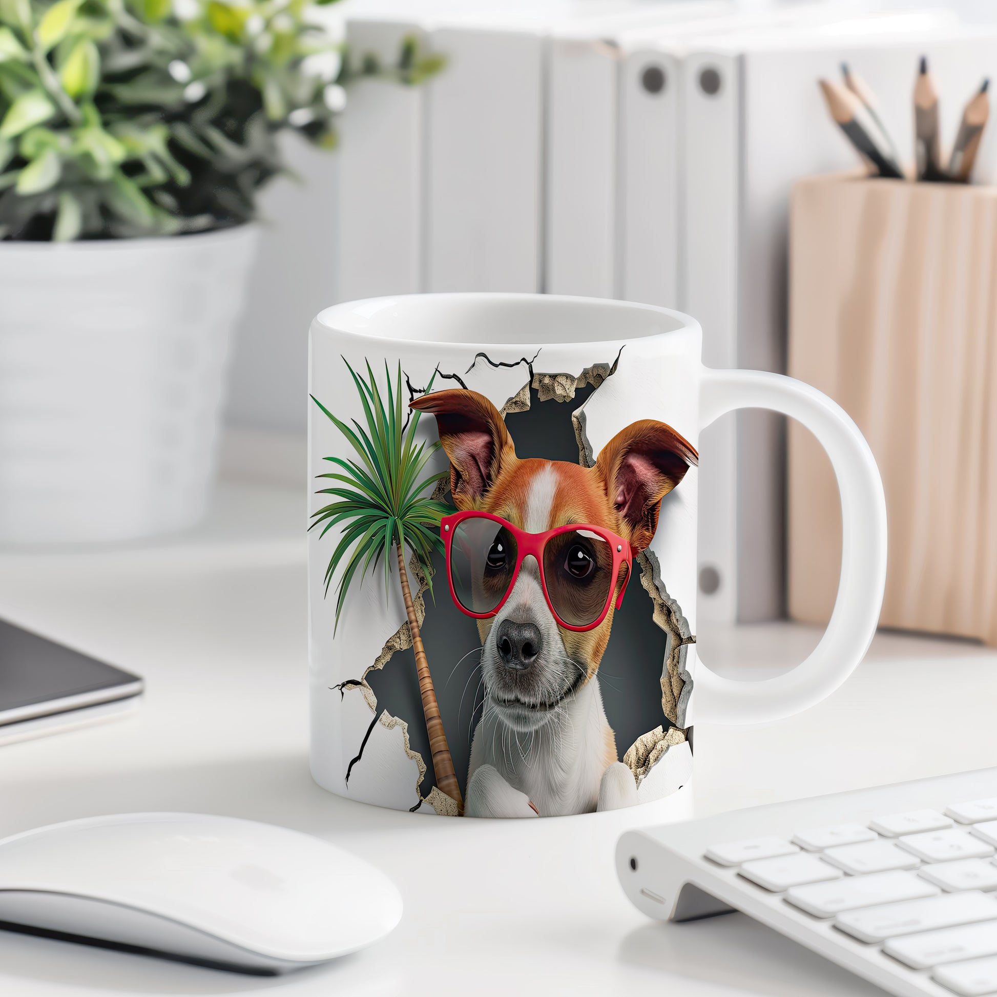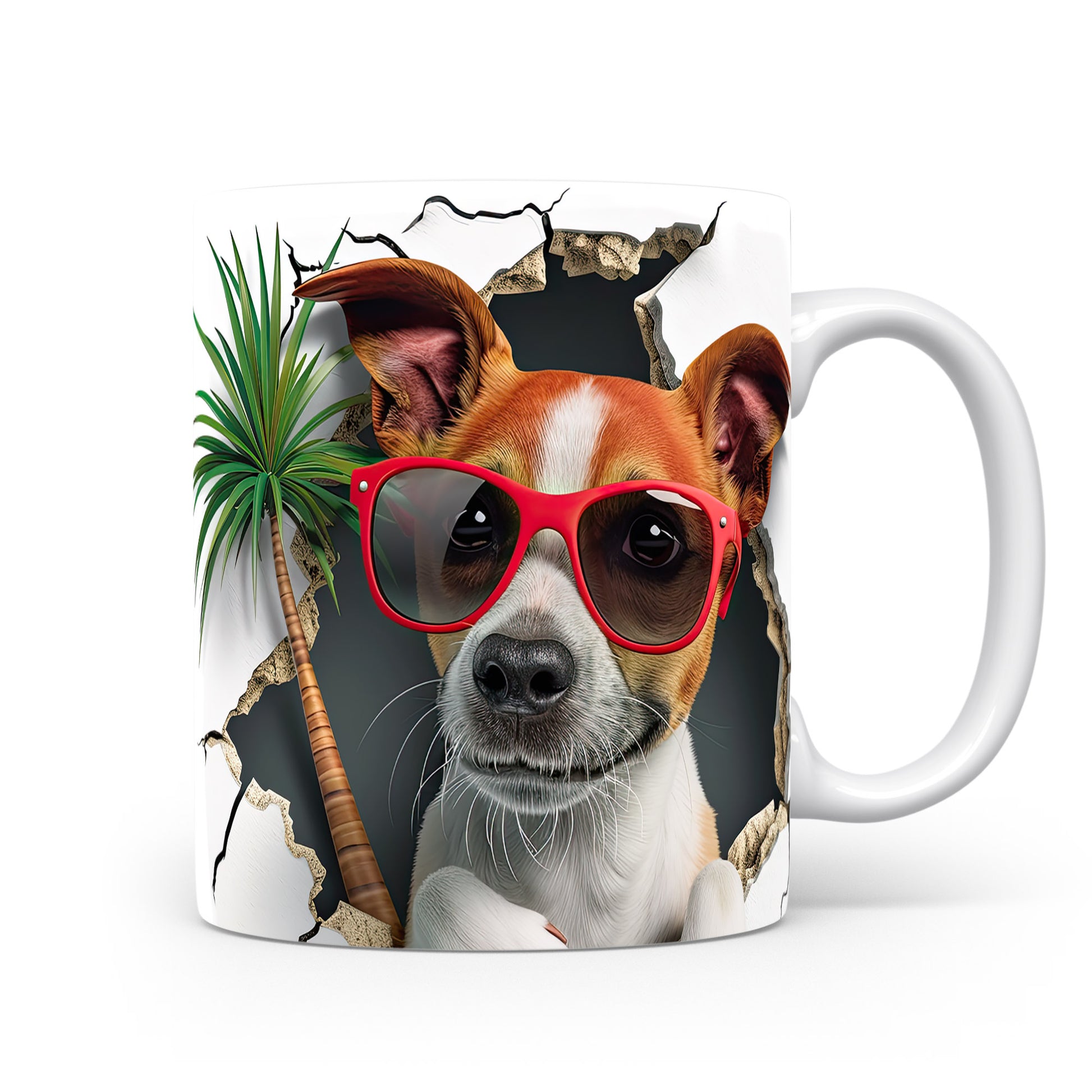 Hrnek s teriérem a 3D efektem palmy