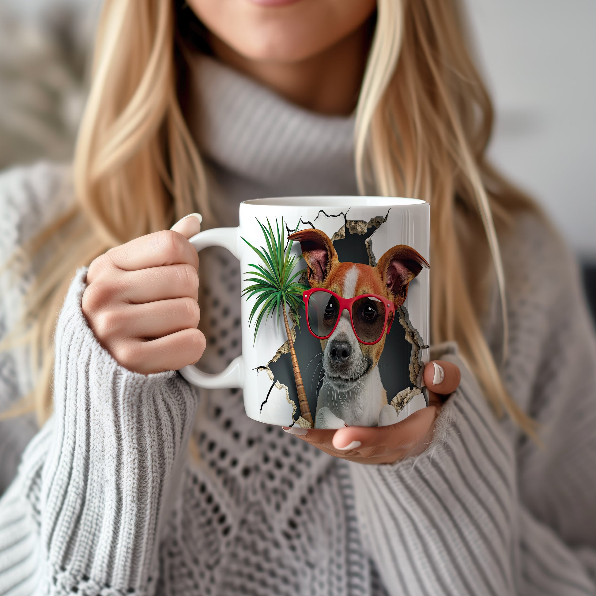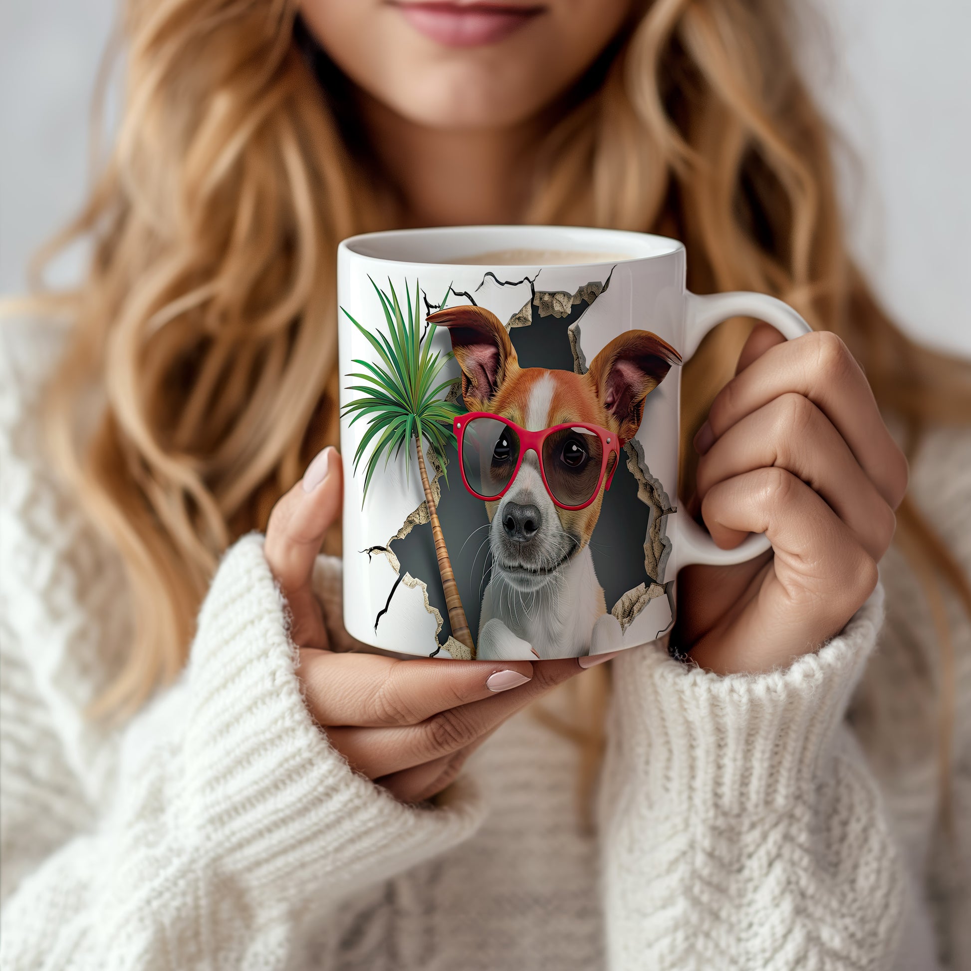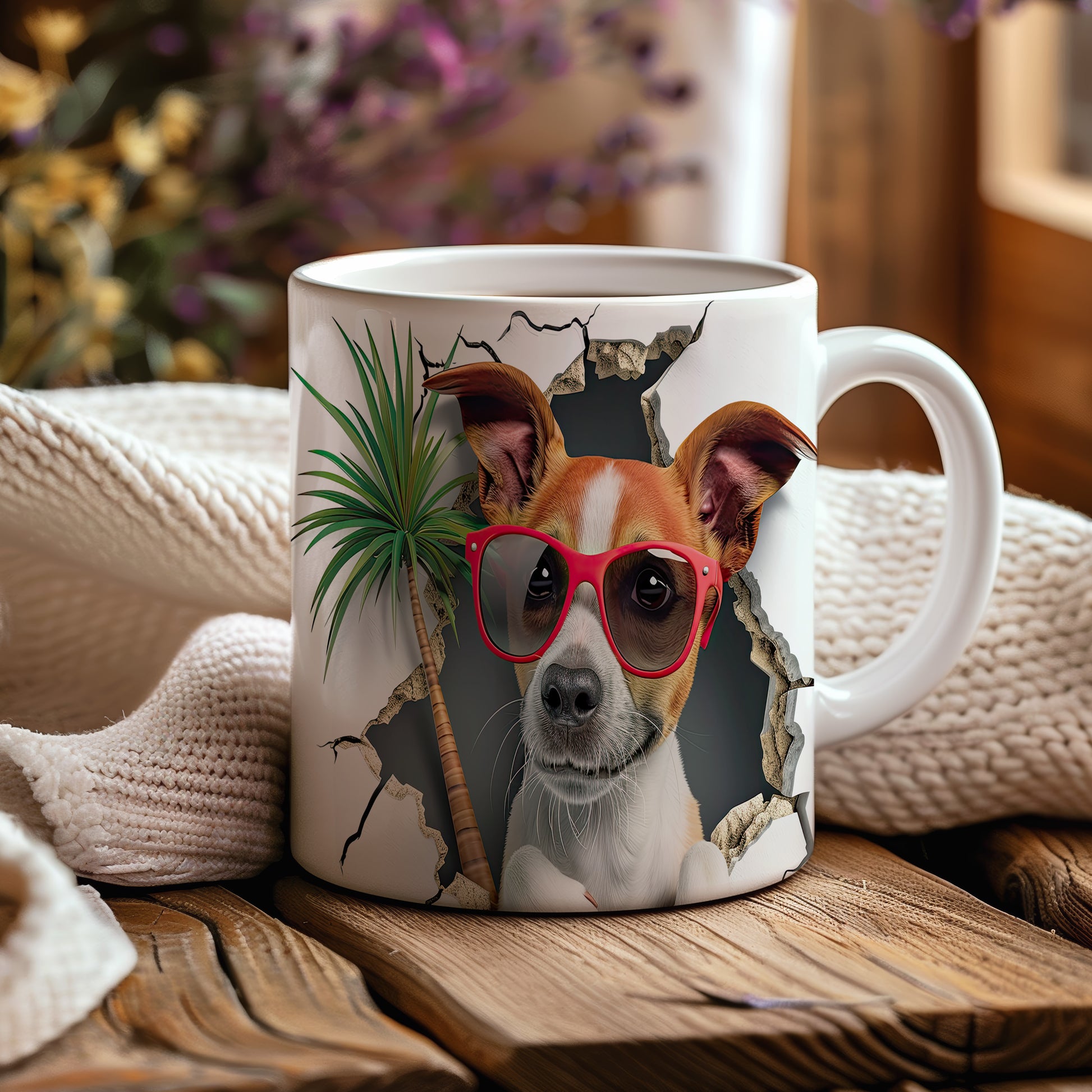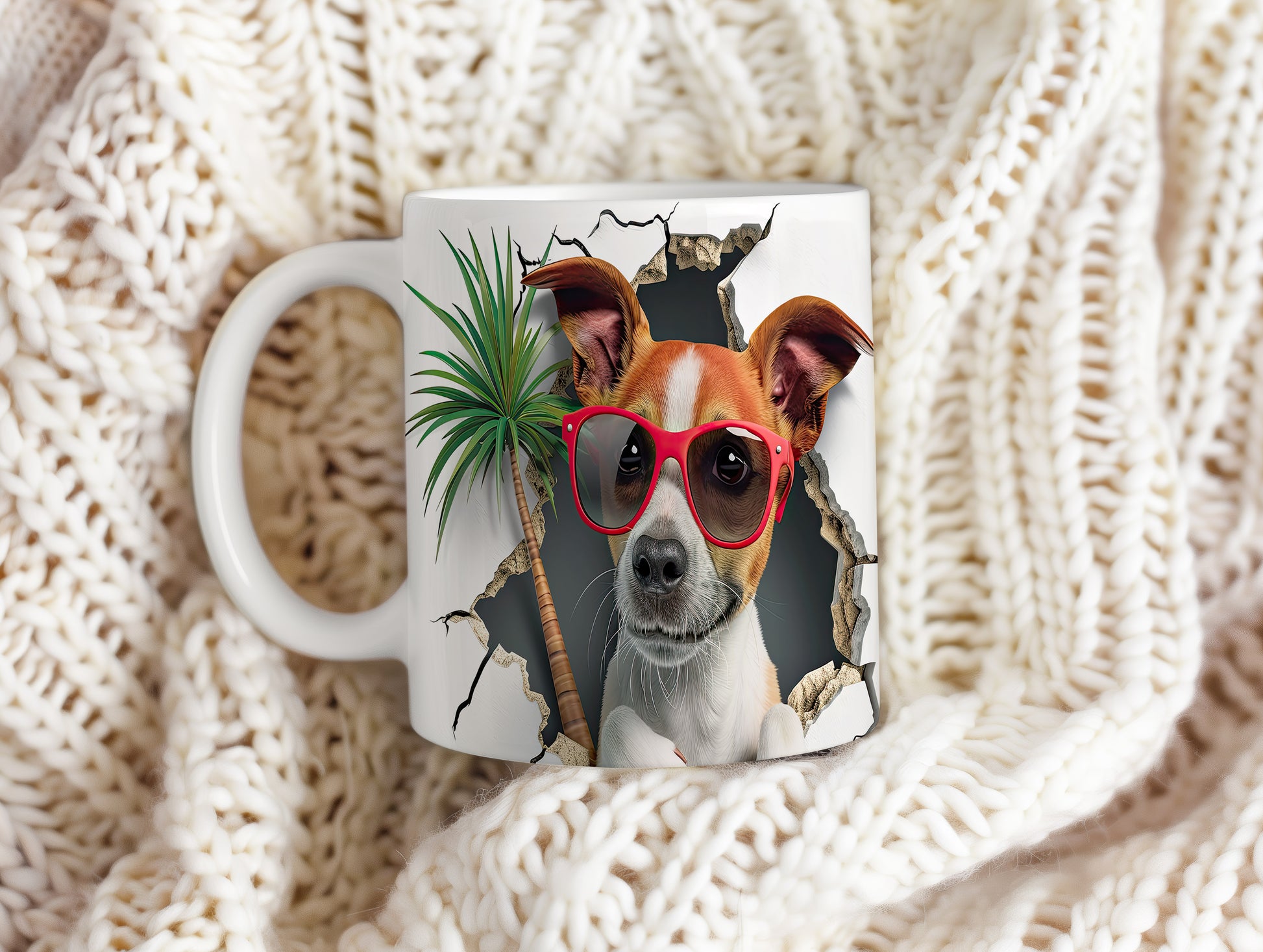 Hrnek s teriérem a 3D efektem palmy