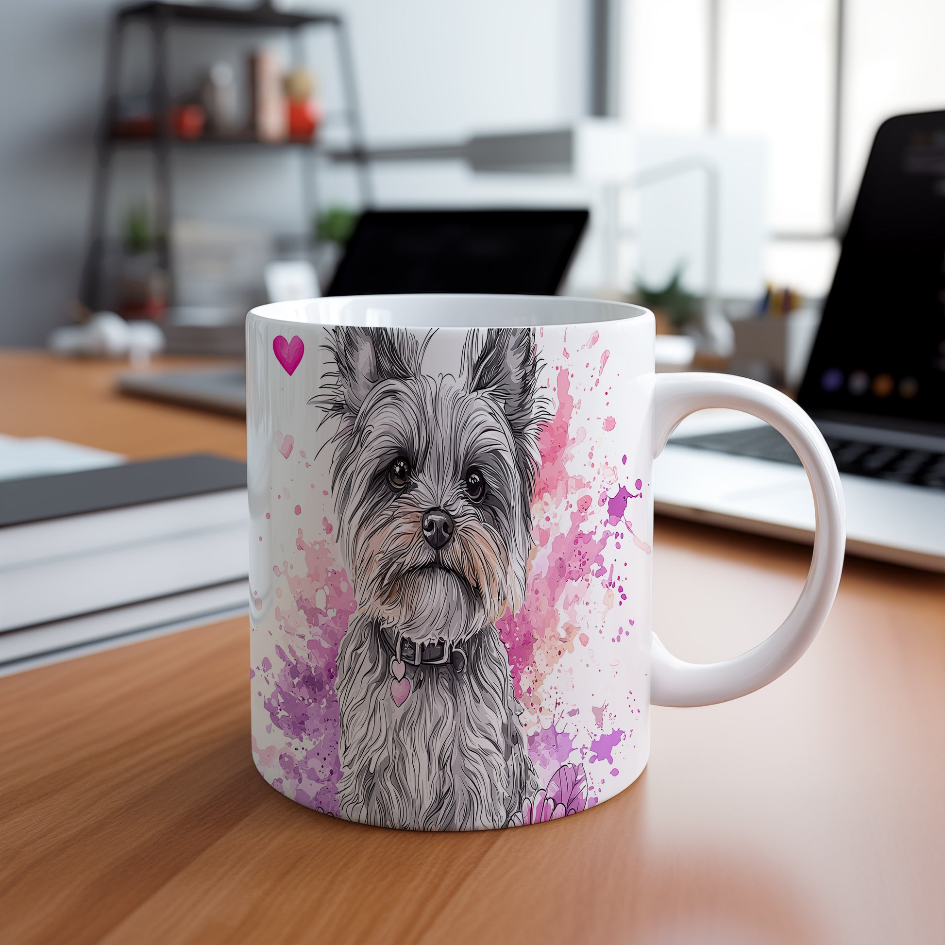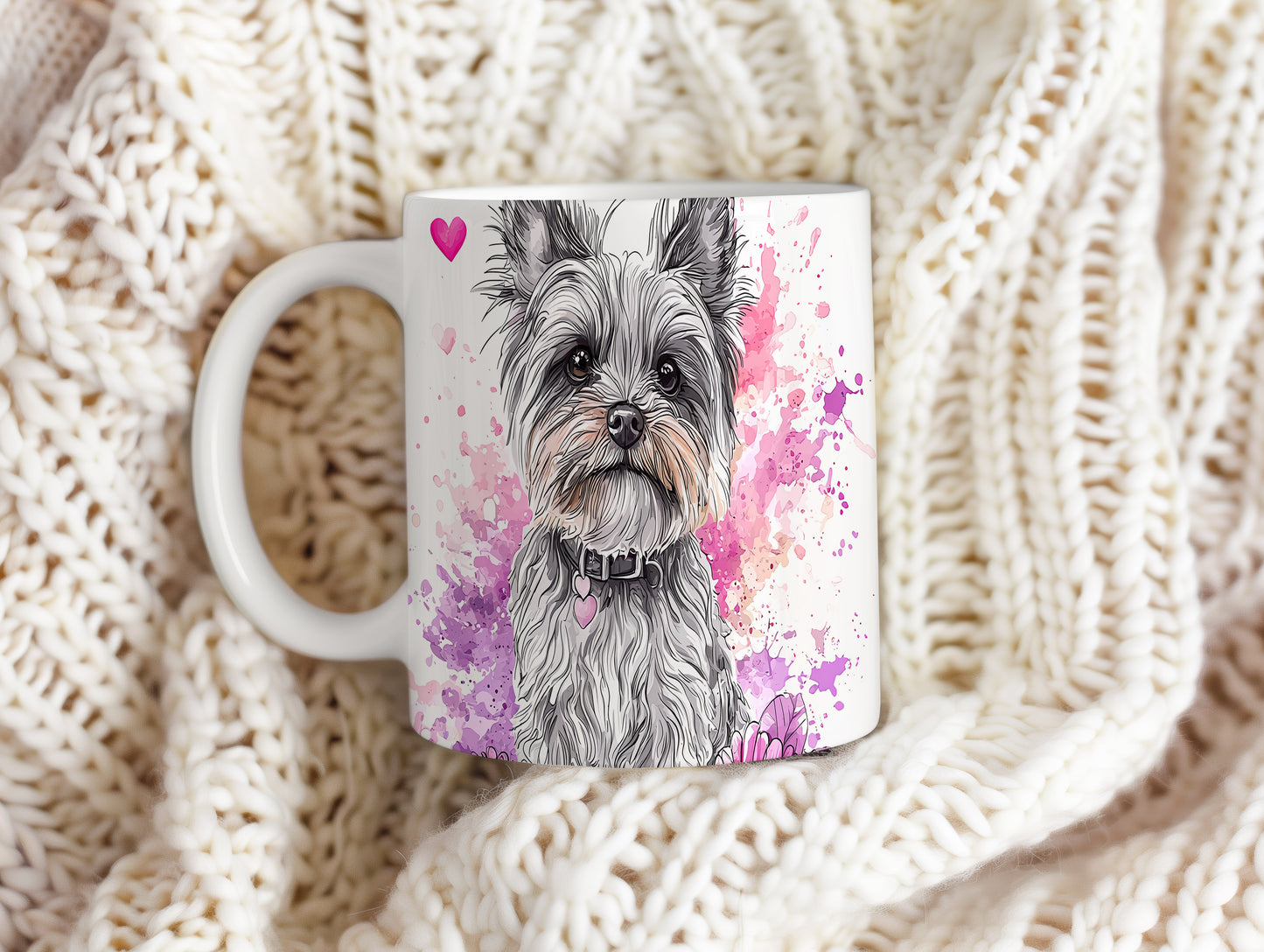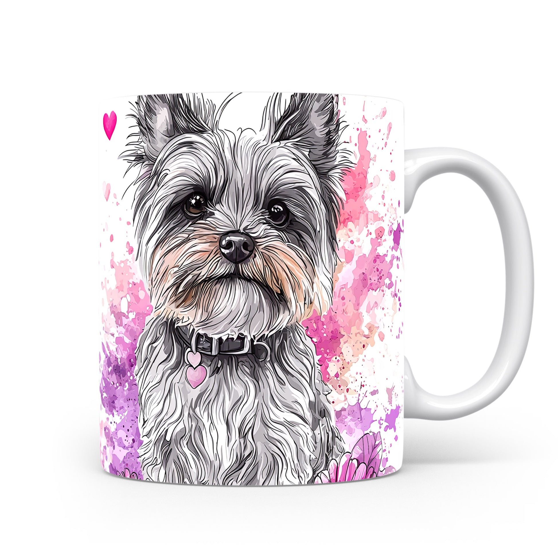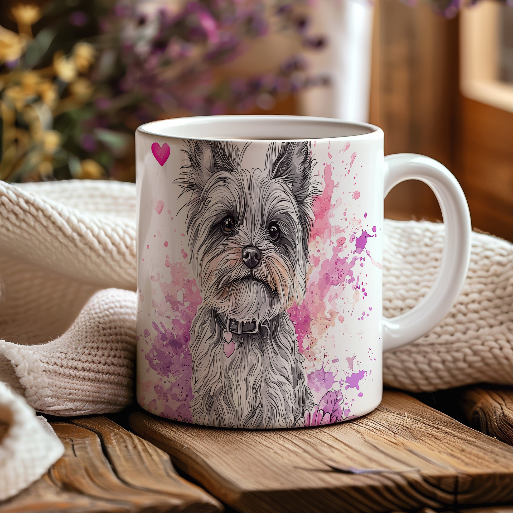 Hrnek s teriérem a akvarelovými květy
