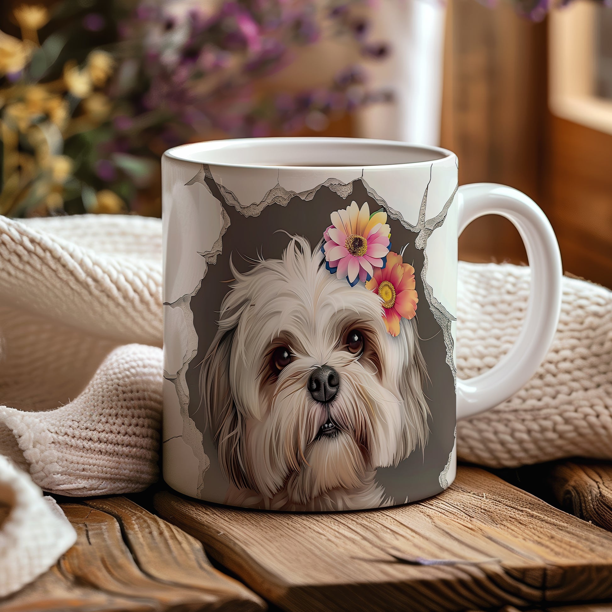 Hrnek s roztomilým psem a květinami je ideální pro všechny milovníky těchto čtyřnohých přátel. Tento hrnek potěší každého, kdo ocení veselý design a příjemnou atmosféru. Materiál: keramika. Objem: 330 ml. Vhodné do myčky i mikrovlnky. Používání tohoto hrnku přináší radost při každém doušku oblíbeného nápoje.