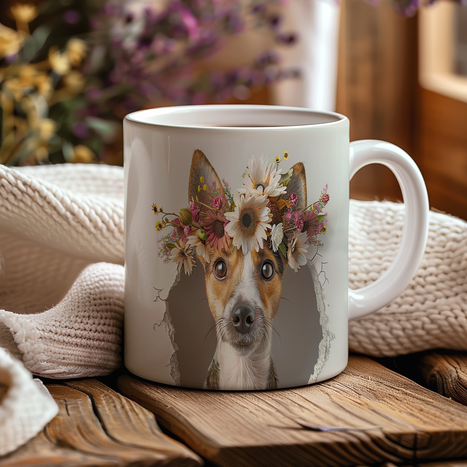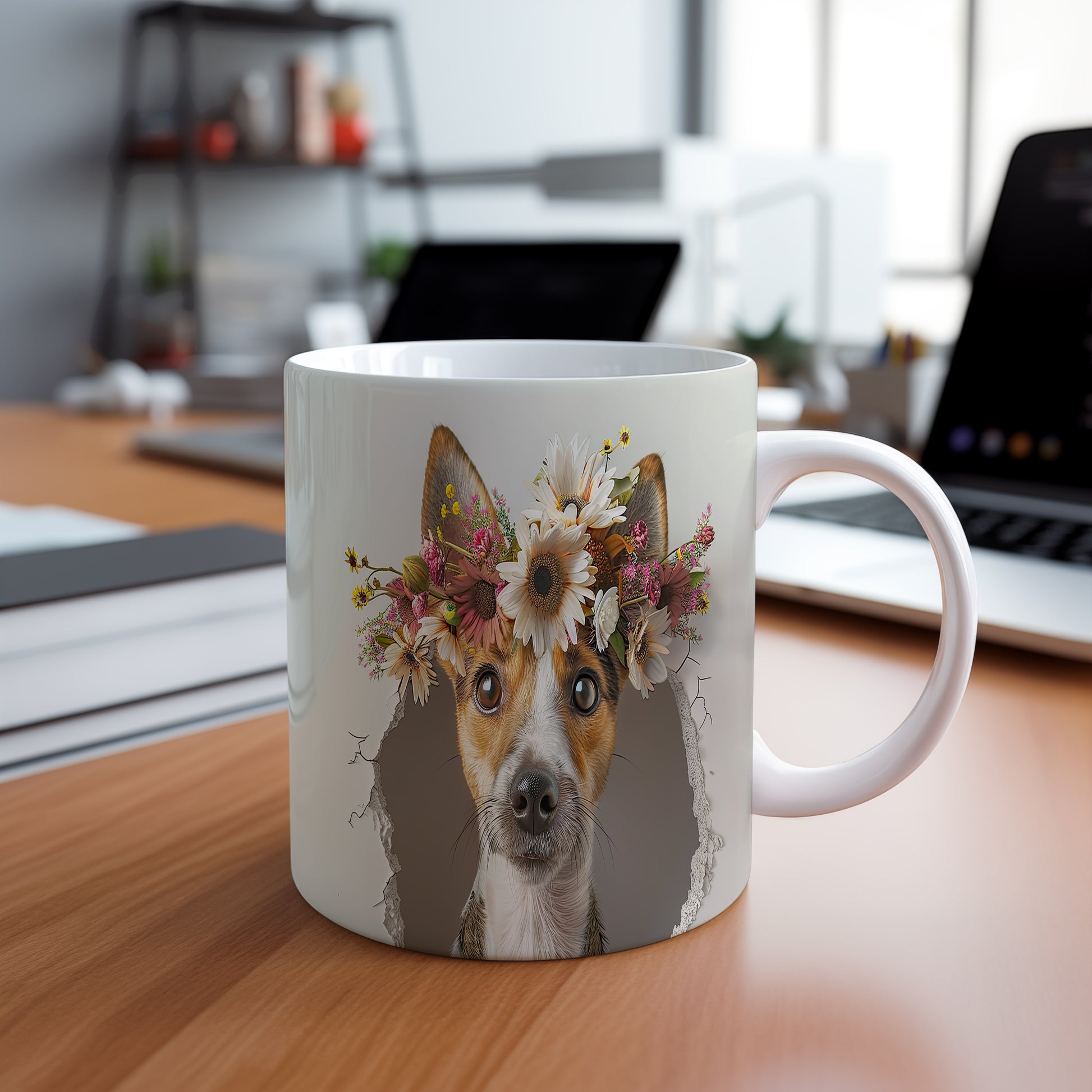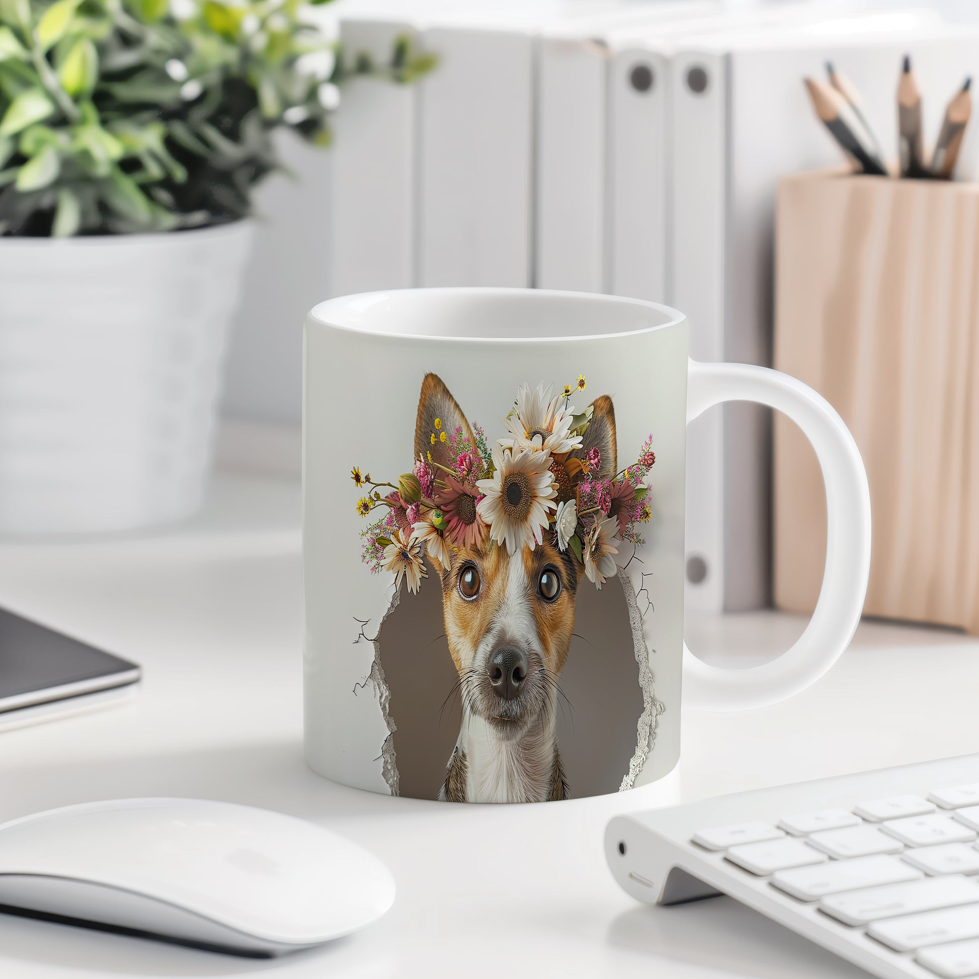 Tento keramický hrnek s realistickým motivem psa a květinovou korunou potěší všechny milovníky zvířat a originálního designu. Skvělý tip na dárek pro přátele nebo rodinu, kteří mají rádi jedinečné kousky. Materiál: keramika. Objem: 330 ml. Vhodné do myčky i mikrovlnky. Používání tohoto hrnku přináší radost z každého doušku.