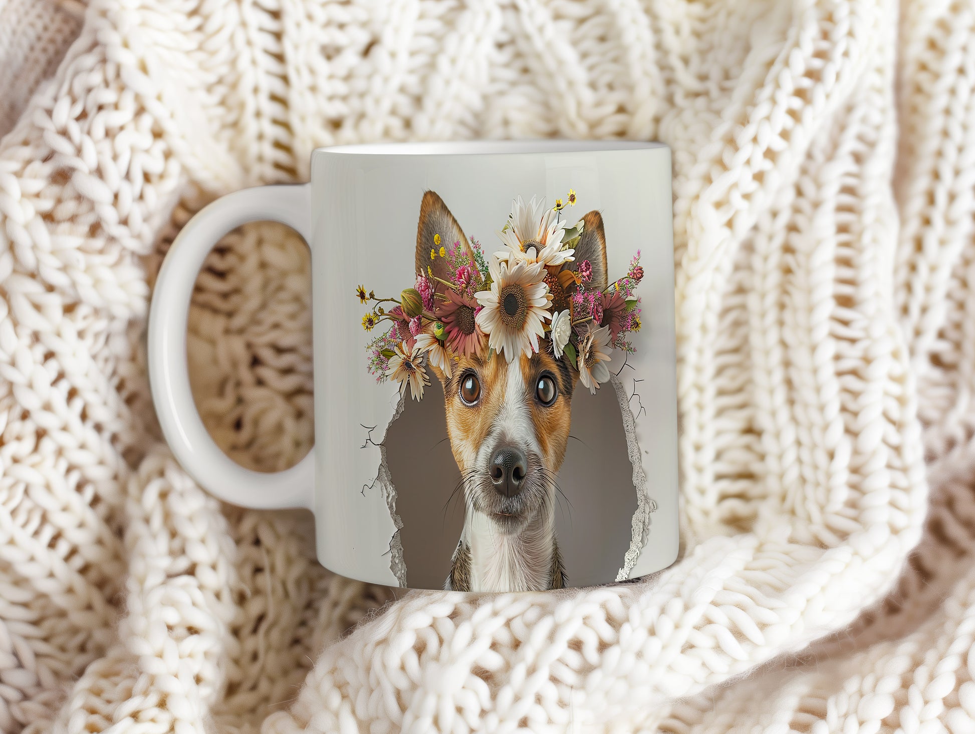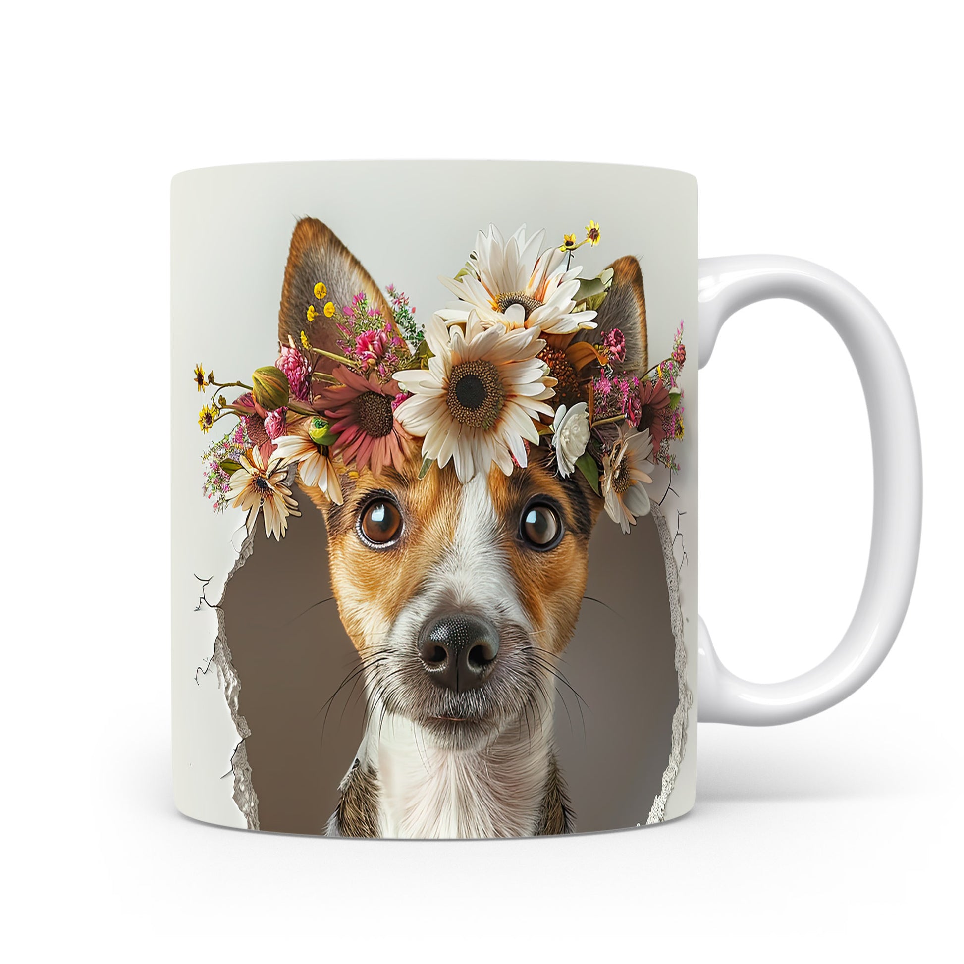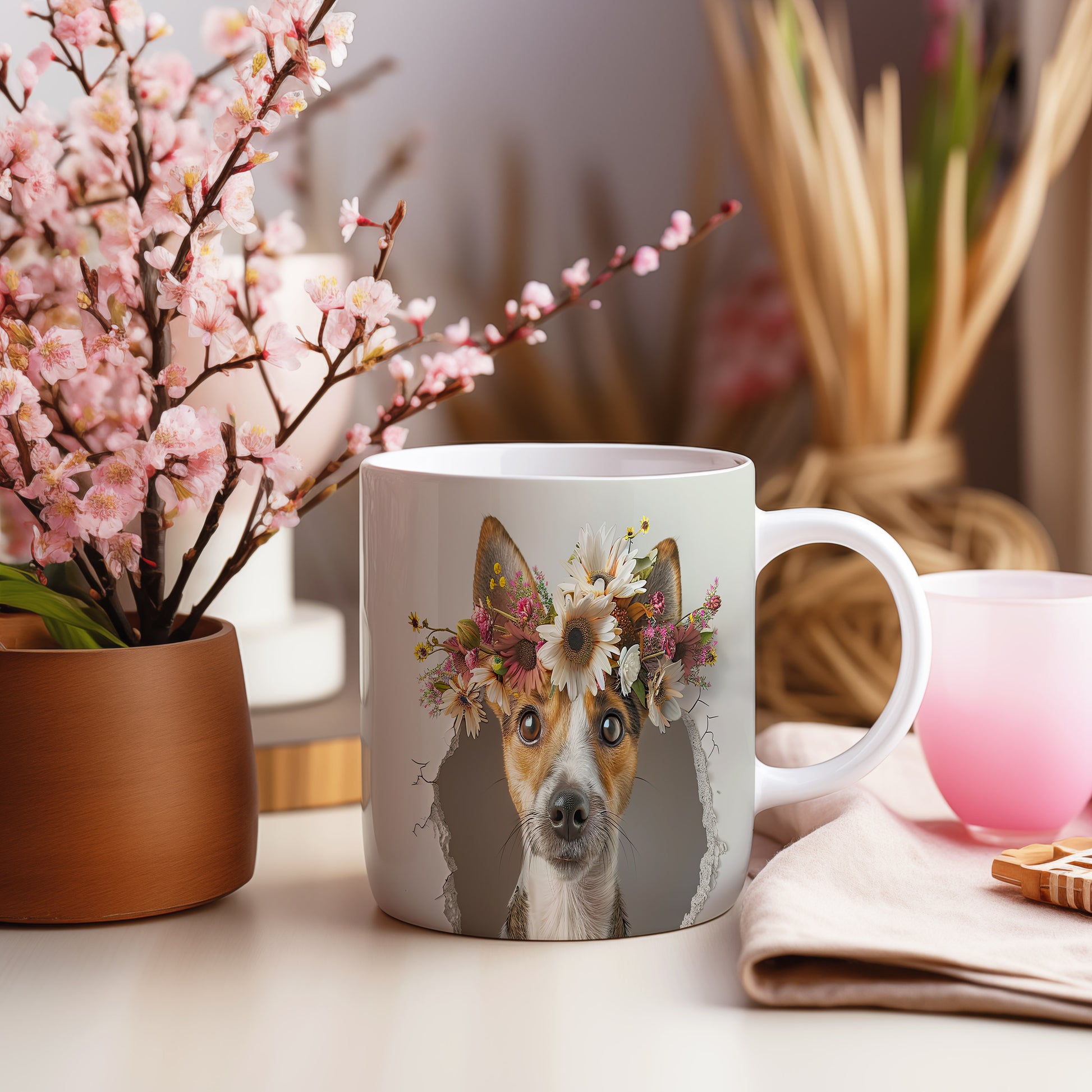 Tento keramický hrnek s realistickým motivem psa a květinovou korunou potěší všechny milovníky zvířat a originálního designu. Skvělý tip na dárek pro přátele nebo rodinu, kteří mají rádi jedinečné kousky. Materiál: keramika. Objem: 330 ml. Vhodné do myčky i mikrovlnky. Používání tohoto hrnku přináší radost z každého doušku.
