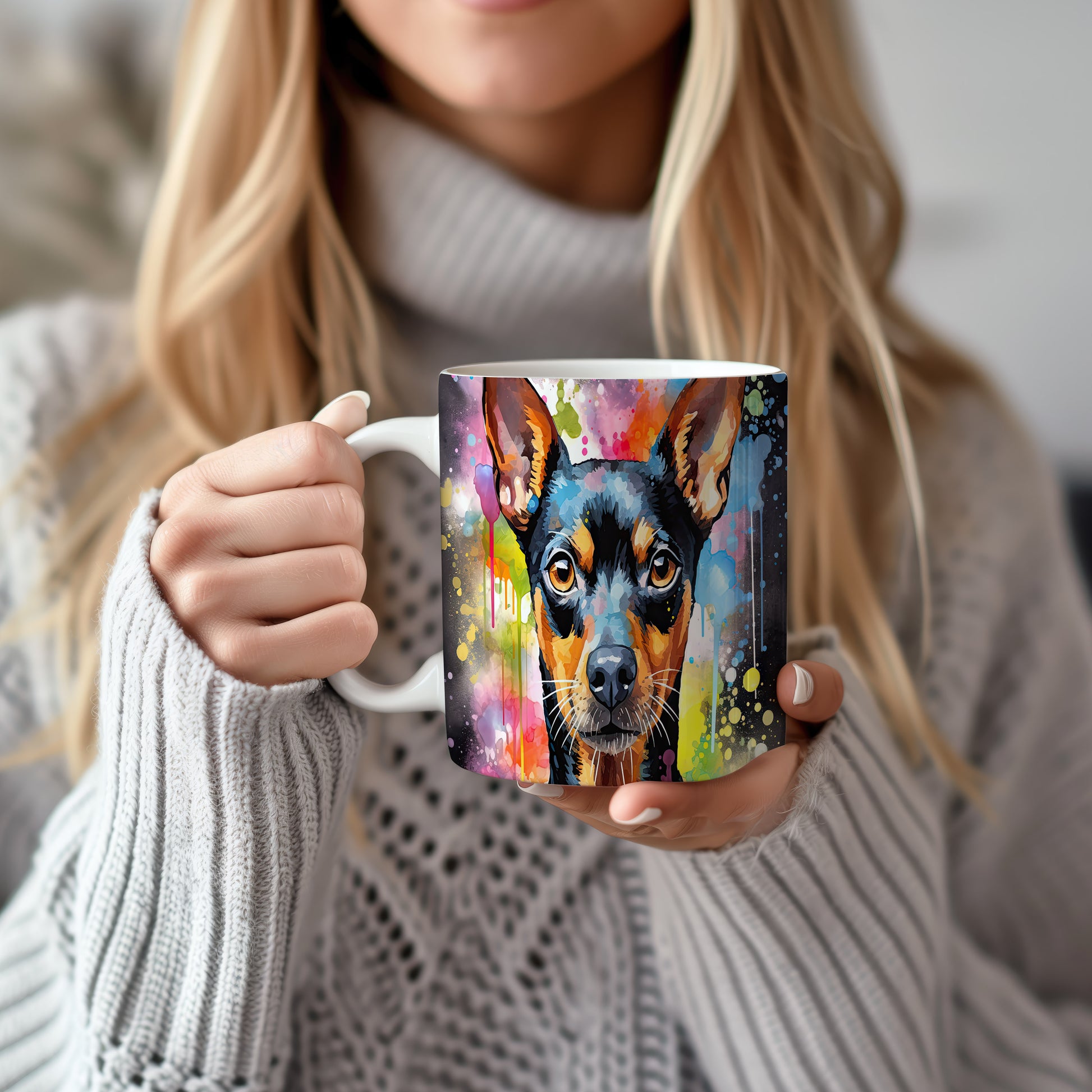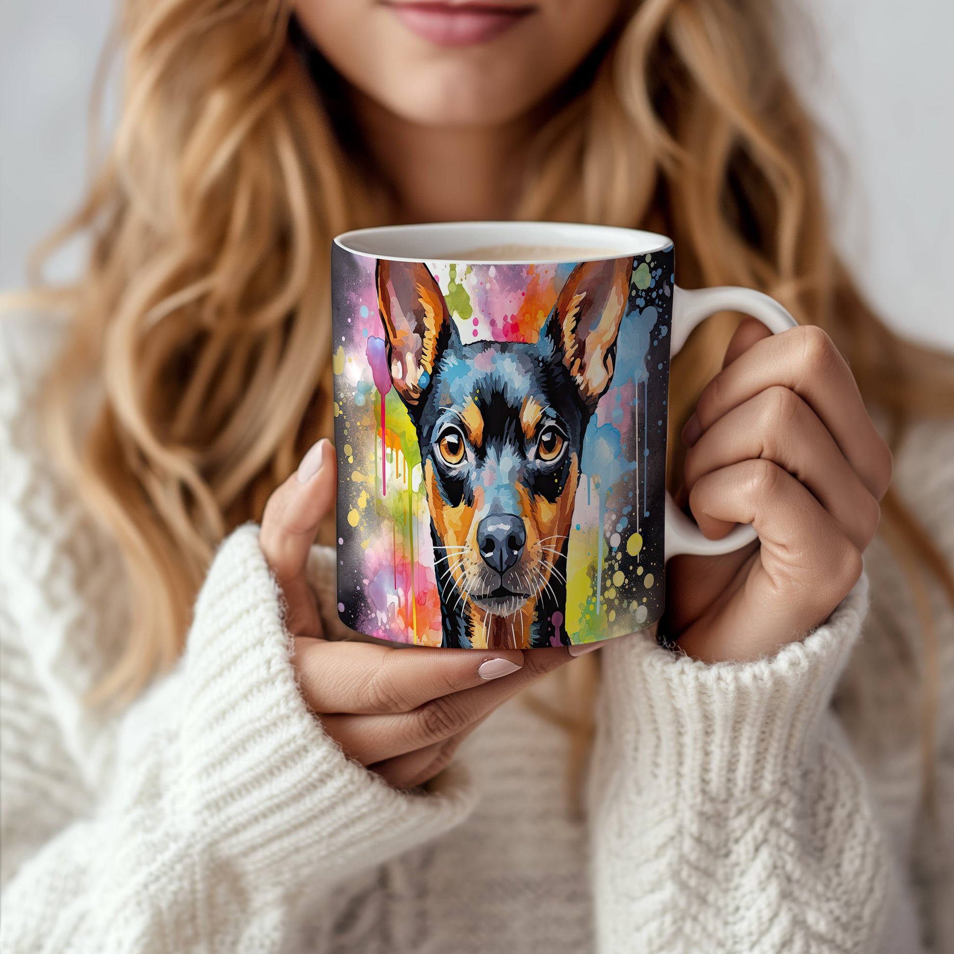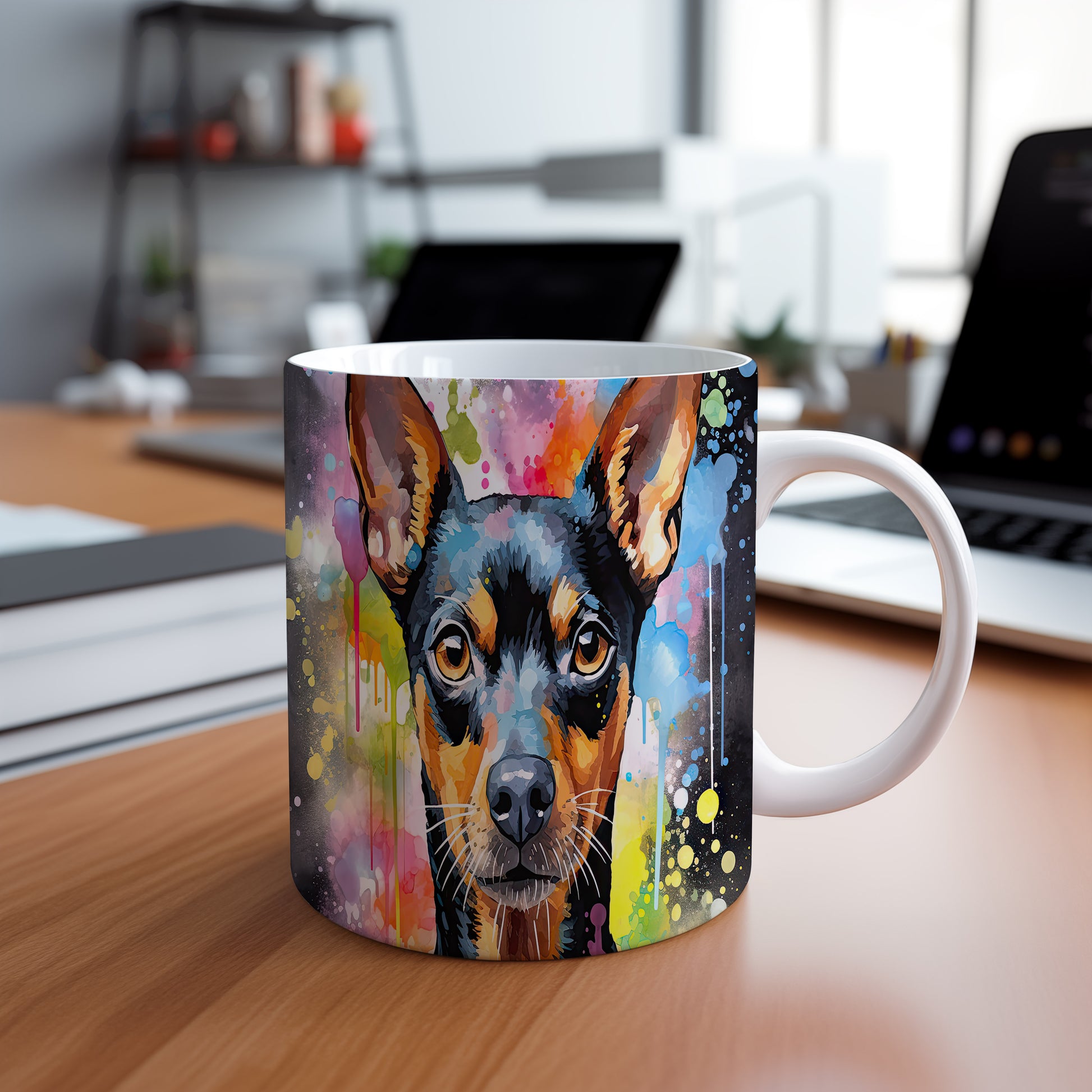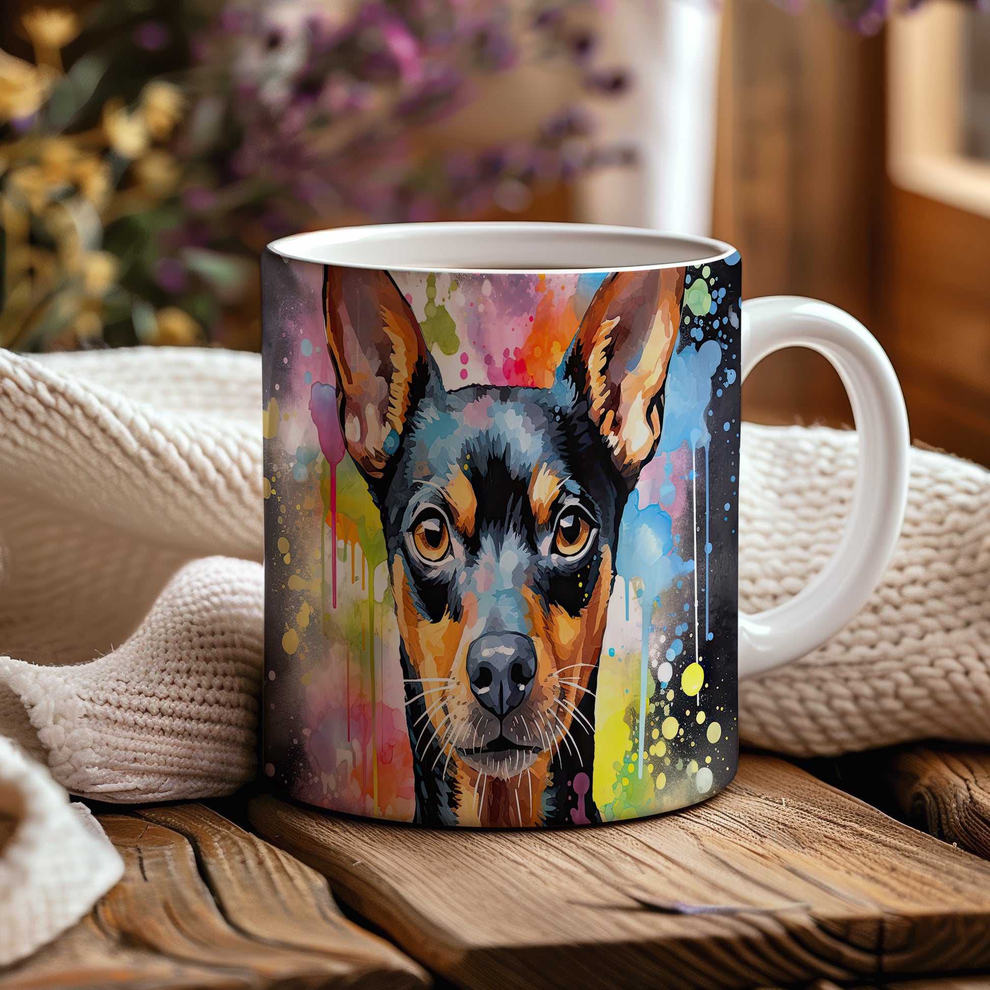 Hrnek s teriérem na barevném pozadí