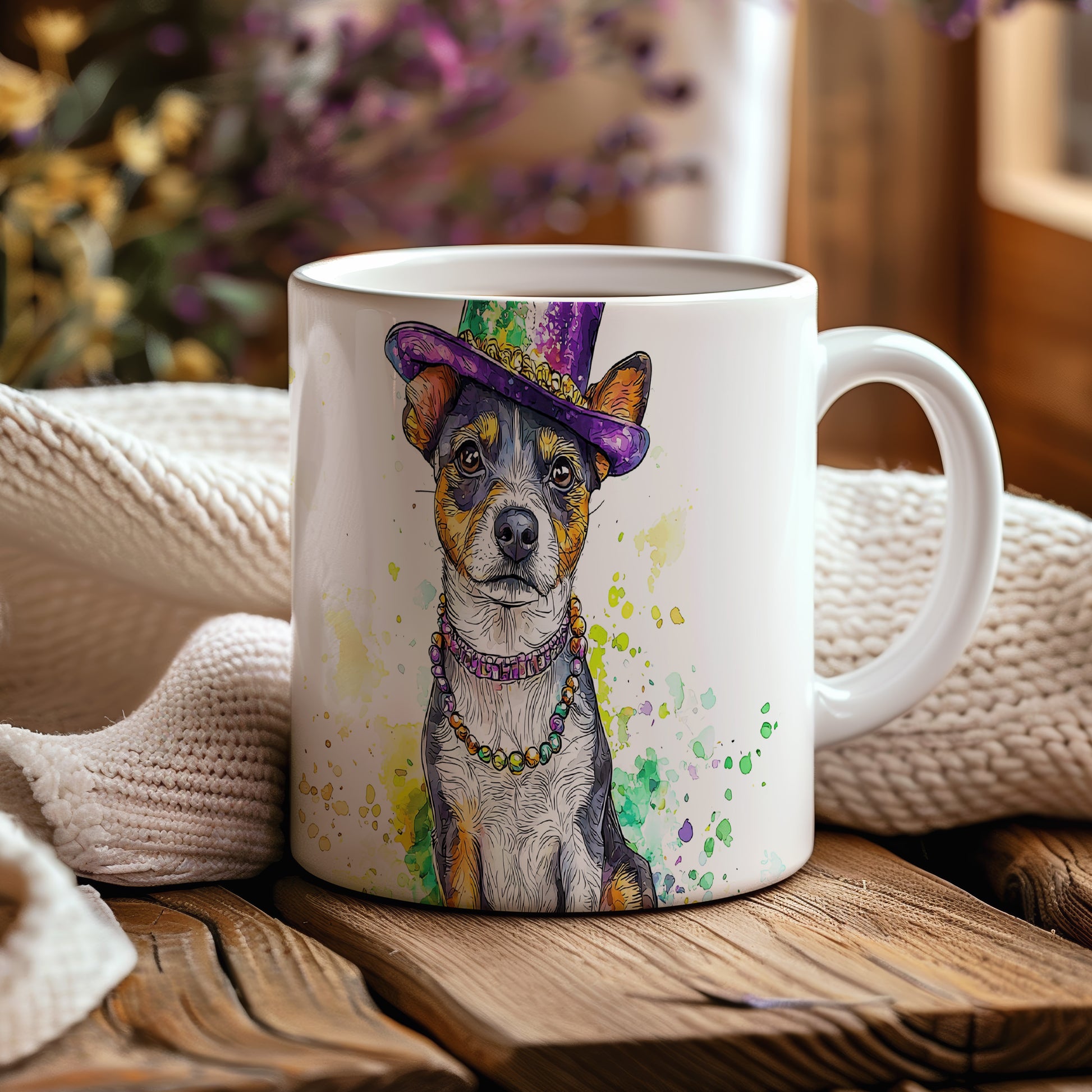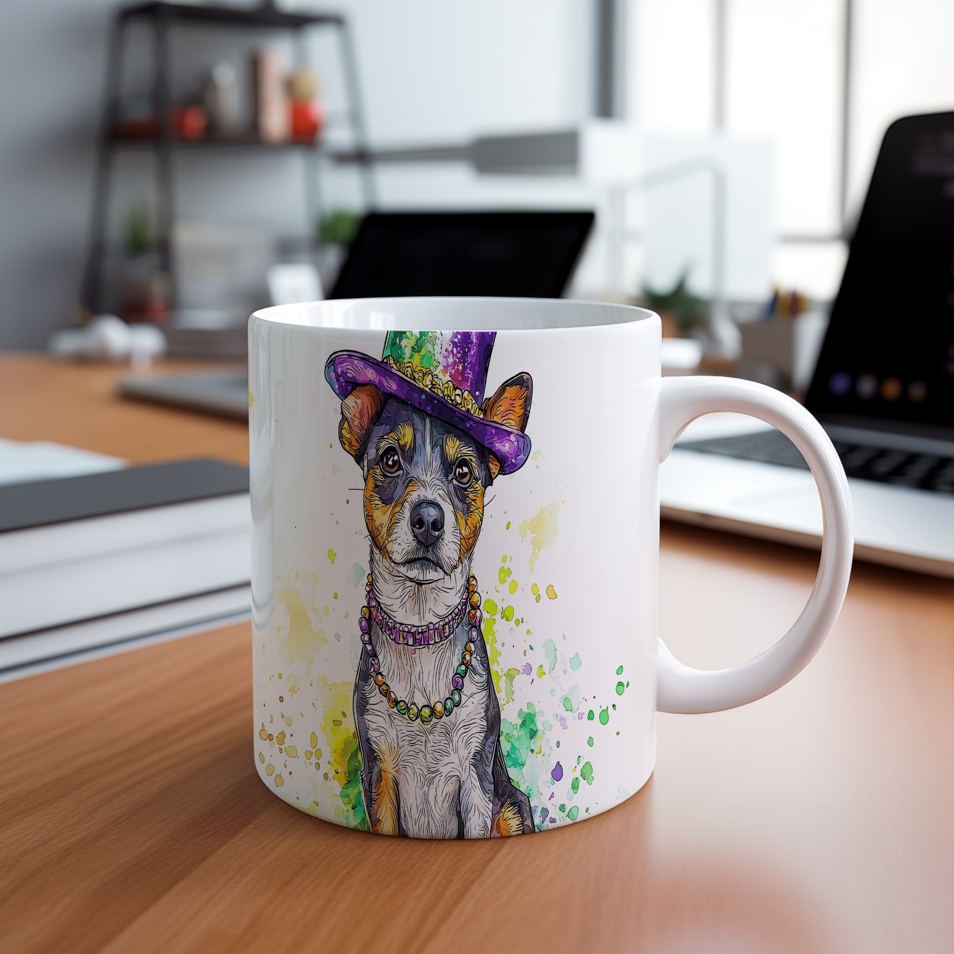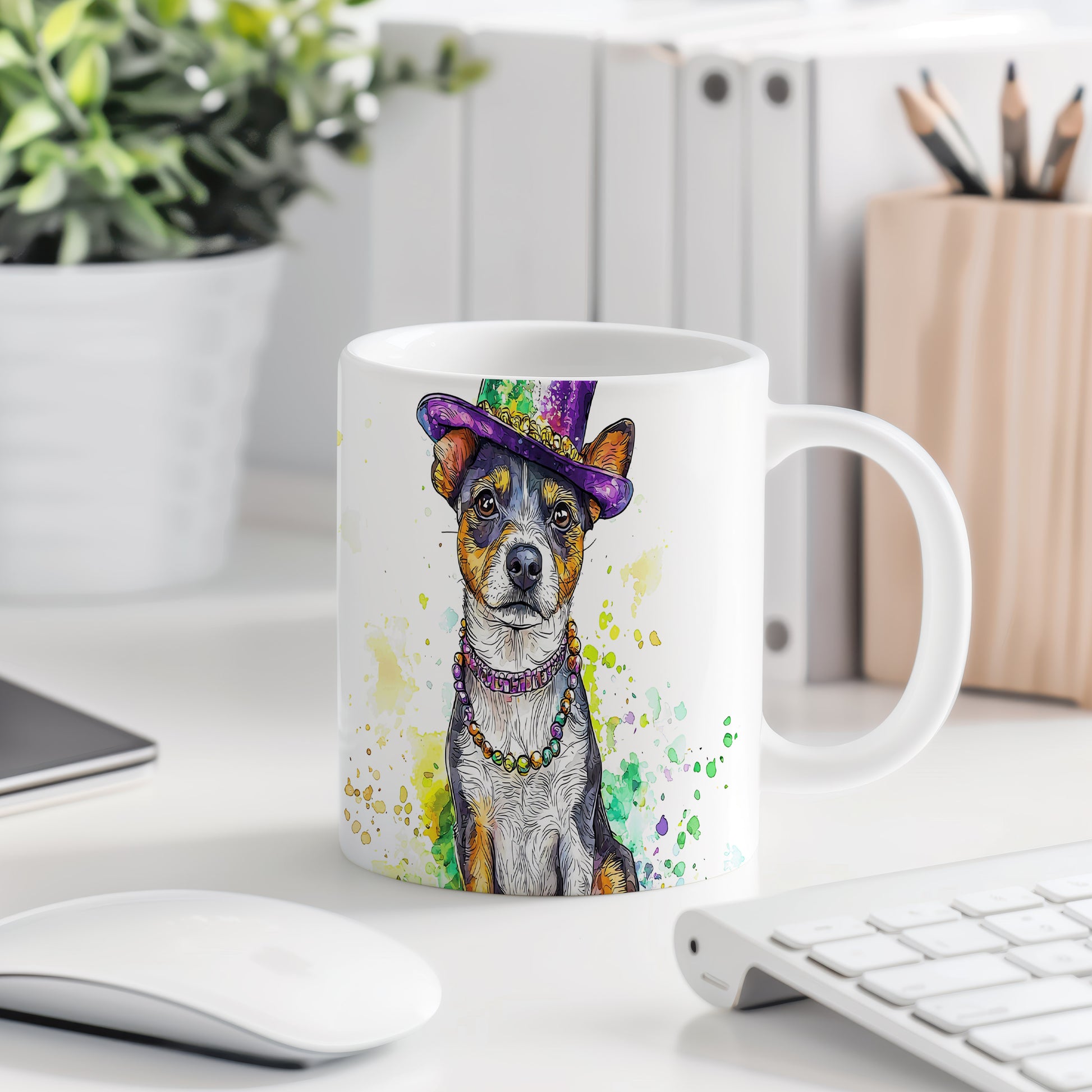 Na hrnku je zobrazen malý pes s barevným kloboukem, ideální pro milovníky psů a jako originální dárek. Tento hrnek potěší každého, kdo má rád zvířata a hledá něco výjimečného. Materiál: keramika. Objem: 330 ml. Vhodné do myčky i mikrovlnky. Používání tohoto hrnku přináší radost a zábavu do každodenního pití.