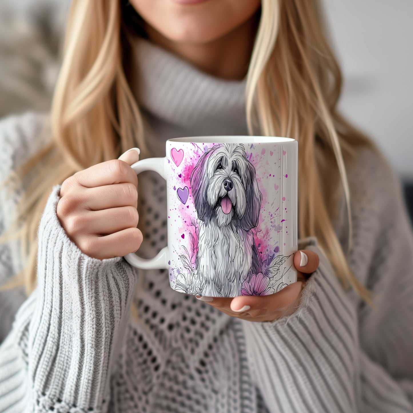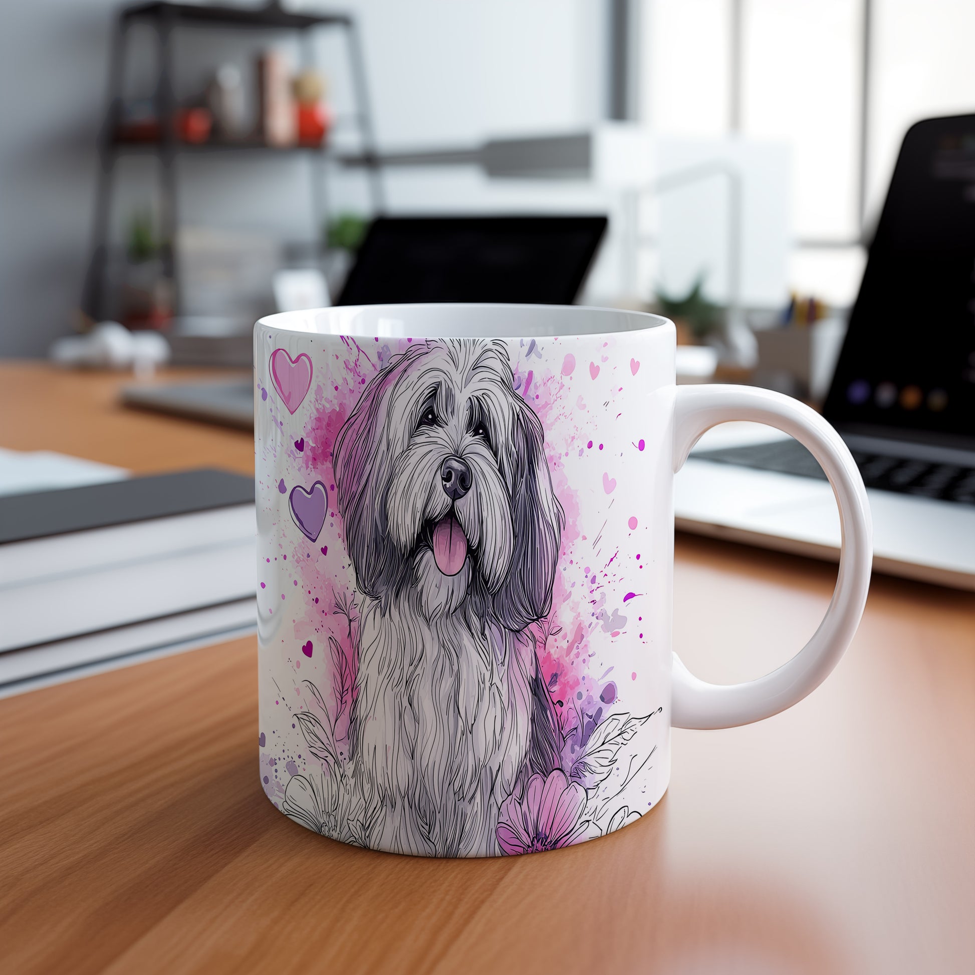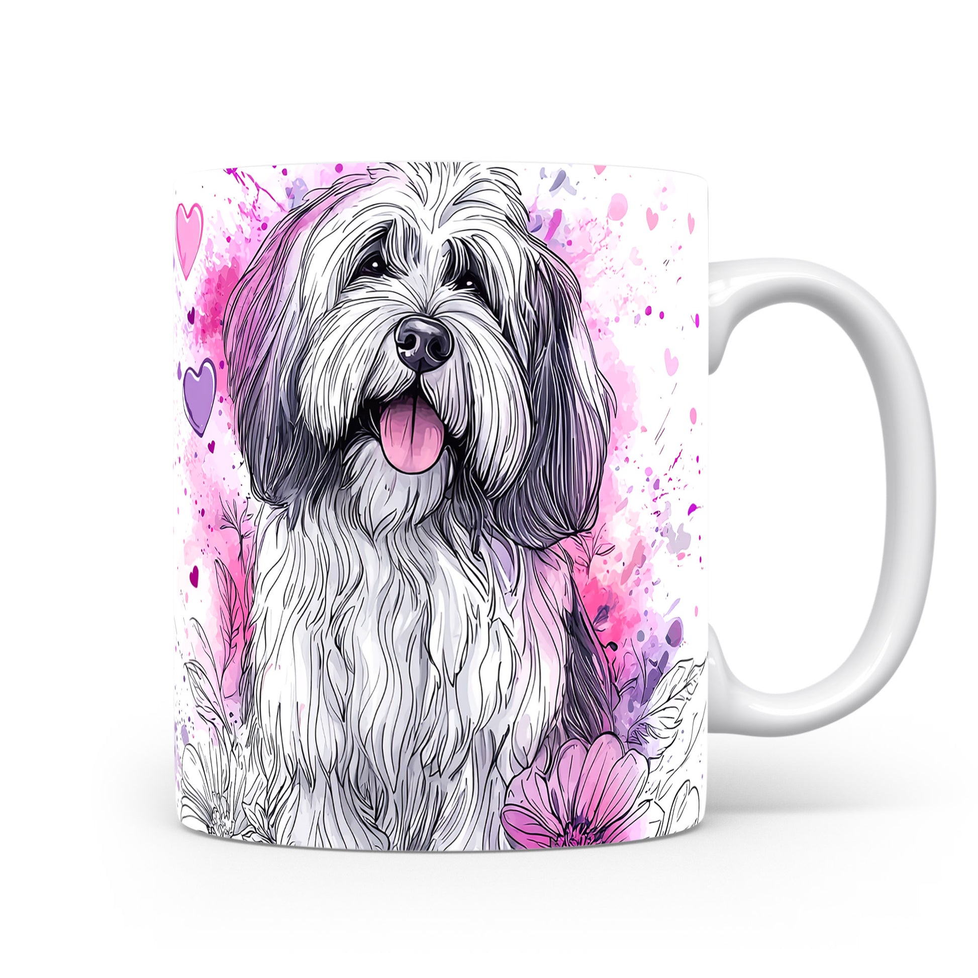 Hrnek zdobí ilustrace roztomilého psa s vyplazeným jazykem na barevném květinovém pozadí. Tento hrnek je ideální pro milovníky psů a skvělým dárkem pro přátele či rodinu. Materiál: keramika. Objem: 330 ml. Vhodné do myčky i mikrovlnky. Používání tohoto hrnku přináší radost a útulnost do každého dne.