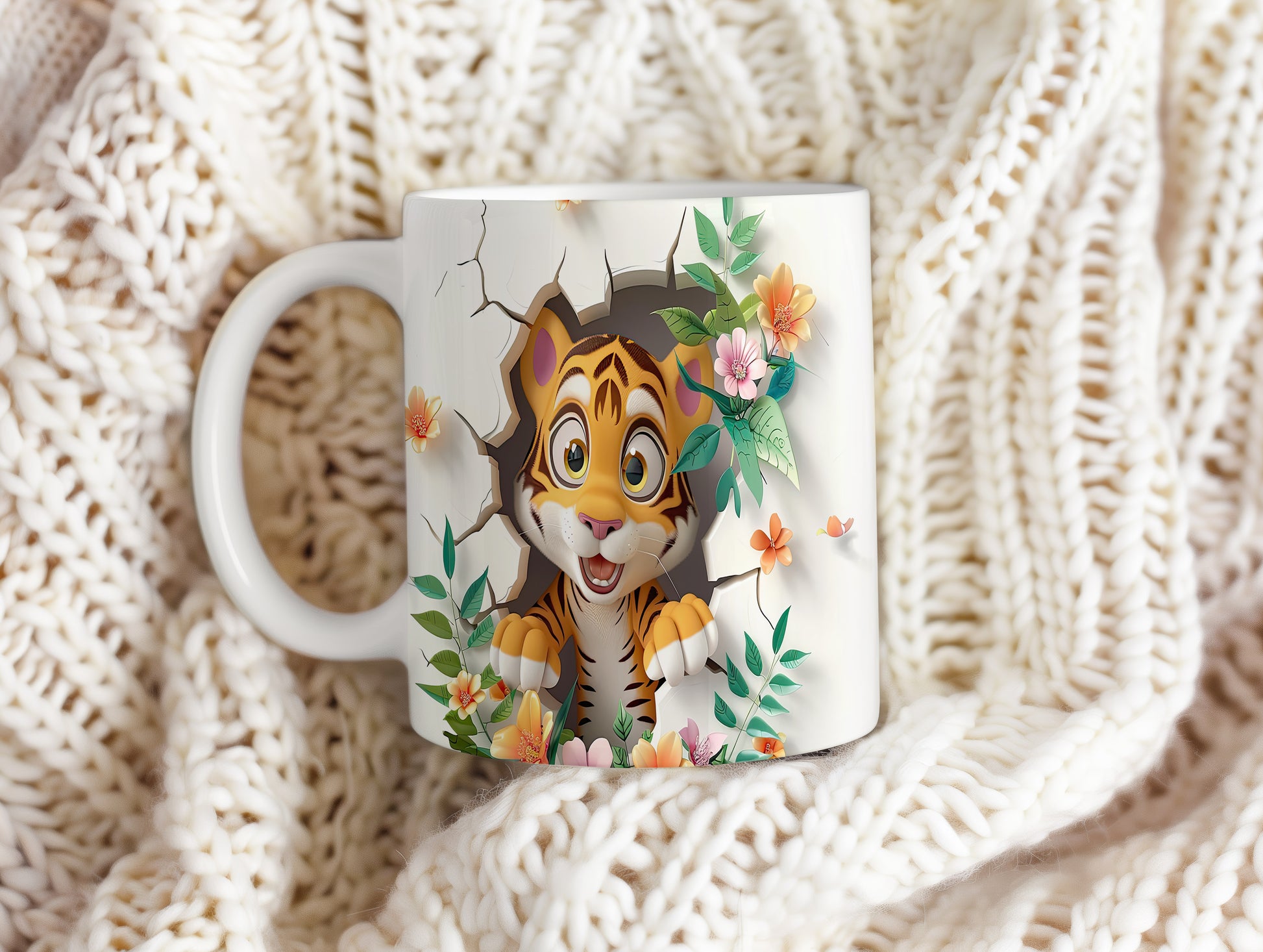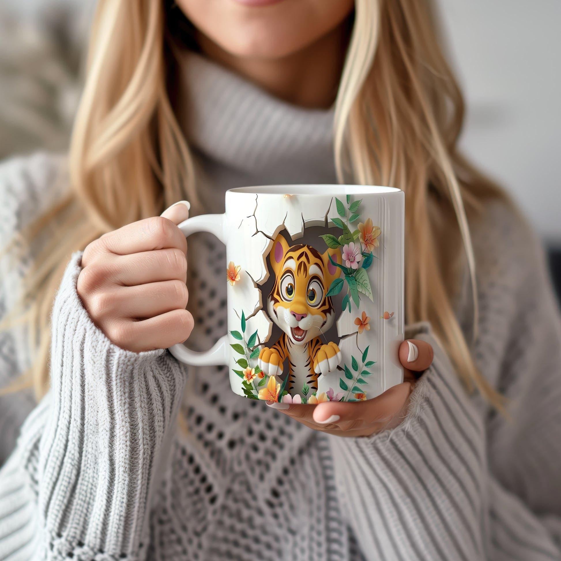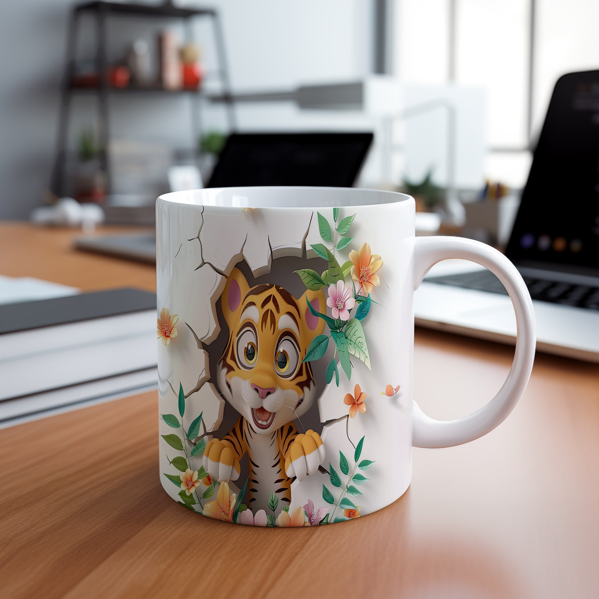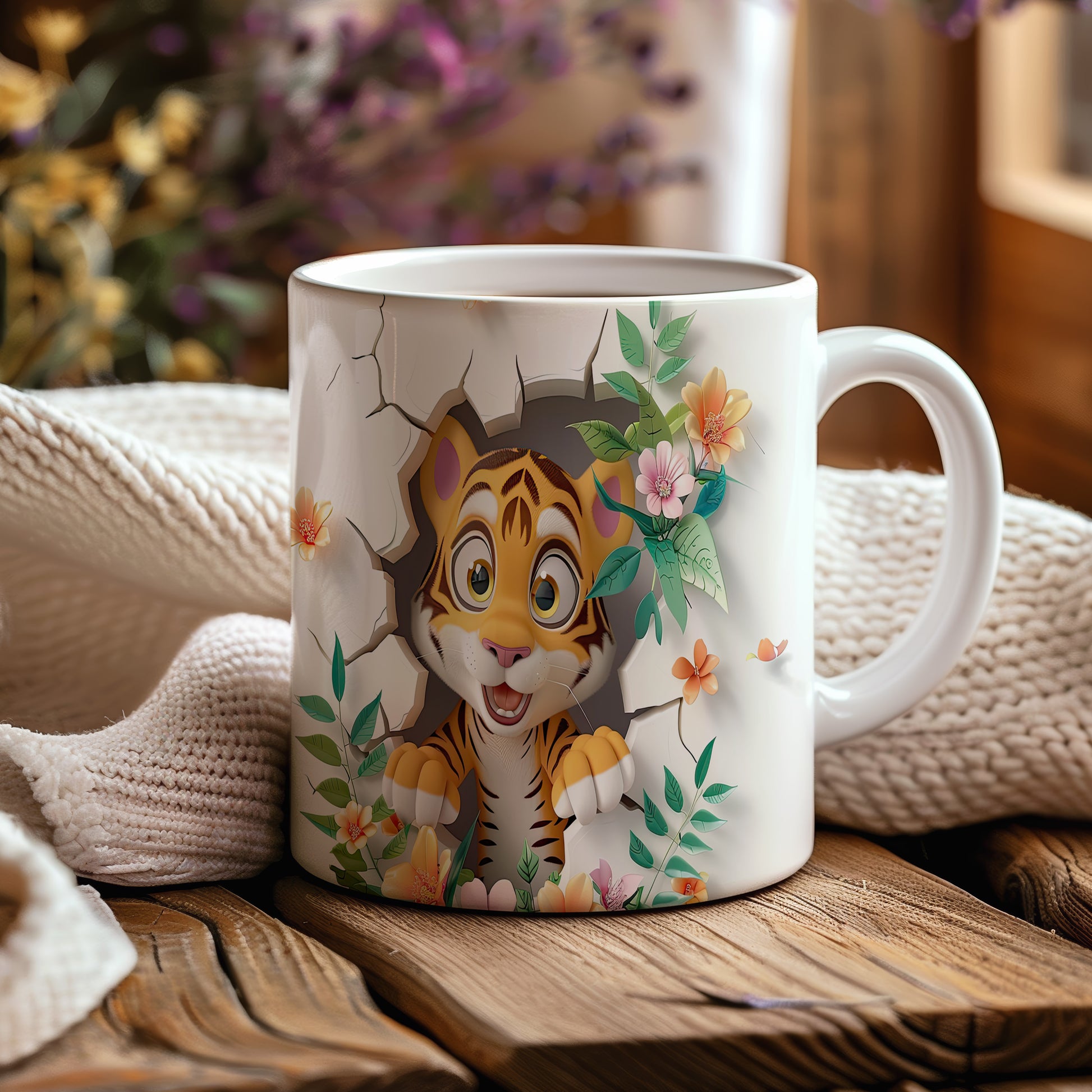 Hrnek s roztomilým tigríkem a květinovým motivem je ideální pro milovníky zvířat. Tento hrnek potěší každého, kdo hledá originální dárek pro své blízké. Materiál: keramika. Objem: 330 ml. Vhodné do myčky i mikrovlnky. Používáním tohoto hrnku si užijete nejen kávu nebo čaj, ale také příjemný pocit z jeho jedinečného designu.