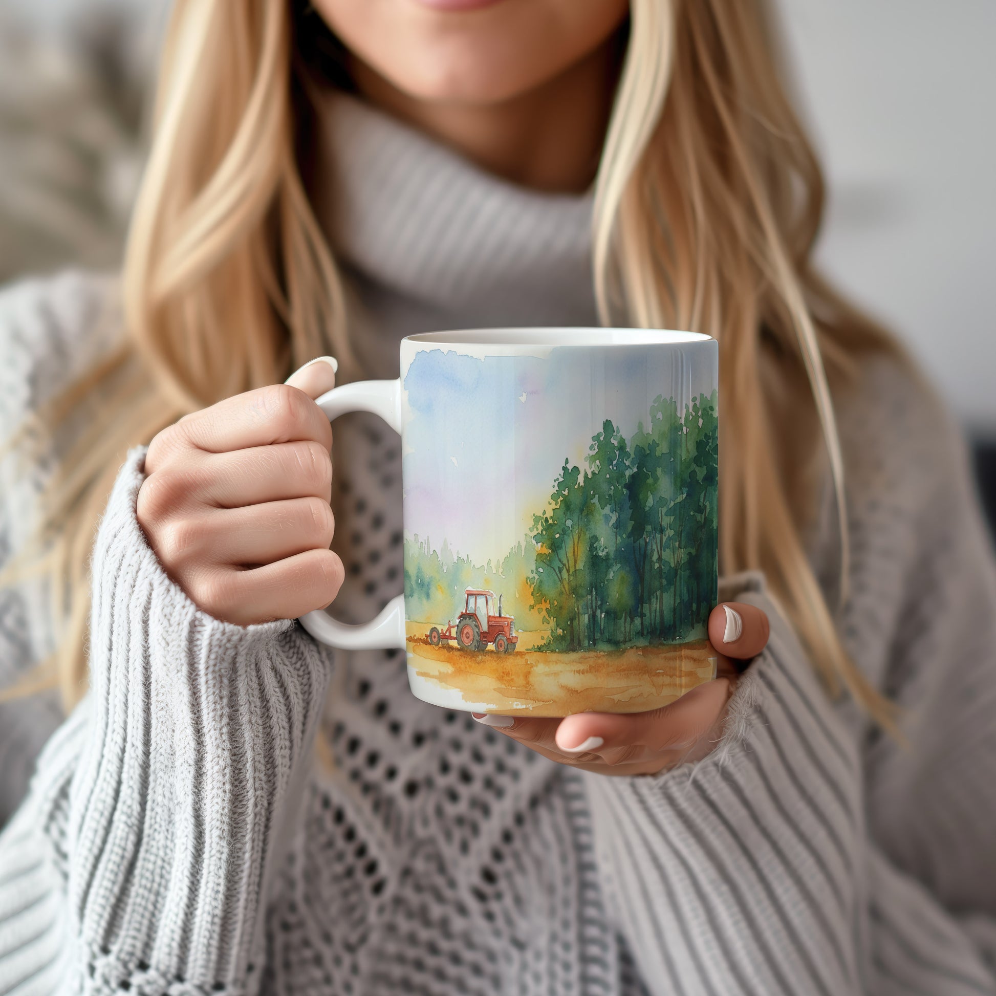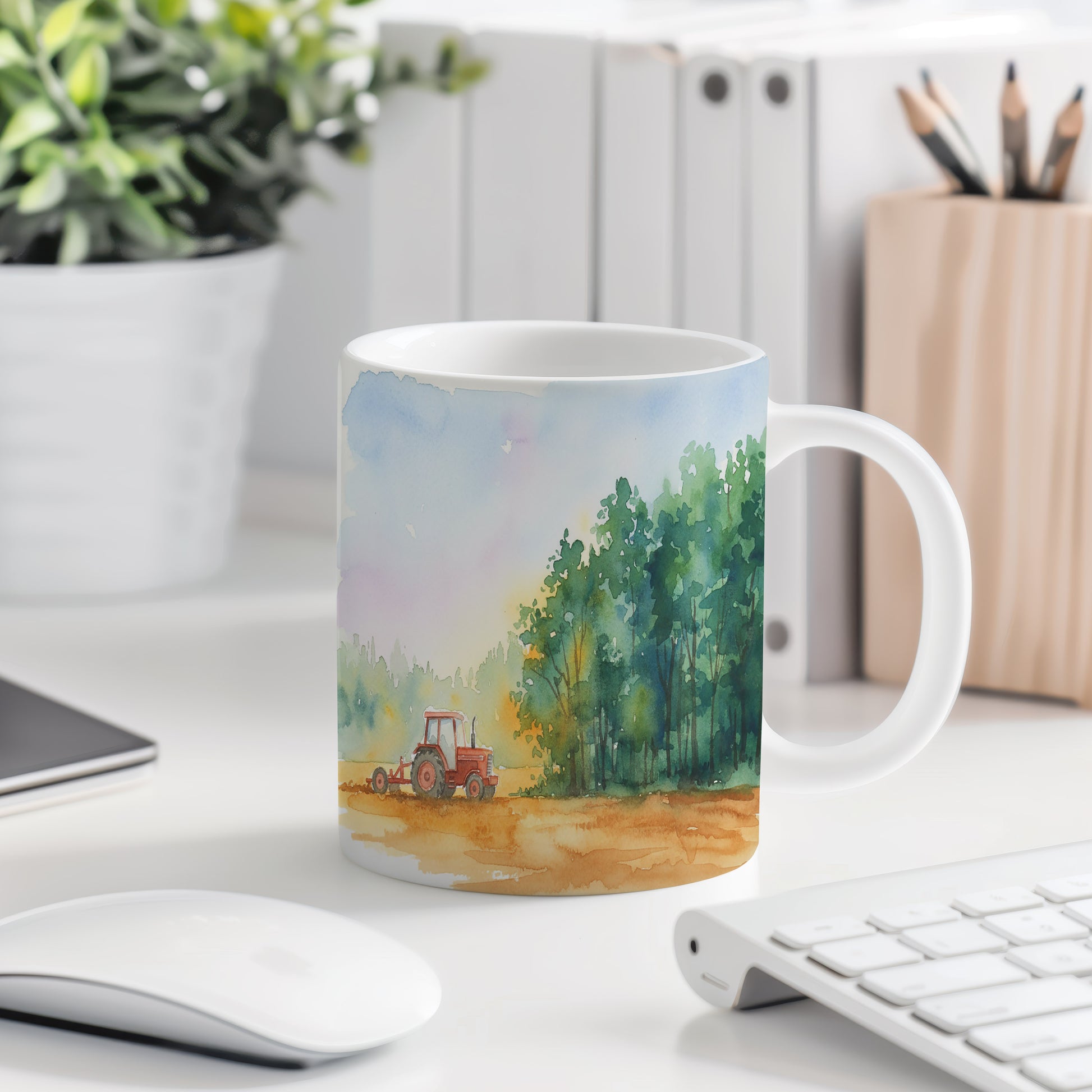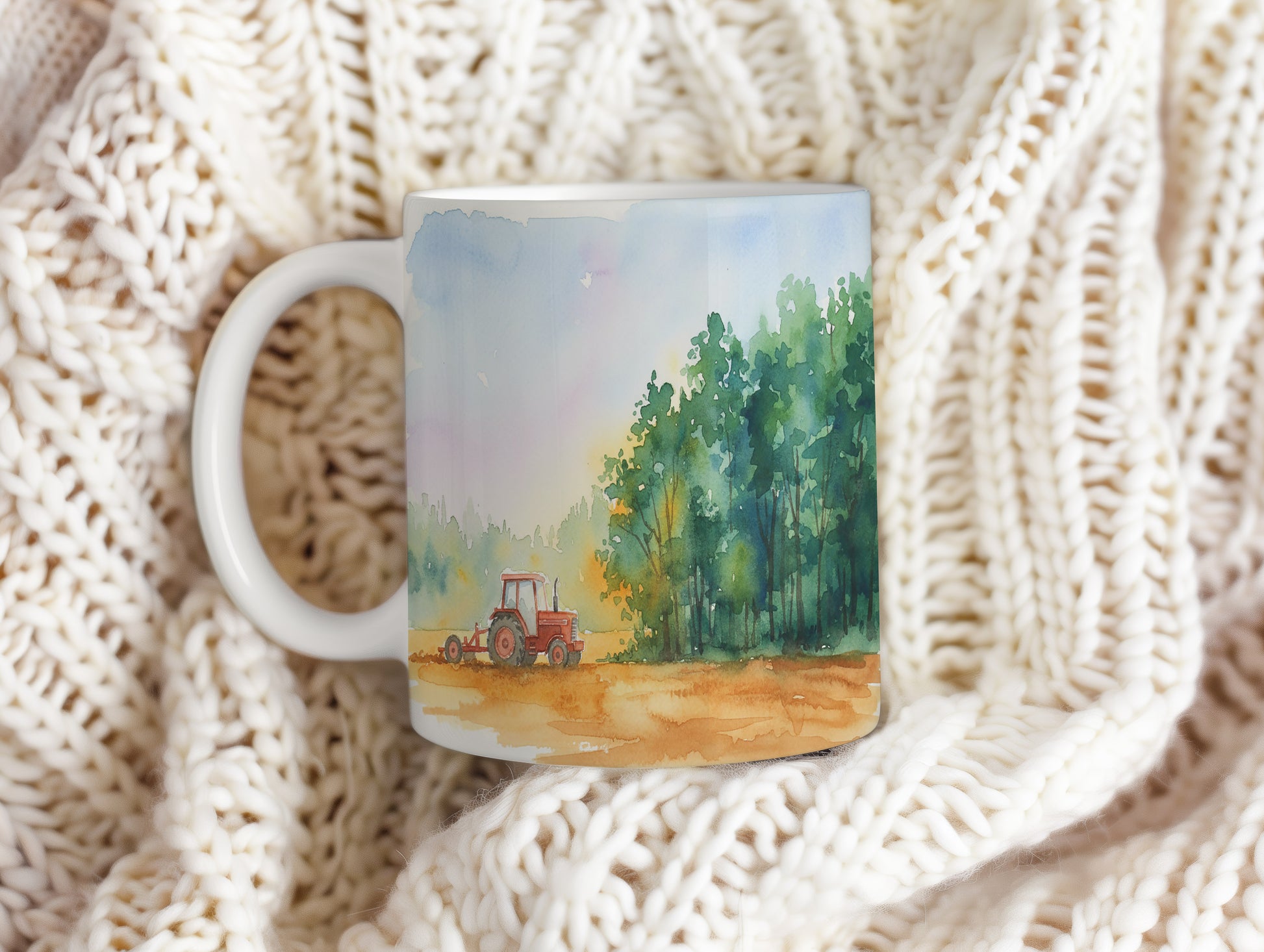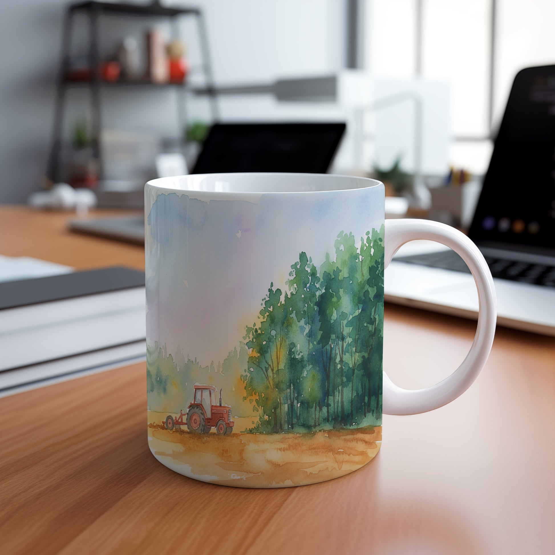 Objevte kouzlo venkovského života s tímto hrnkem, na kterém je akvarelový motiv traktoru u lesa. Jemné barvy a detailní zpracování vytváří dokonalou atmosféru klidu a přírody. Hrnek 330 ml – vhodný do myčky i mikrovlnky.