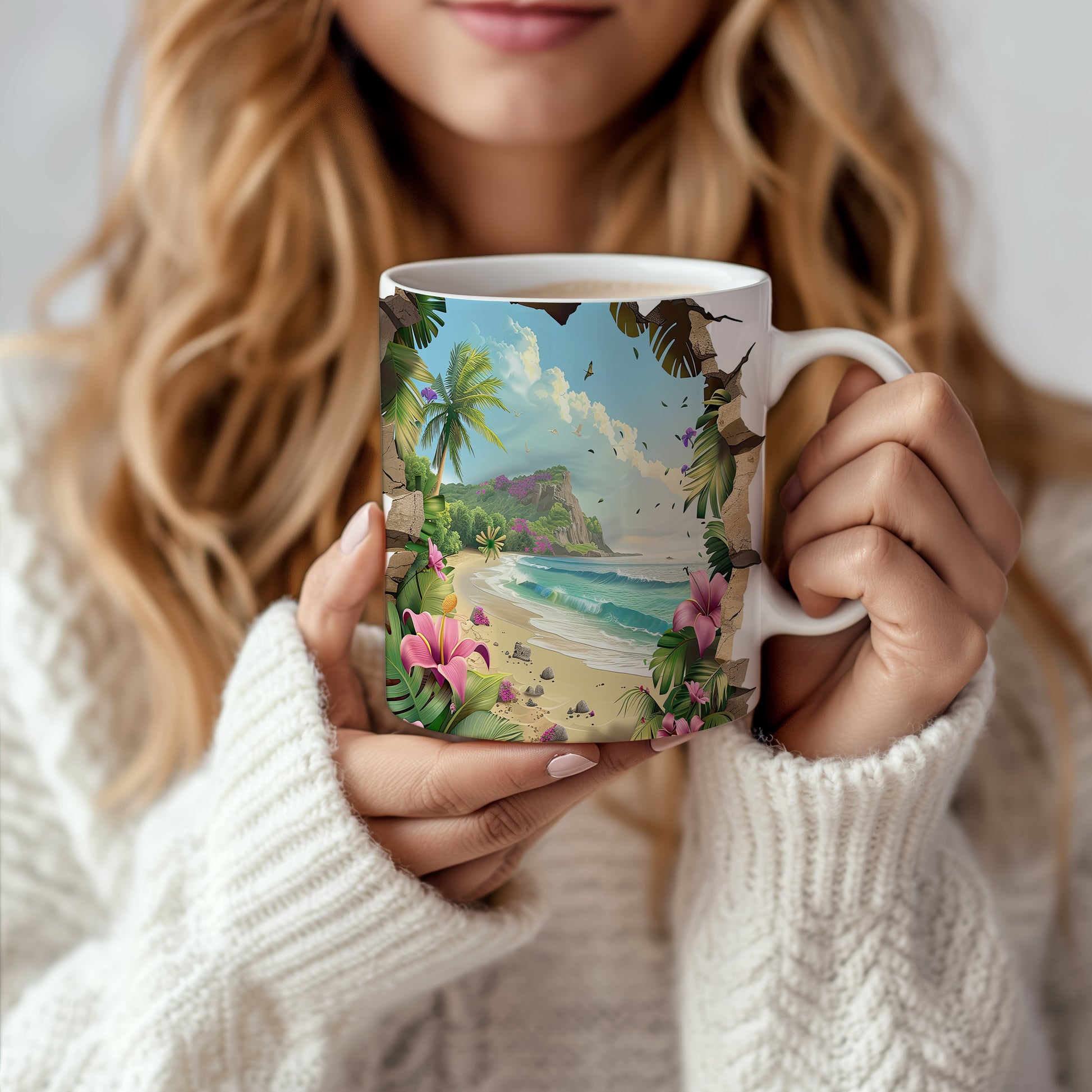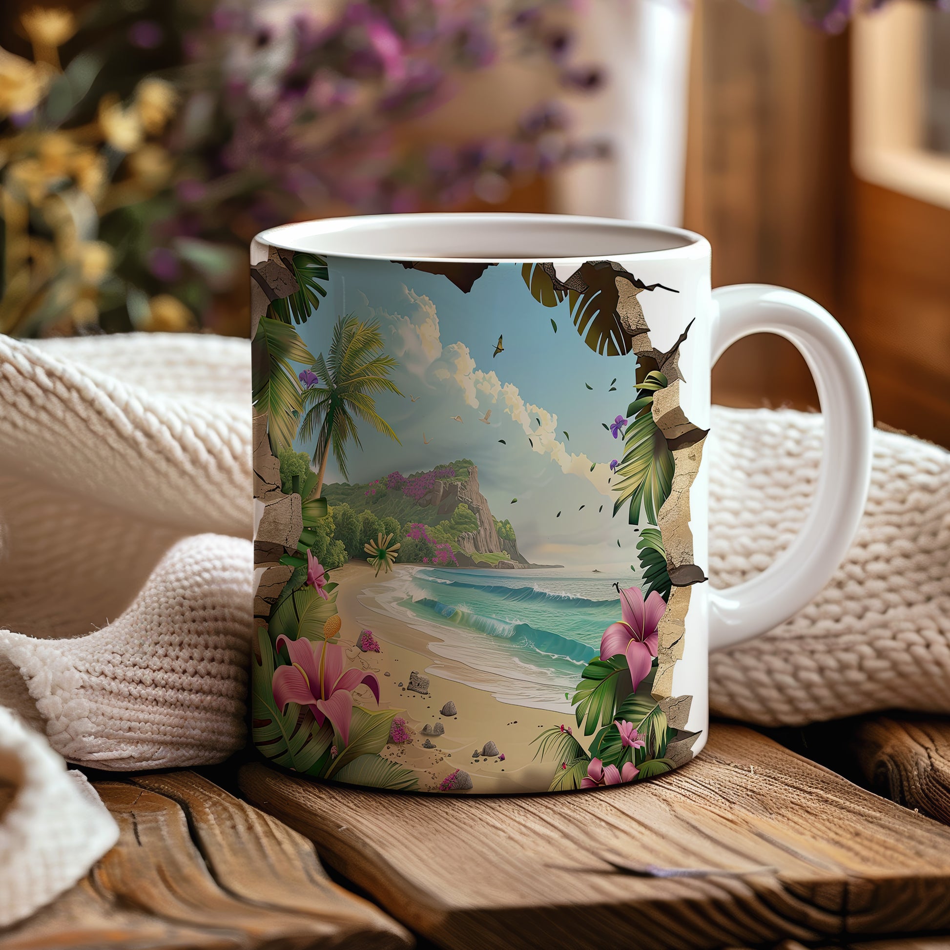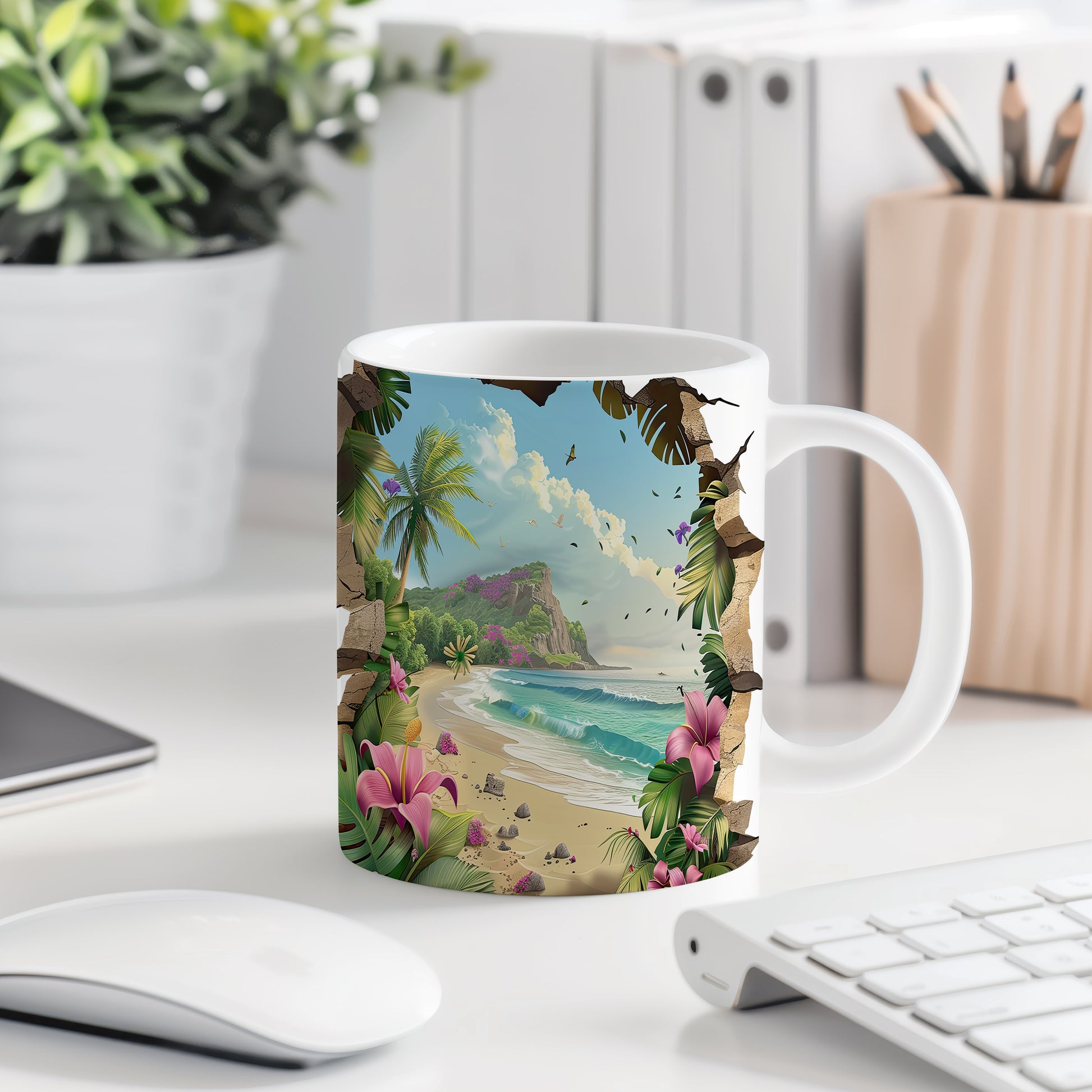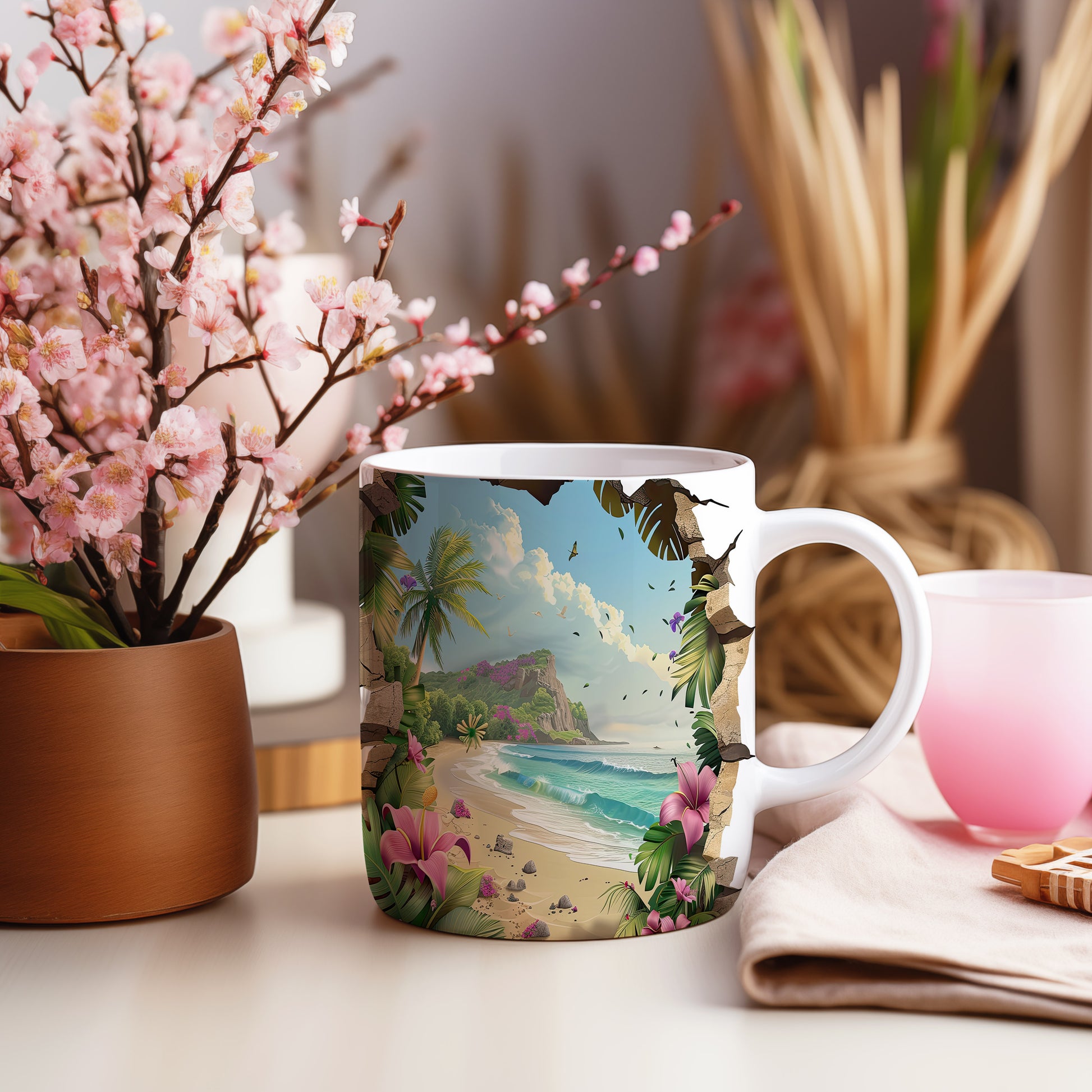 Tento hrnek s motivem tropické pláže a květin je skvělým kouskem pro milovníky exotiky. Je ideální jako dárek pro přátele nebo rodinu, kteří ocení přírodní krásy. Materiál: keramika. Objem: 330 ml. Vhodné do myčky i mikrovlnky. Používáním tohoto hrnku si každý den připomenete slunečné dny a relaxaci u moře.