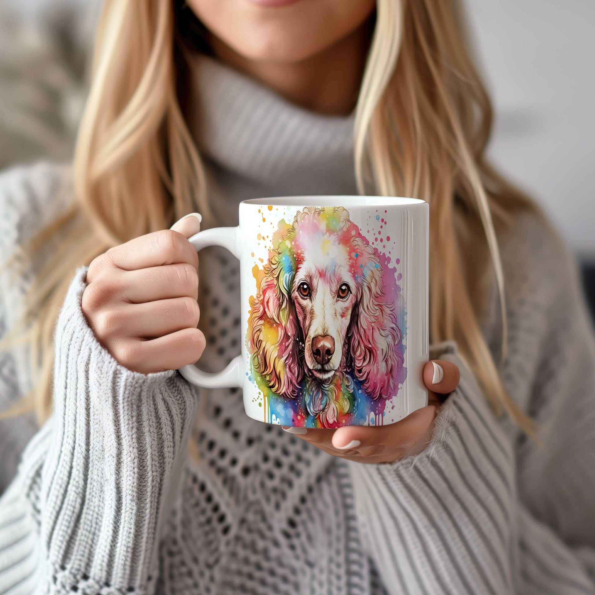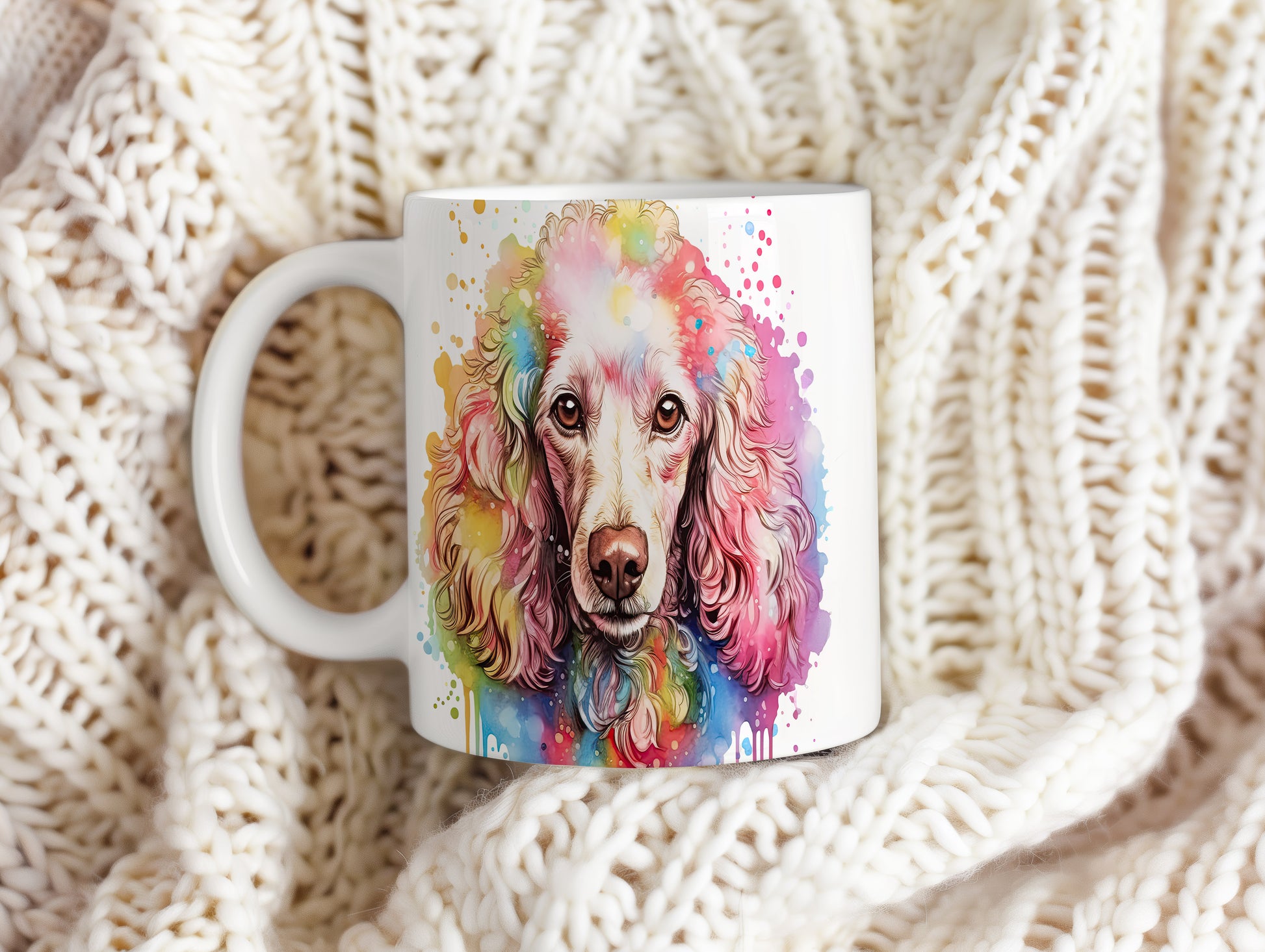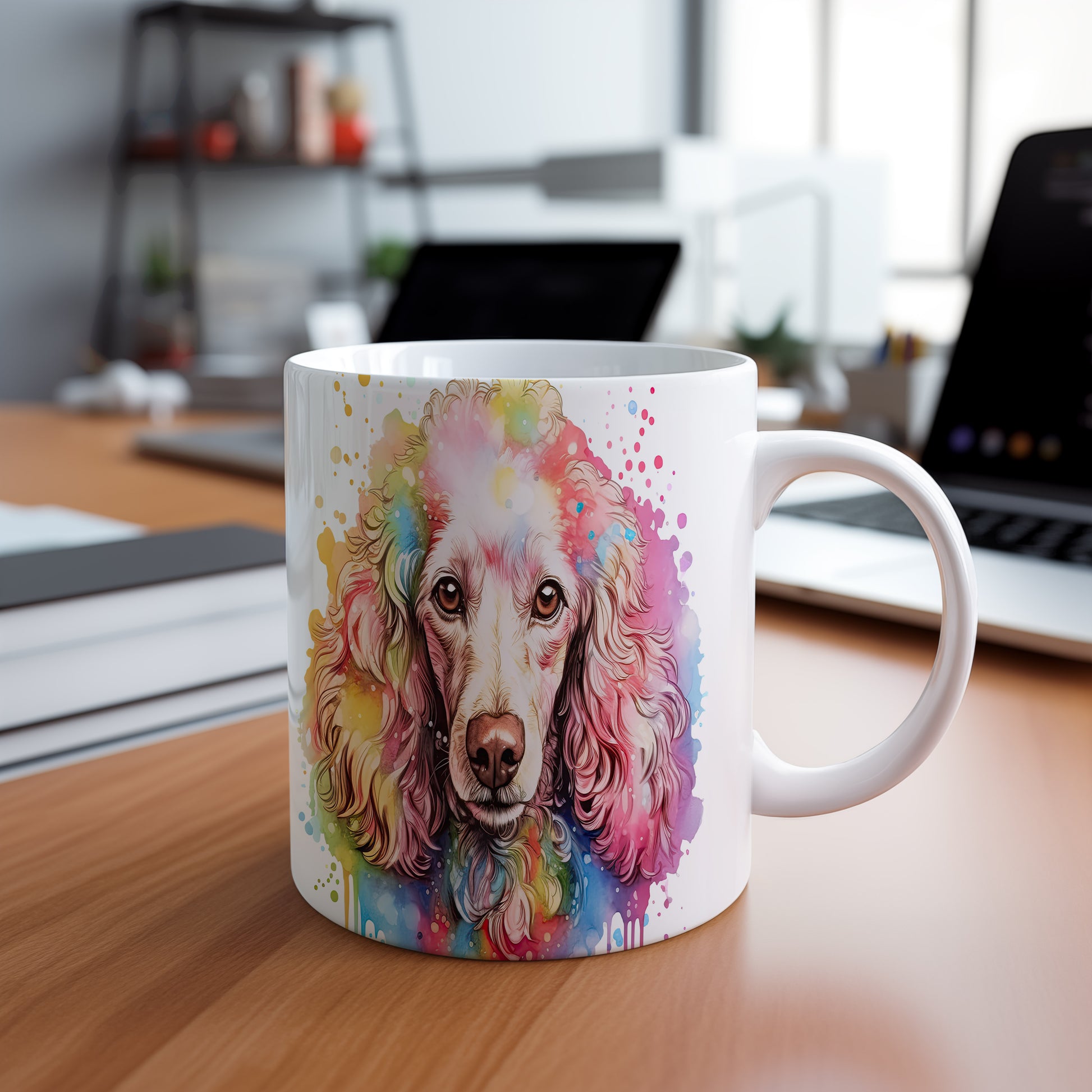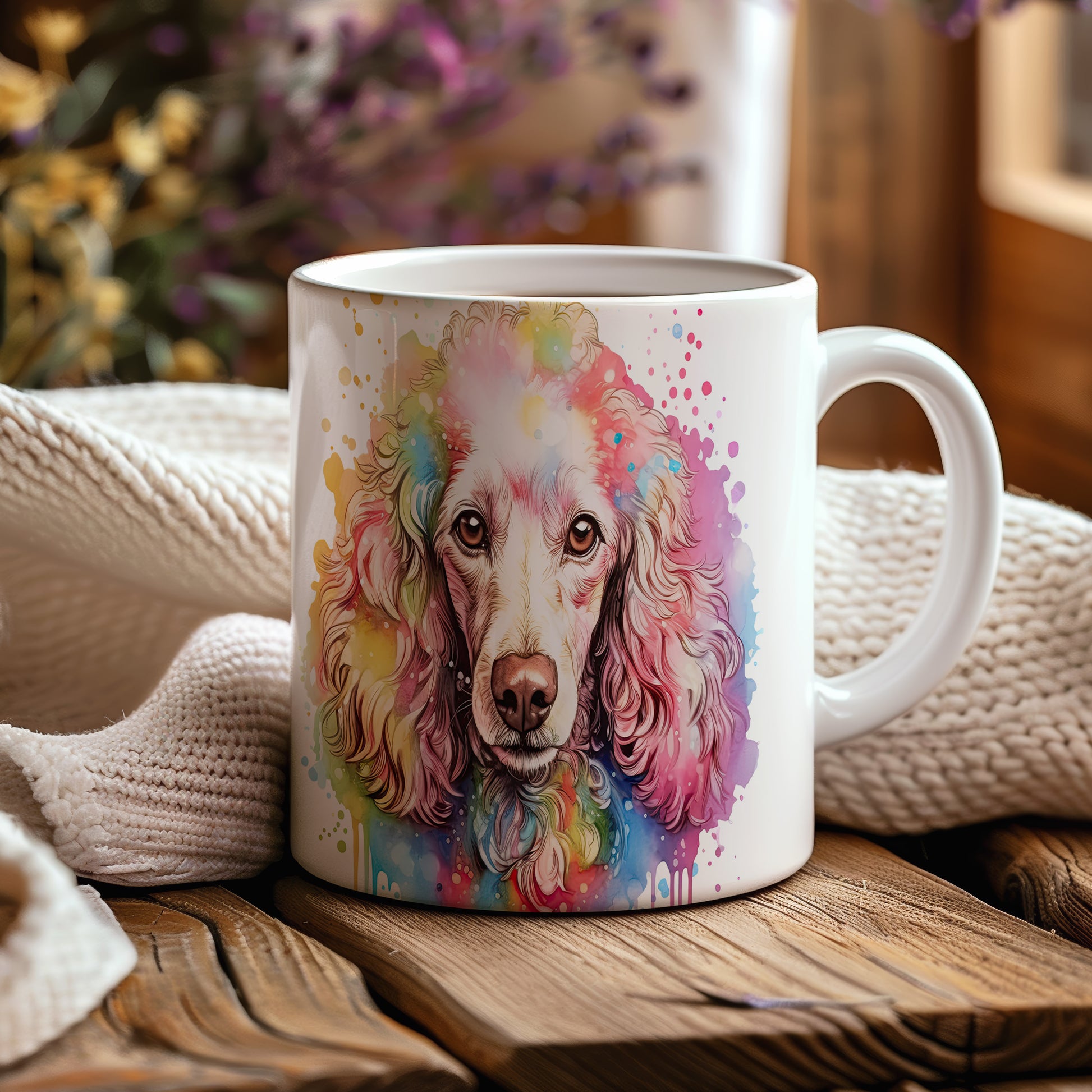Hrnek s uměleckým portrétem psa v barevných tónech – digitální ilustrací