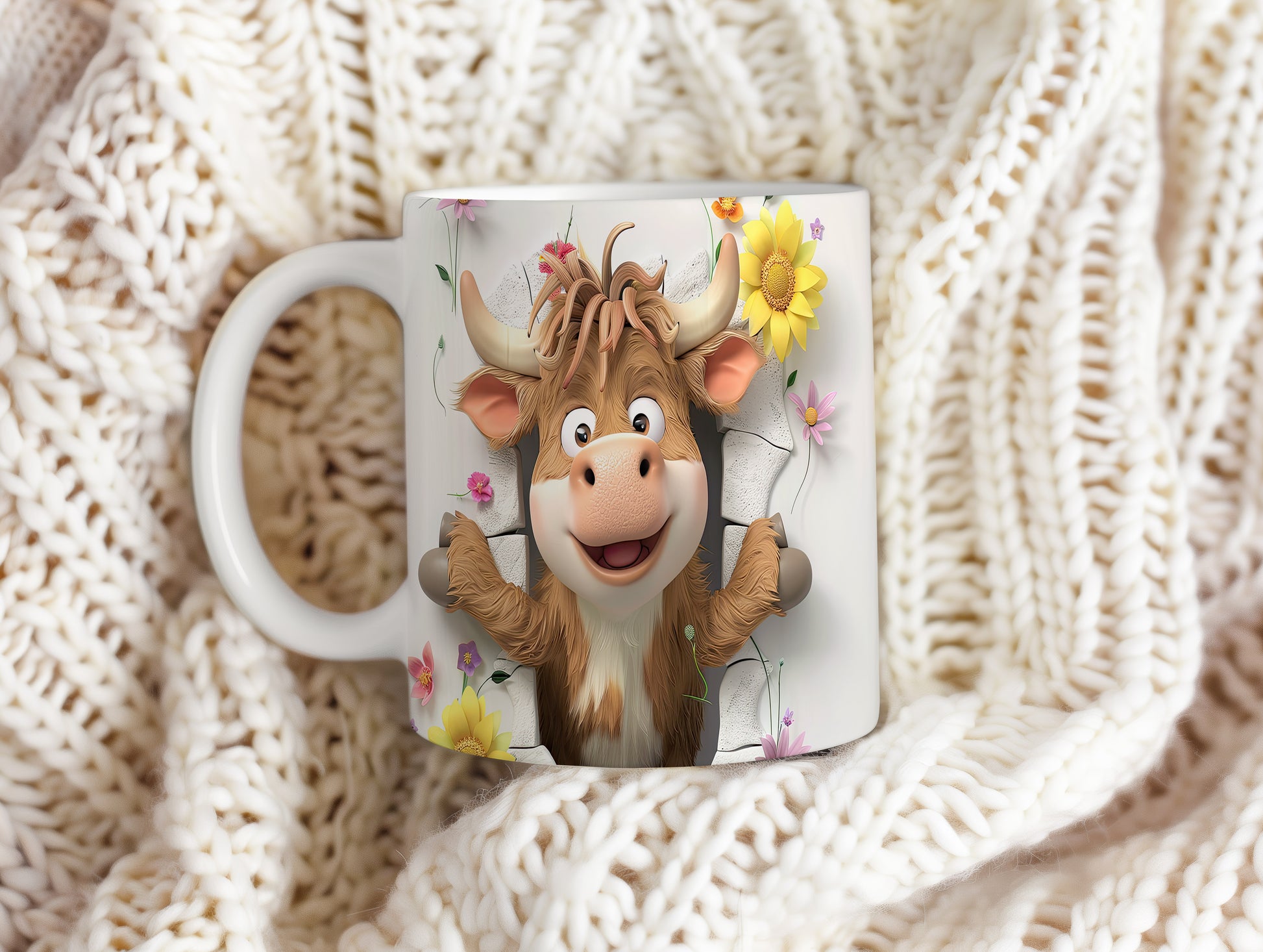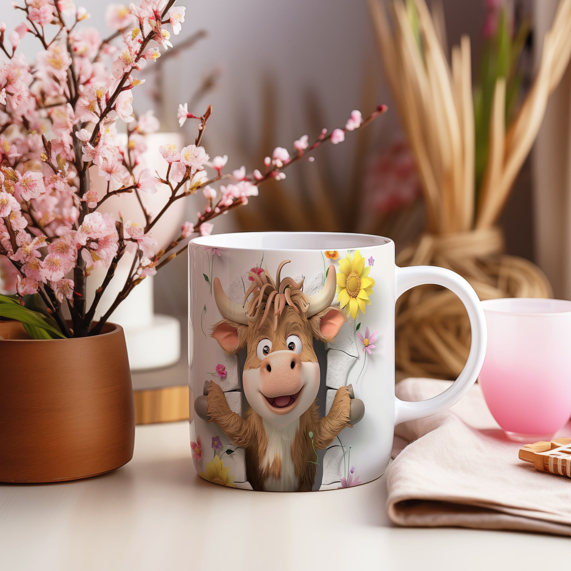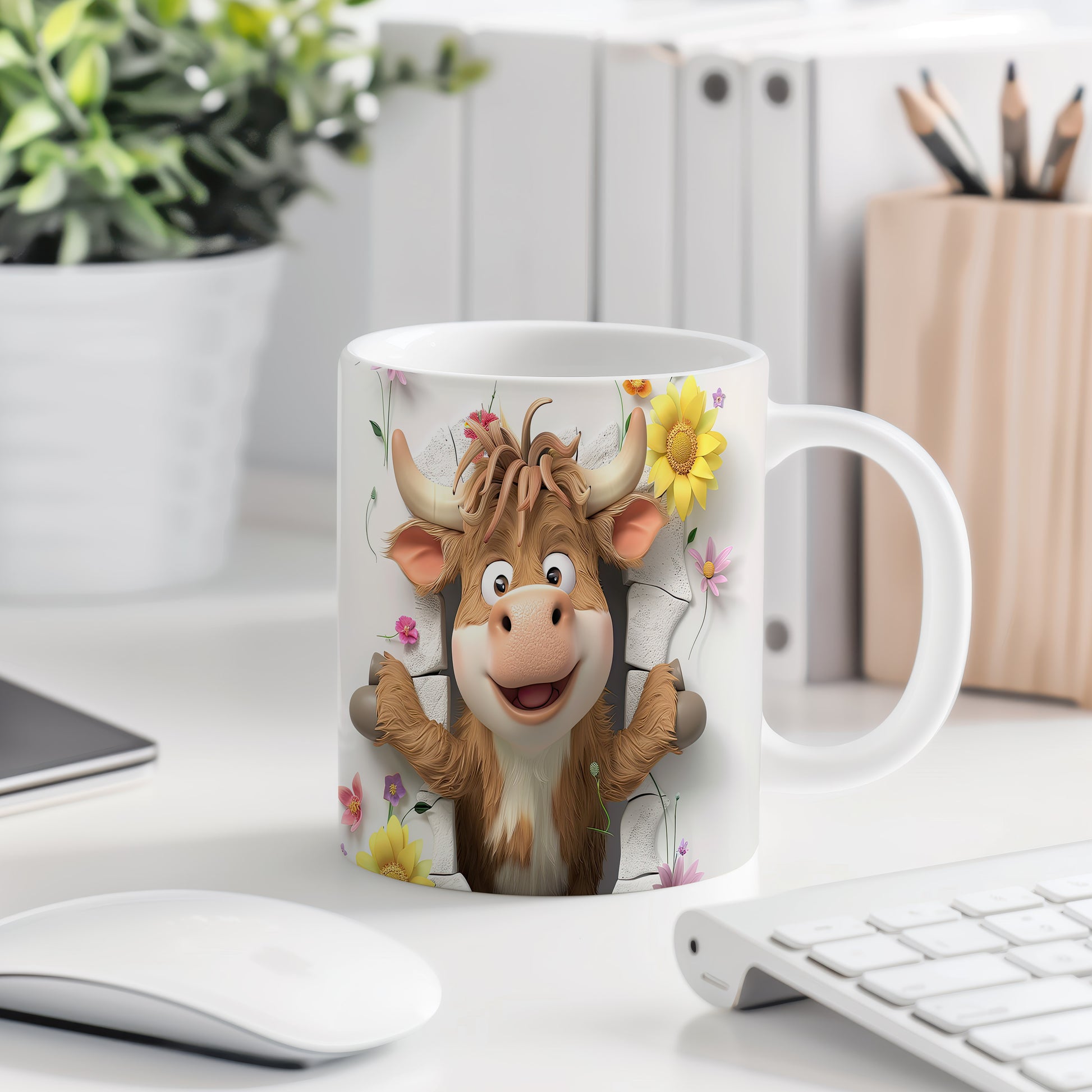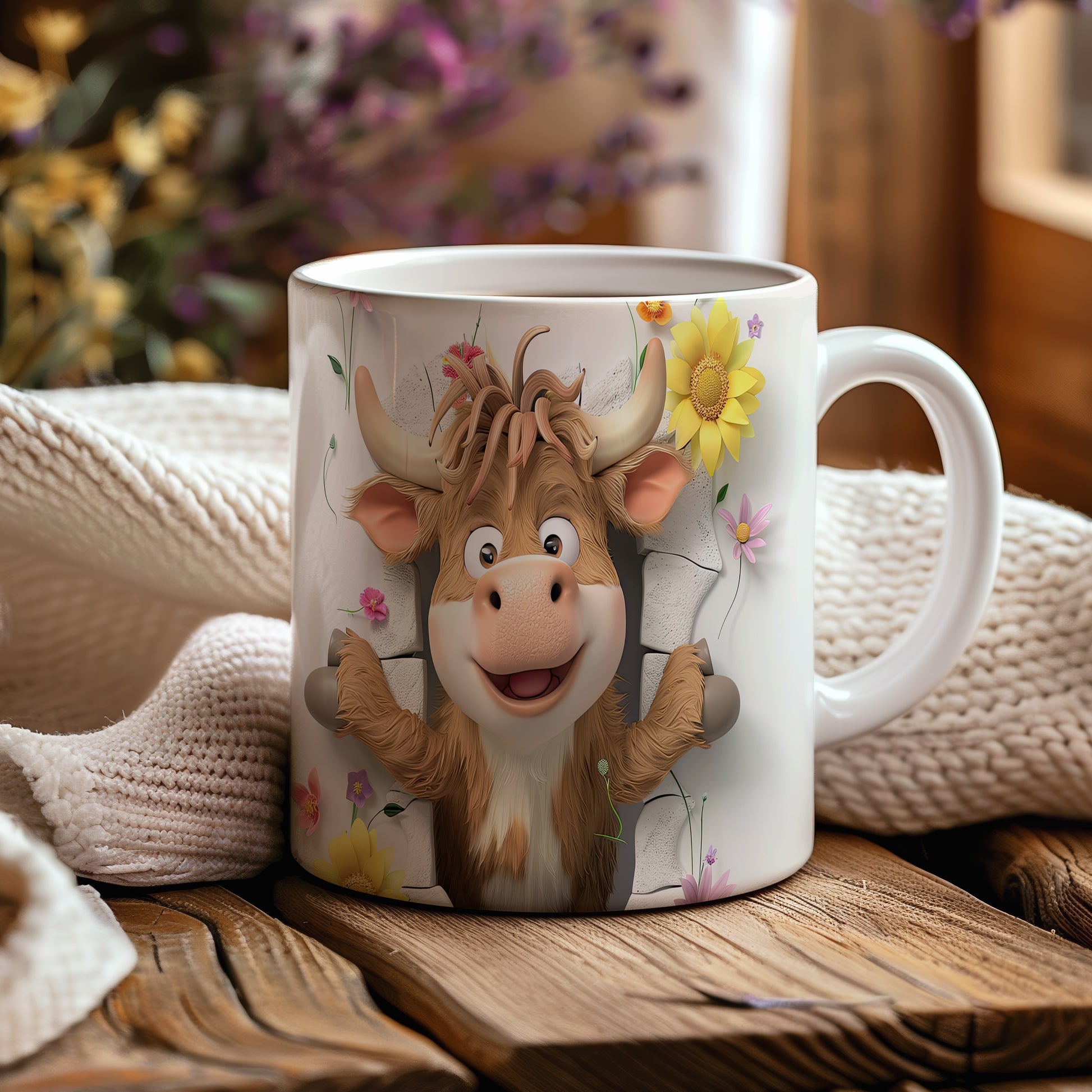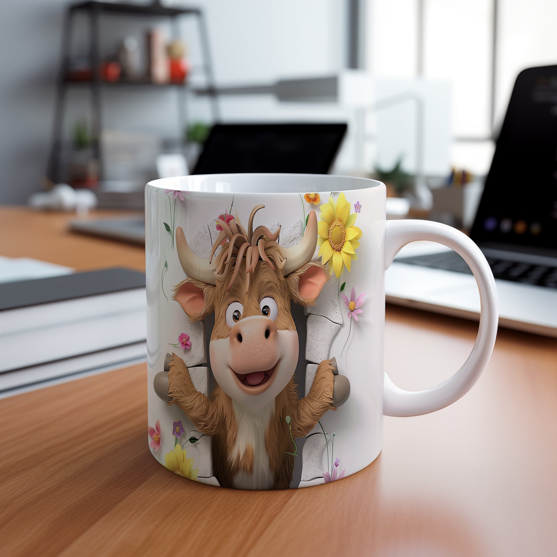 Veselý hrnek s motivem usměvavé krávy a květin je skvělým doplňkem pro každého milovníka zvířat. Tento hrnek je ideální jako dárek pro přátele nebo rodinu, kteří ocení originální design. Materiál: keramika. Objem: 330 ml. Vhodné do myčky i mikrovlnky. Používání tohoto hrnku vám přinese radost při každém doušku vašeho oblíbeného nápoje.