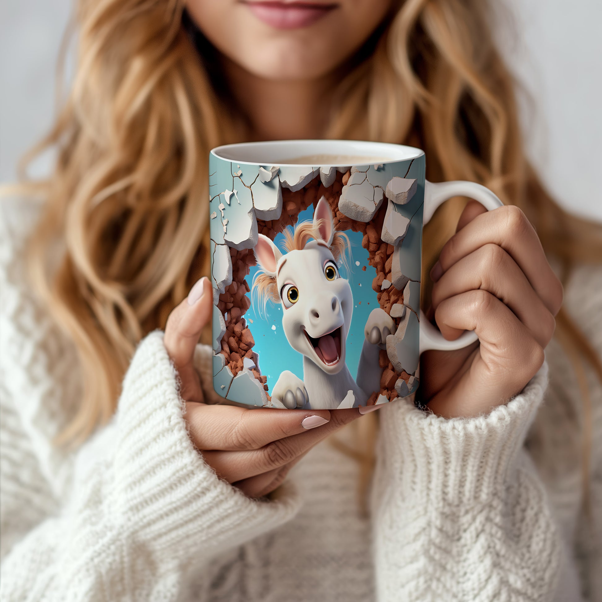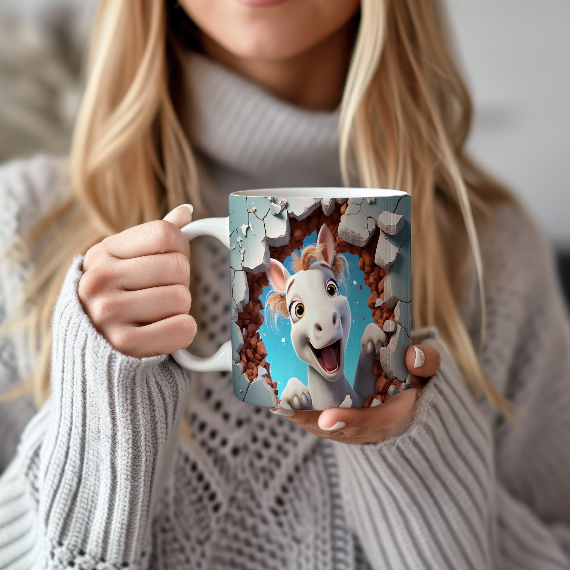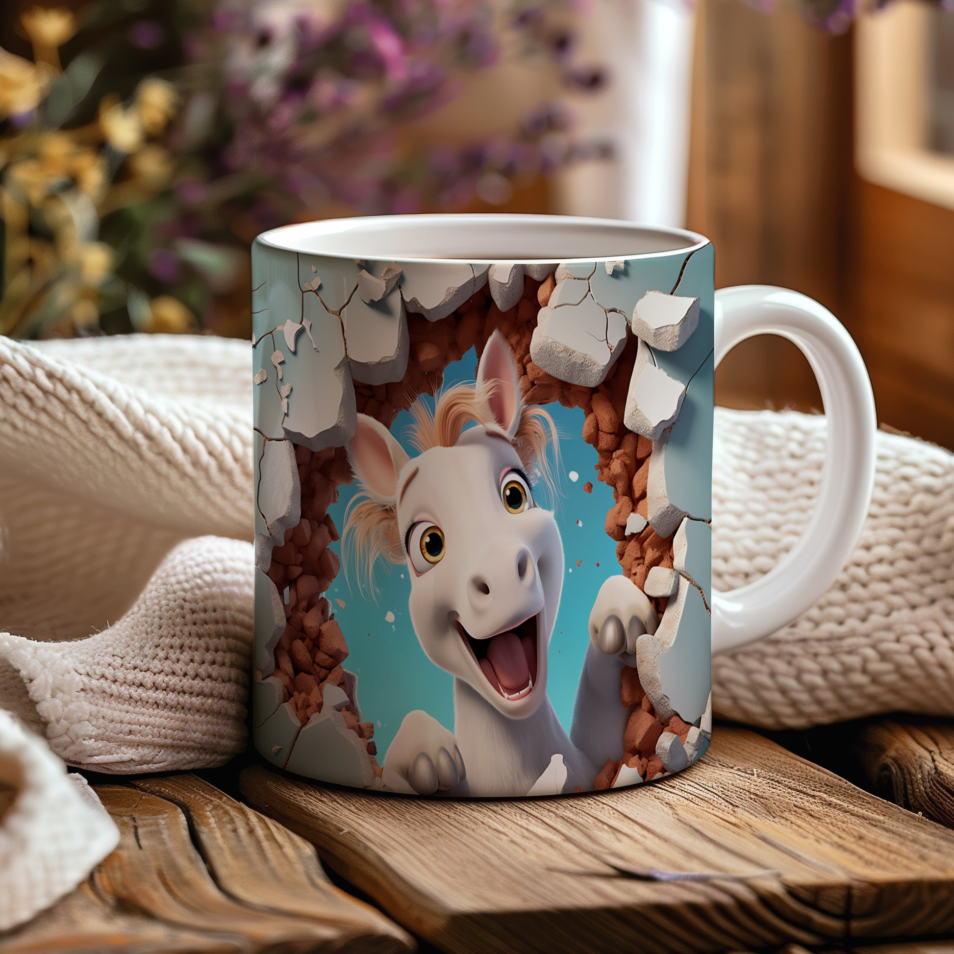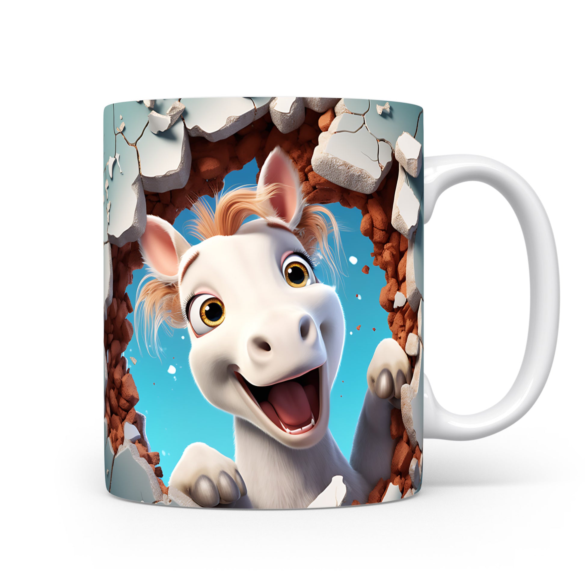 Tento hrnek zobrazuje usměvavého koníka v hravém stylu. Je ideální pro milovníky zvířat a pozitivní atmosféry, skvělý tip na dárek pro děti i dospělé. Materiál: keramika. Objem: 330 ml. Vhodné do myčky i mikrovlnky. Používání tohoto hrnku přináší radost a dobrou náladu při každém doušku.