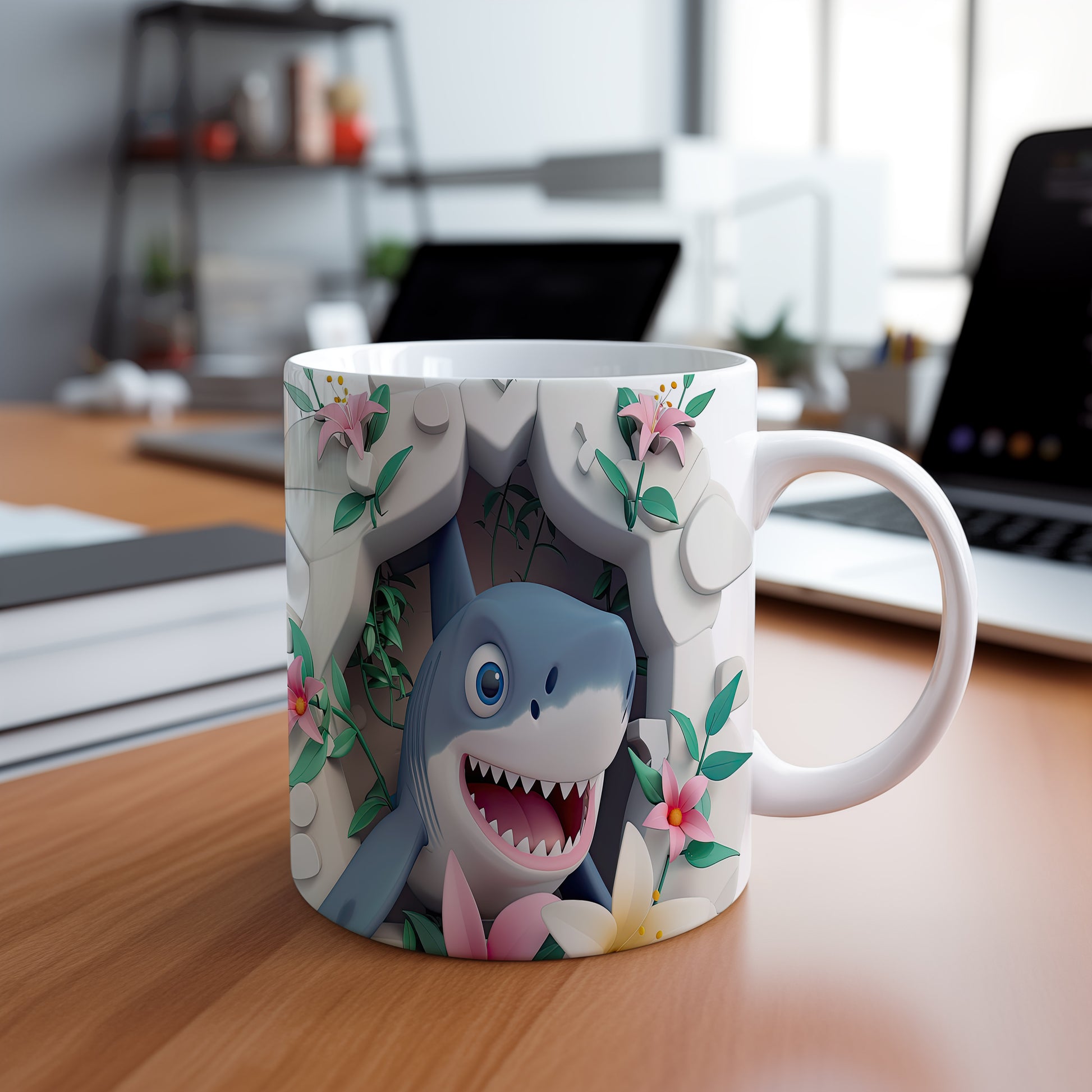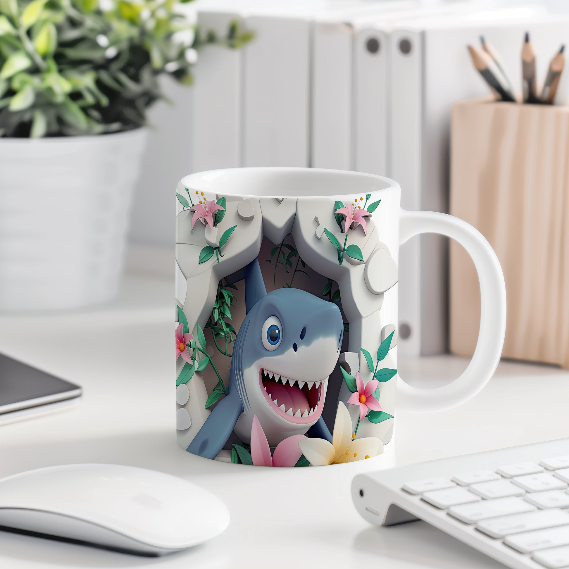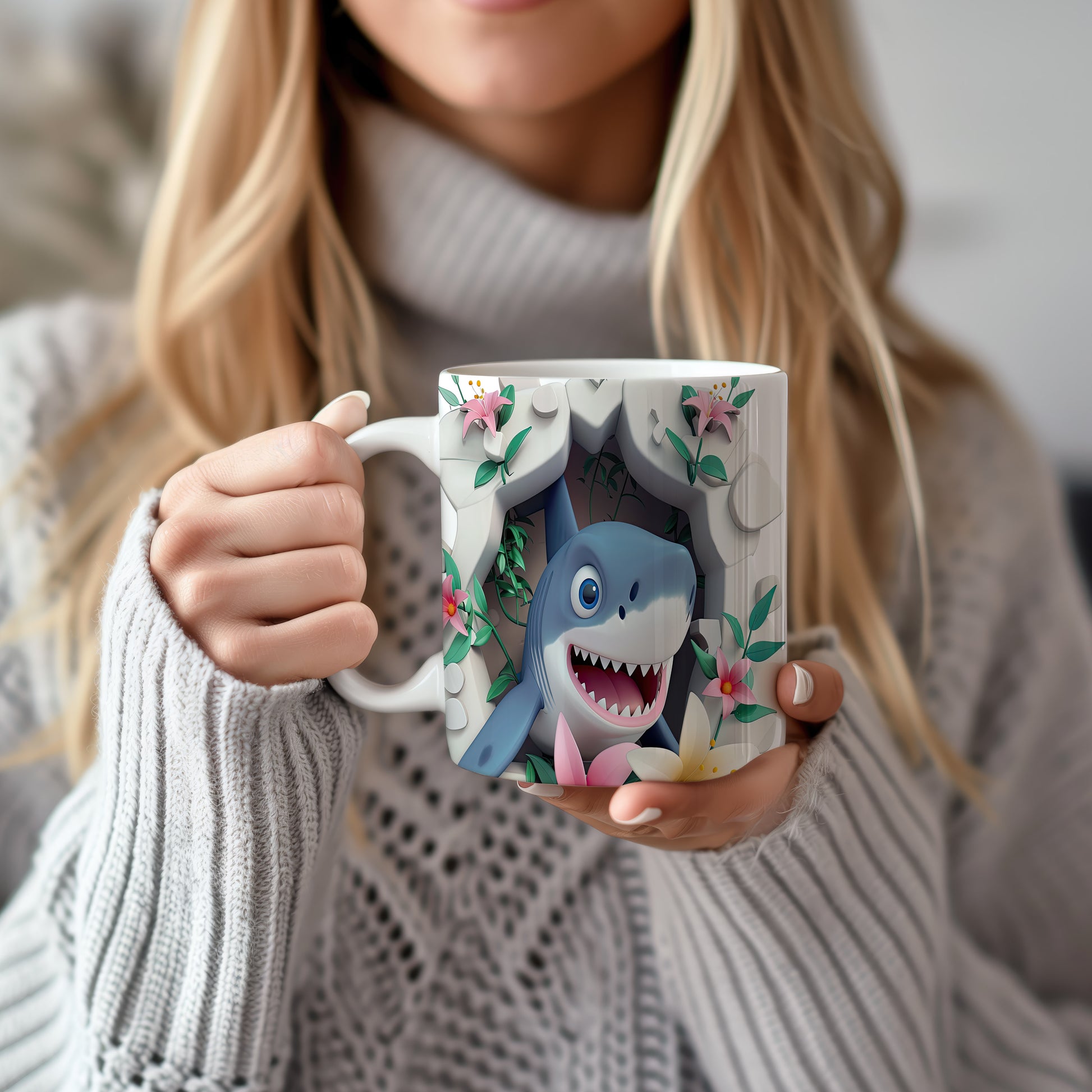 Tento keramický hrnek zobrazuje usměvavého žraloka v hravém stylu. Je ideální pro milovníky moře a skvělým dárkem pro děti i dospělé. Materiál: keramika. Objem: 330 ml. Vhodné do myčky i mikrovlnky. Užívejte si své oblíbené nápoje s úsměvem.