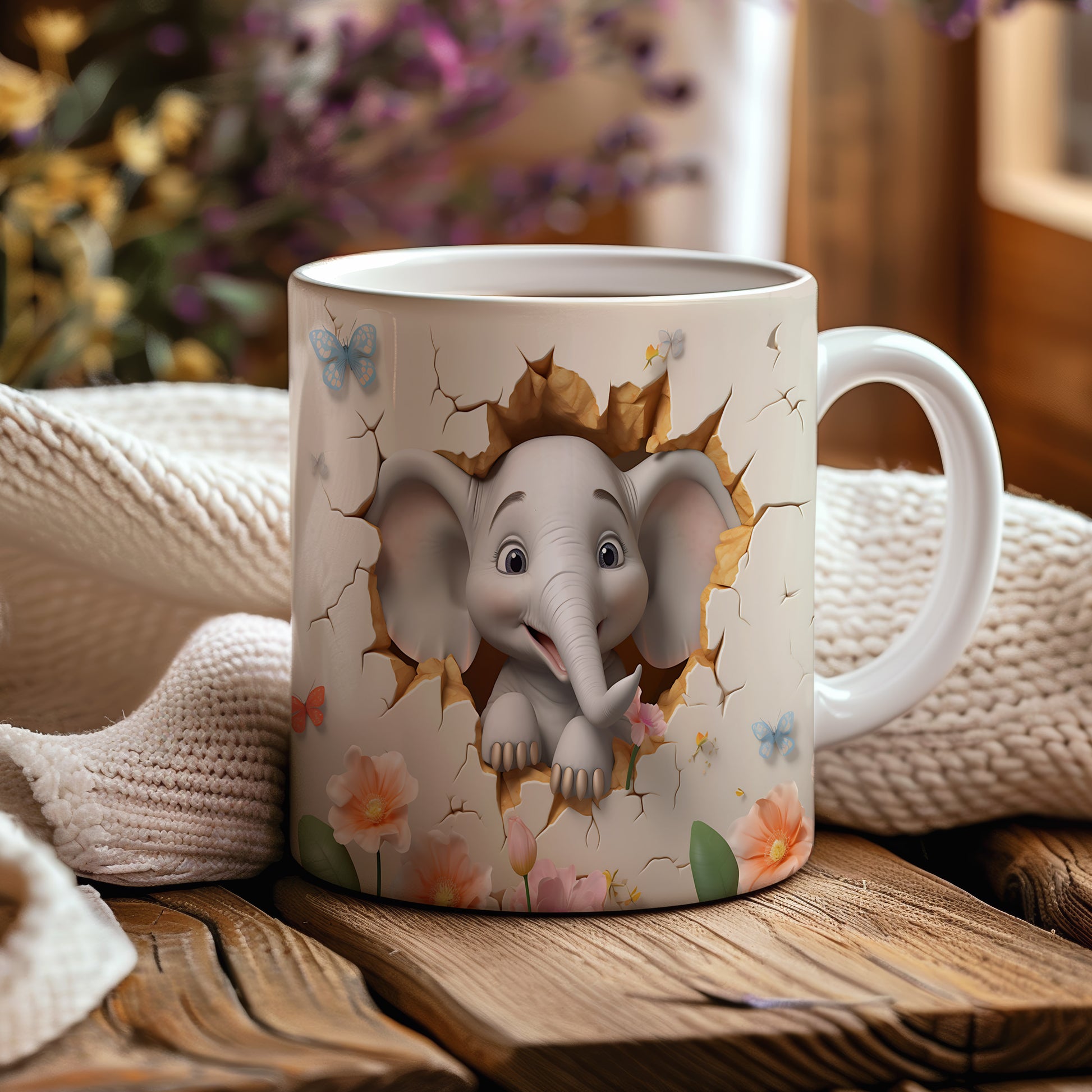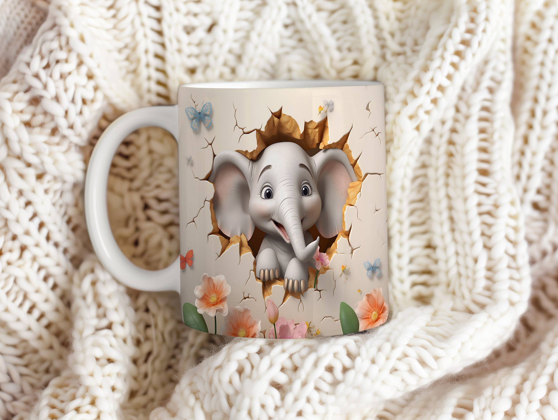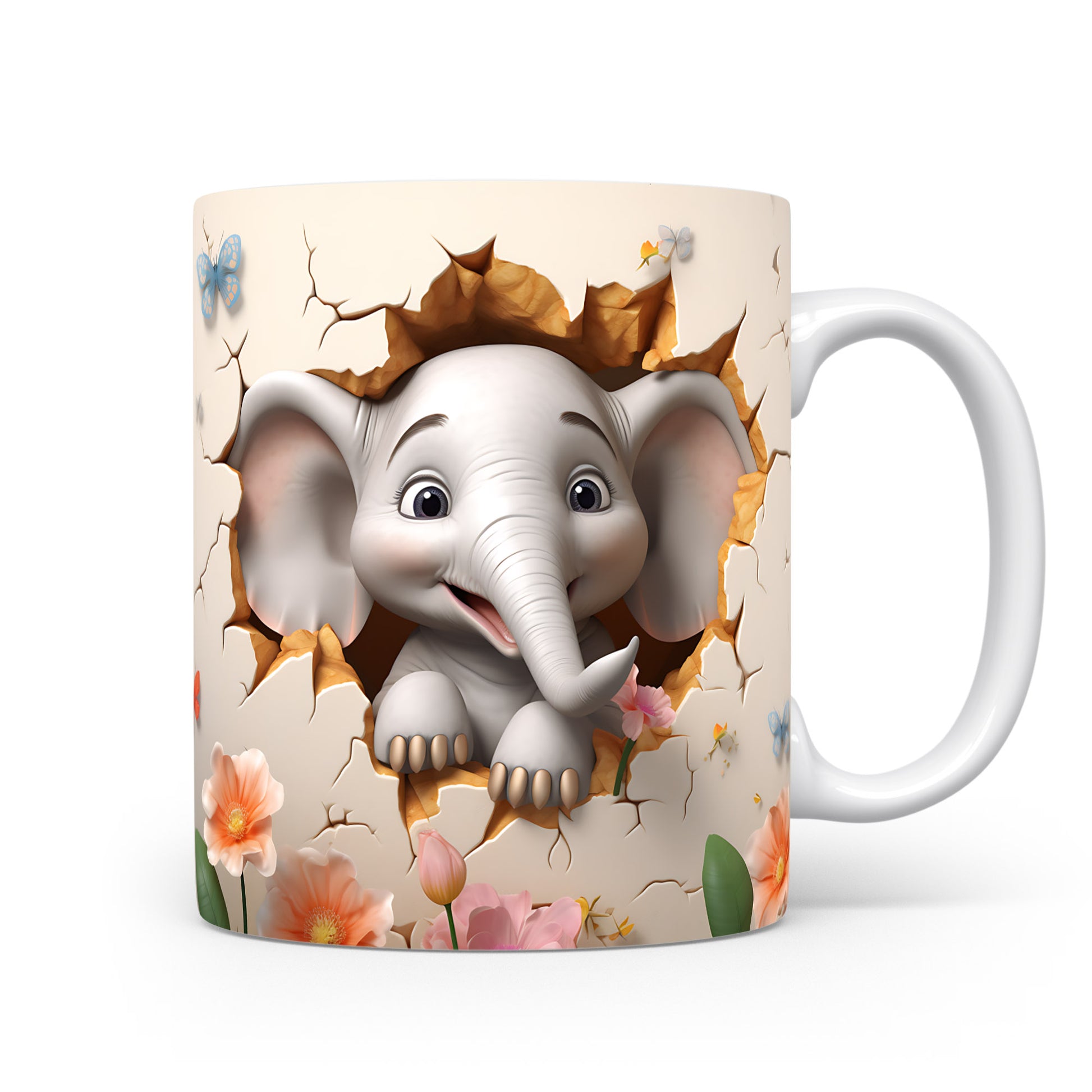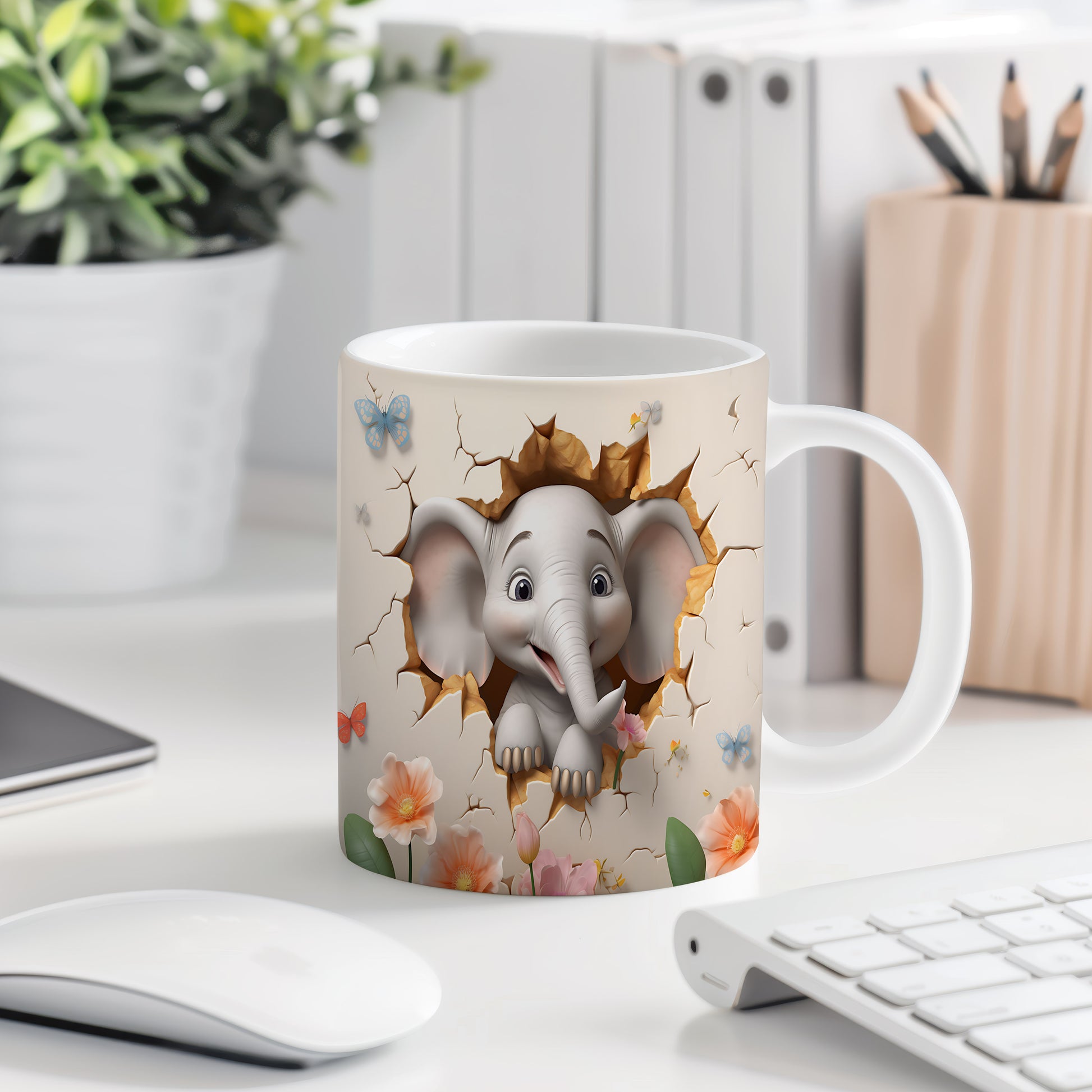 Tento hrnek zobrazuje roztomilého usmívajícího se slona obklopeného barevnými květinami. Je ideální pro všechny milovníky zvířat a přírody, skvělý tip na dárek pro děti i dospělé. Materiál: keramika. Objem: 330 ml. Vhodné do myčky i mikrovlnky. Užijte si každodenní pití s tímto veselým hrnkem.