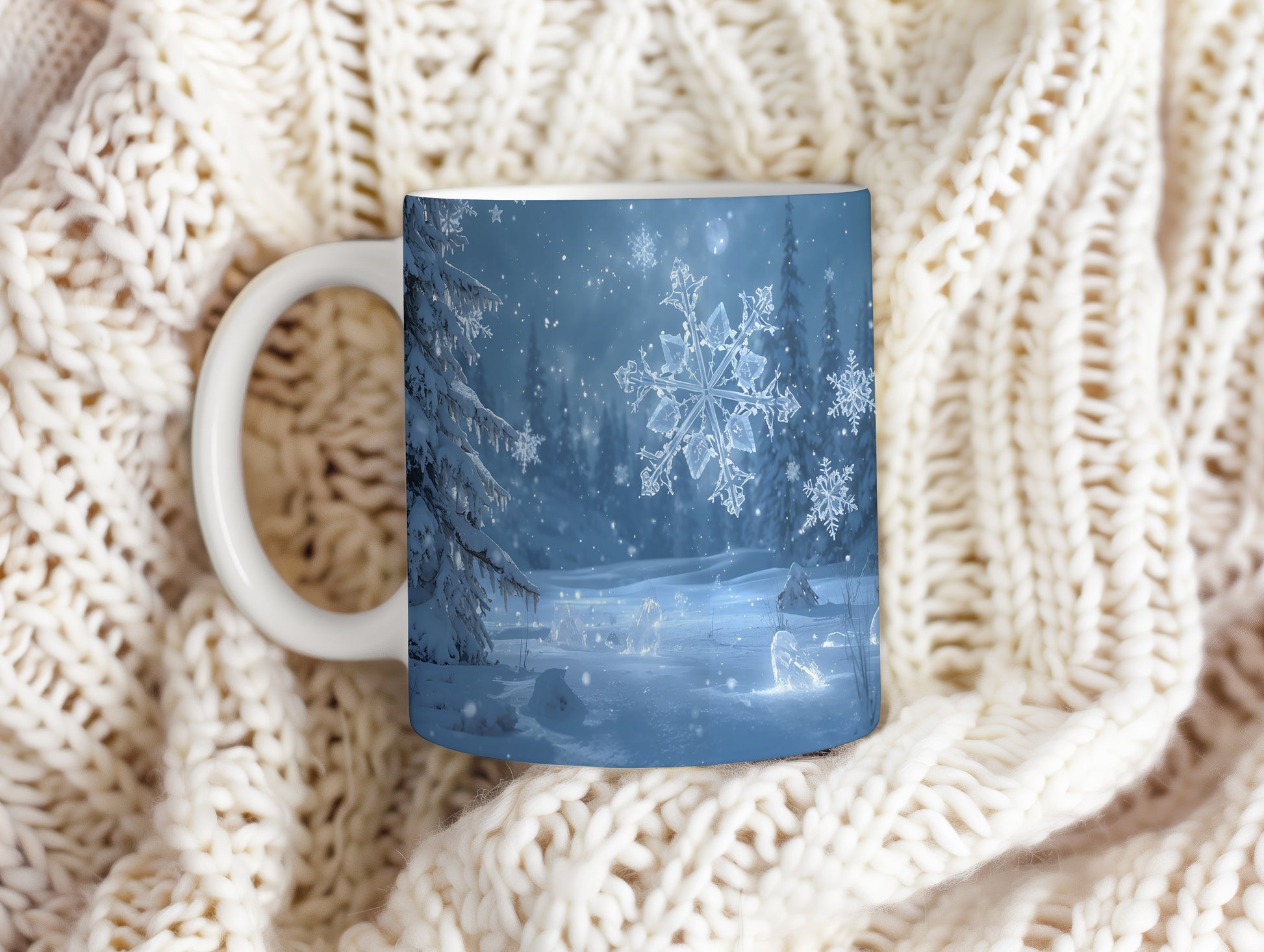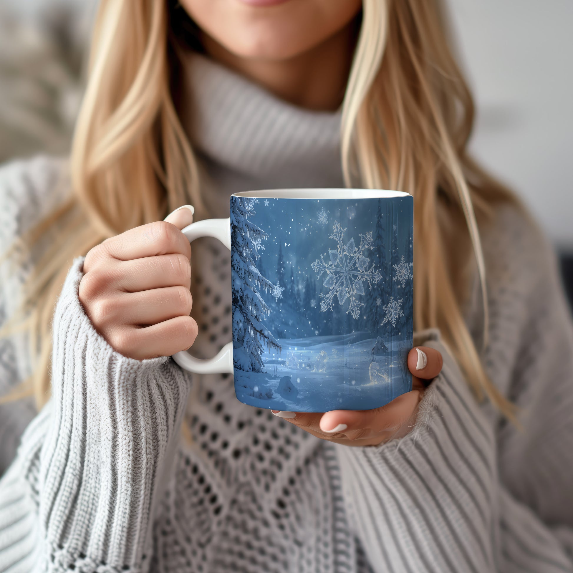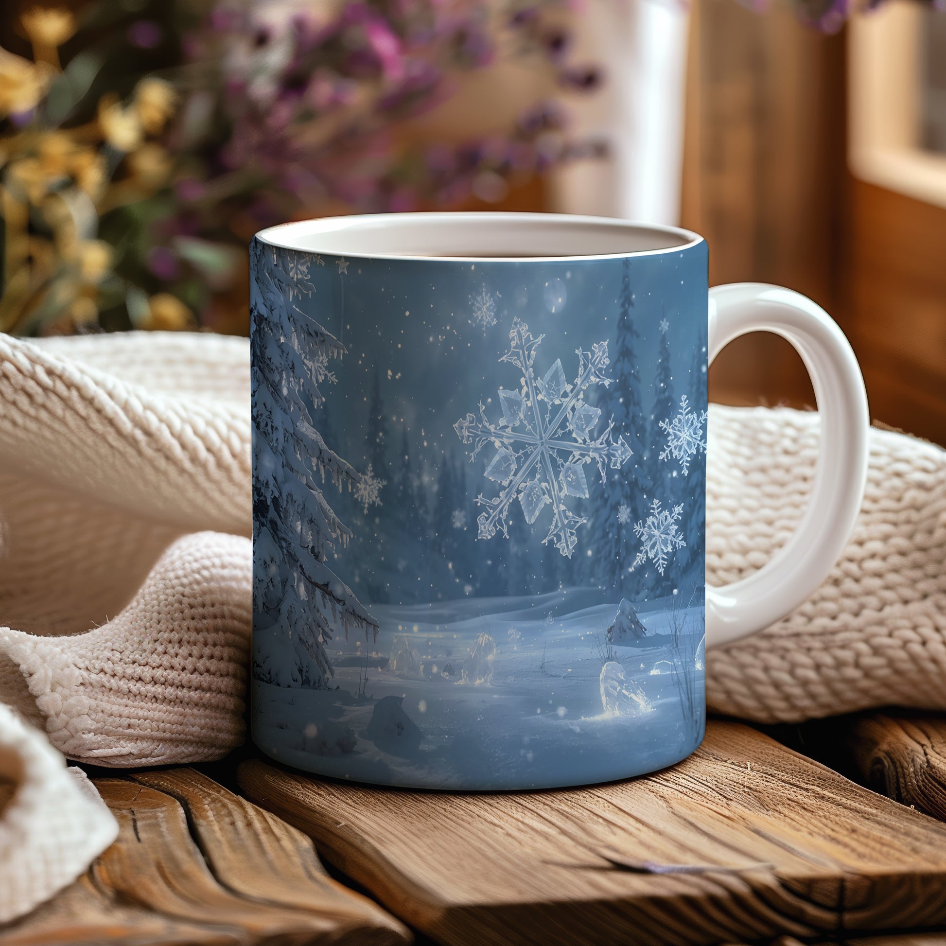 Hrnek s vánočním motivem – ledové vločky v lese
