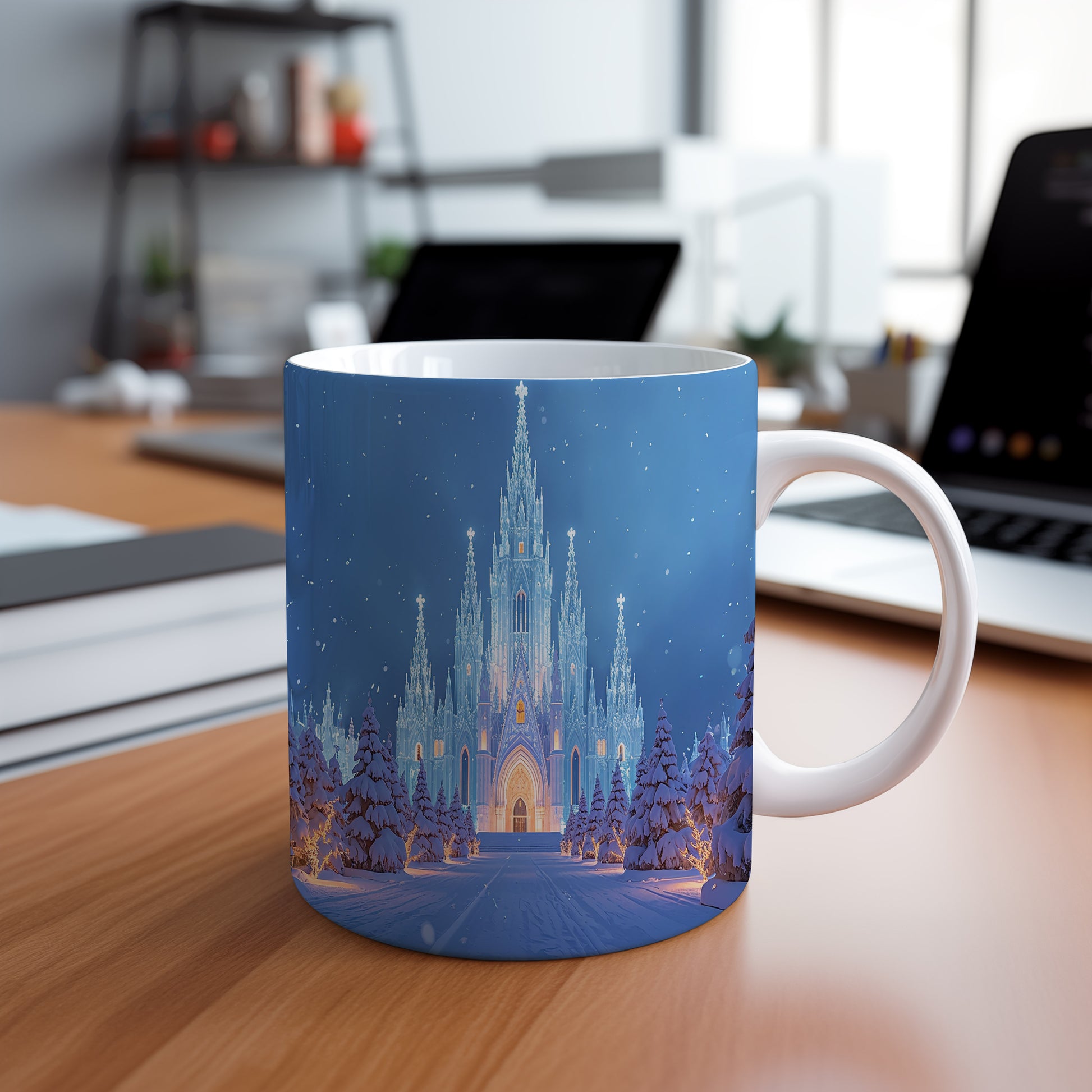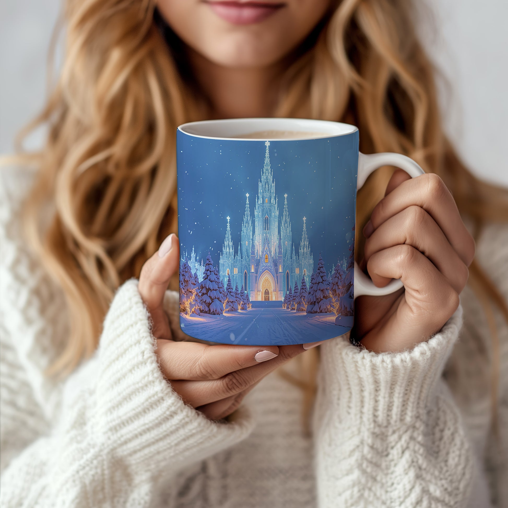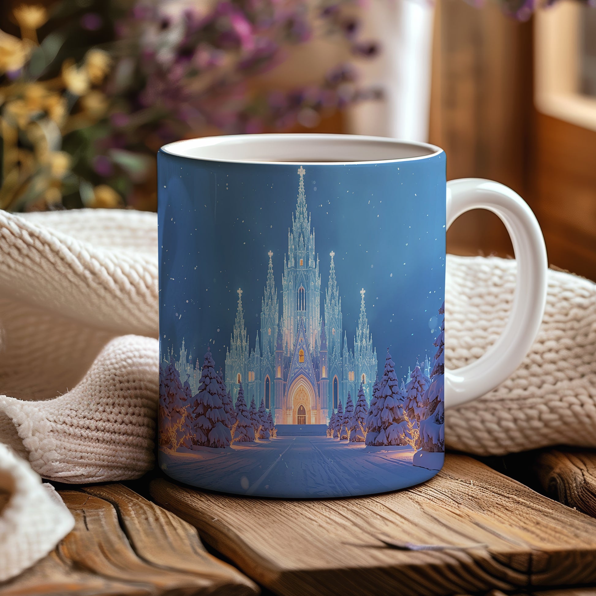 Na hrnku se rozprostírá majestátní ledový chrám obklopený zasněženými stromy pod hvězdnou oblohou. Hrnek 330ml – vhodný do myčky i mikrovlnky.