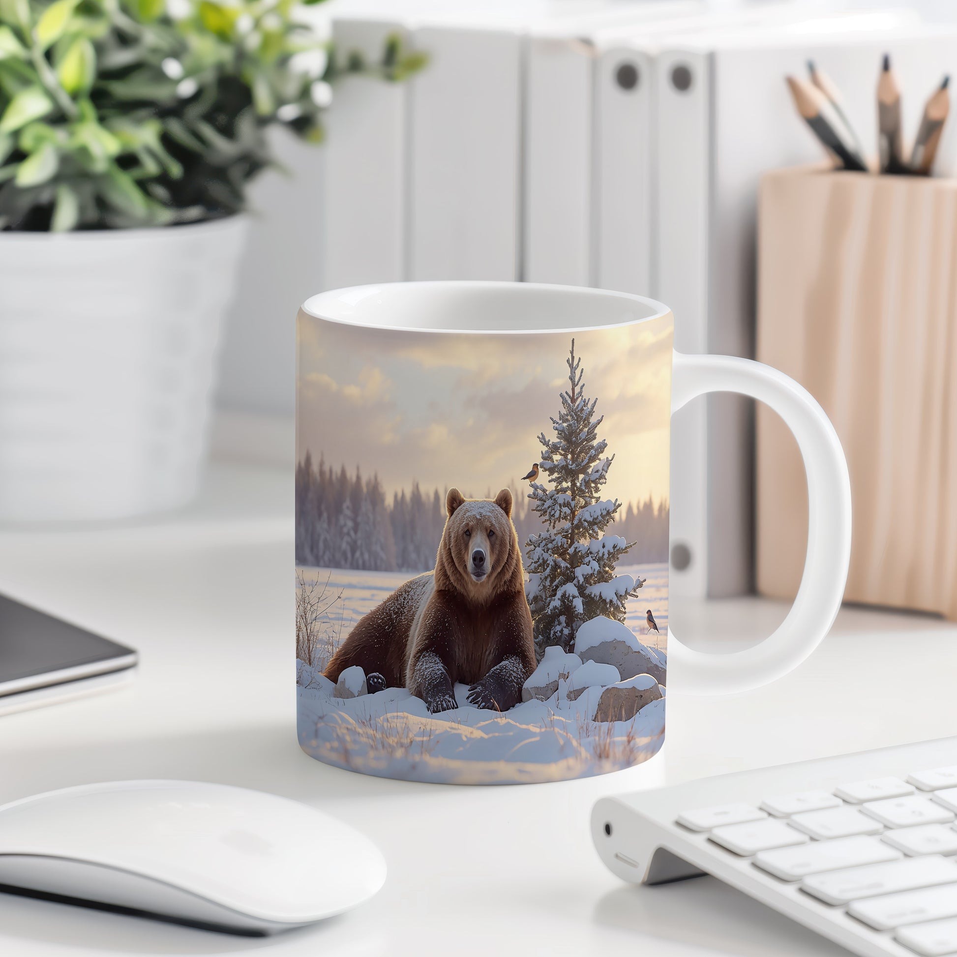 Na hrnku je klidná zimní scéna s medvědem odpočívajícím ve sněhu a zasněženým stromkem. Jemné pastelové barvy dotvářejí poklidnou atmosféru zimního lesa. Hrnek 330ml – vhodný do myčky i mikrovlnky.