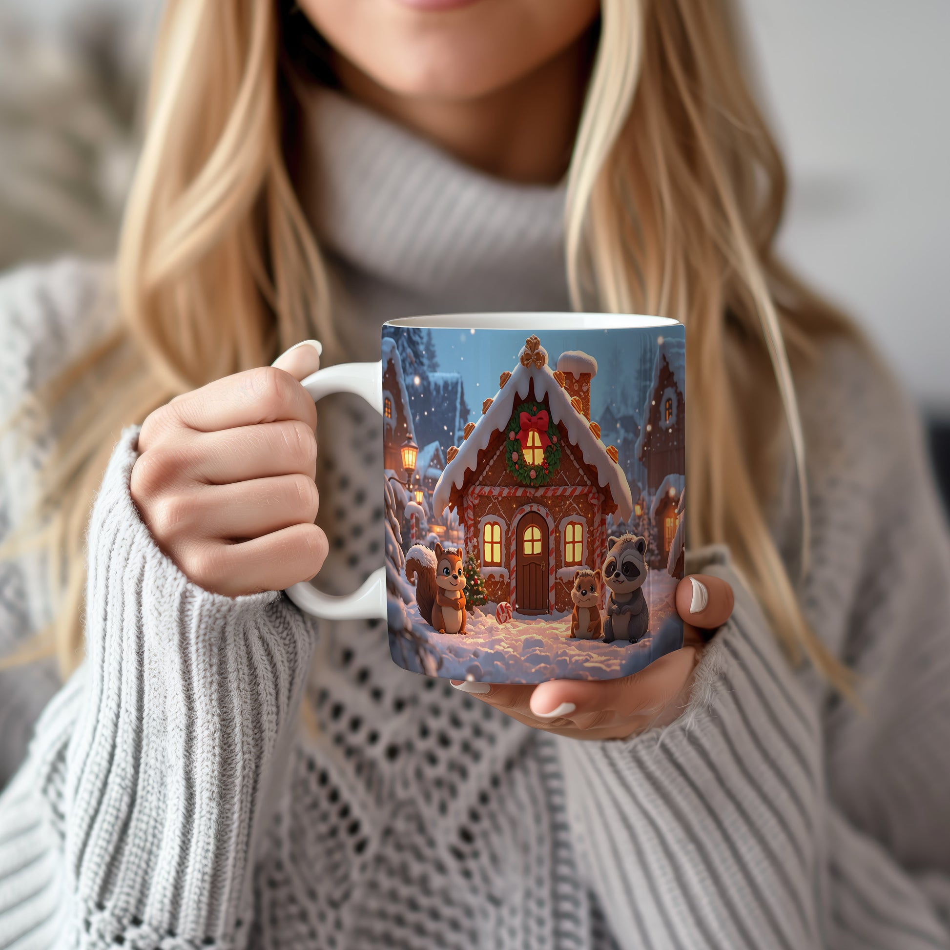 Na hrnku se vyjímá perníková chaloupka obklopená sněhem a roztomilými zvířátky. Atmosféru doplňuje jemné osvětlení a padající sněhové vločky. Hrnek 330ml – vhodný do myčky i mikrovlnky.