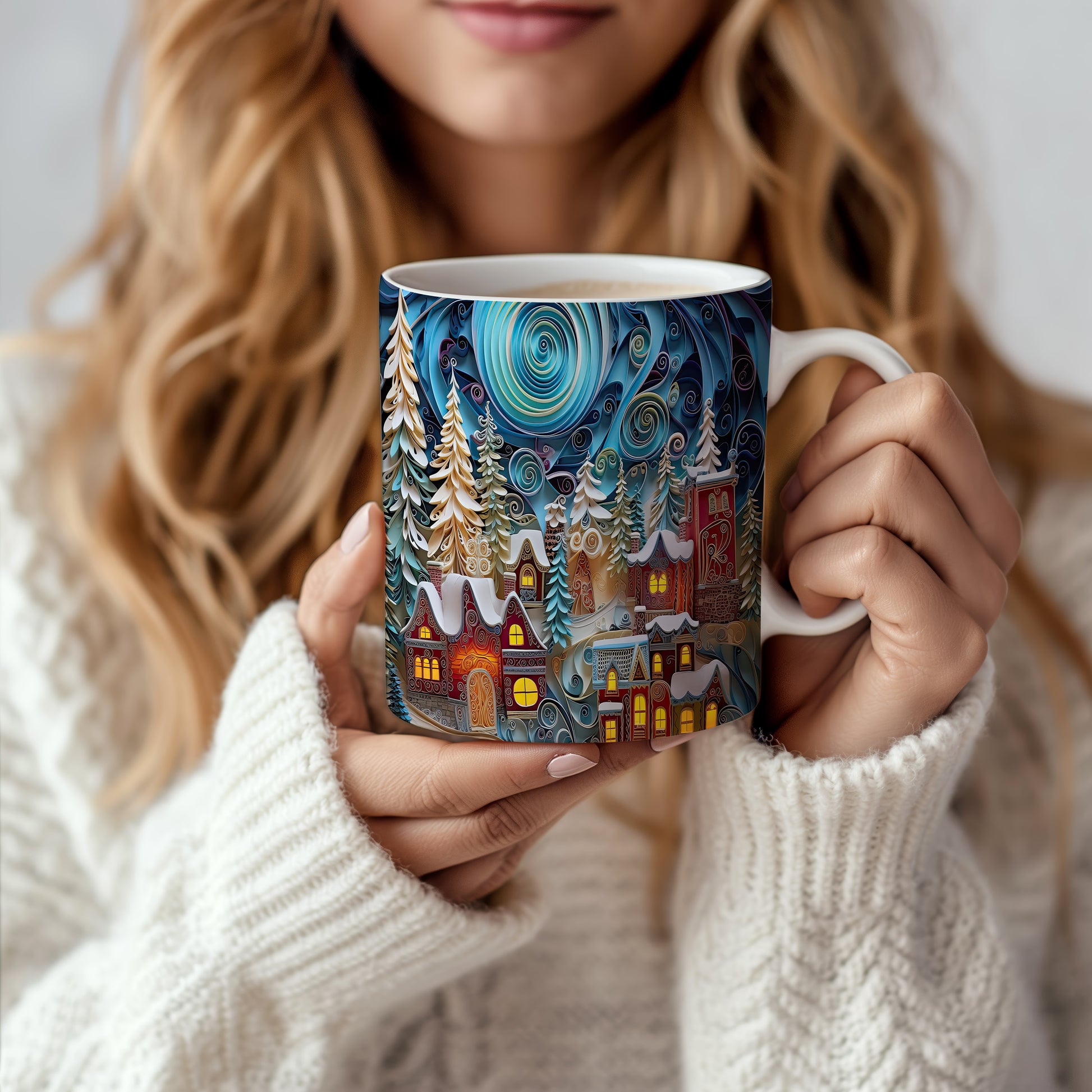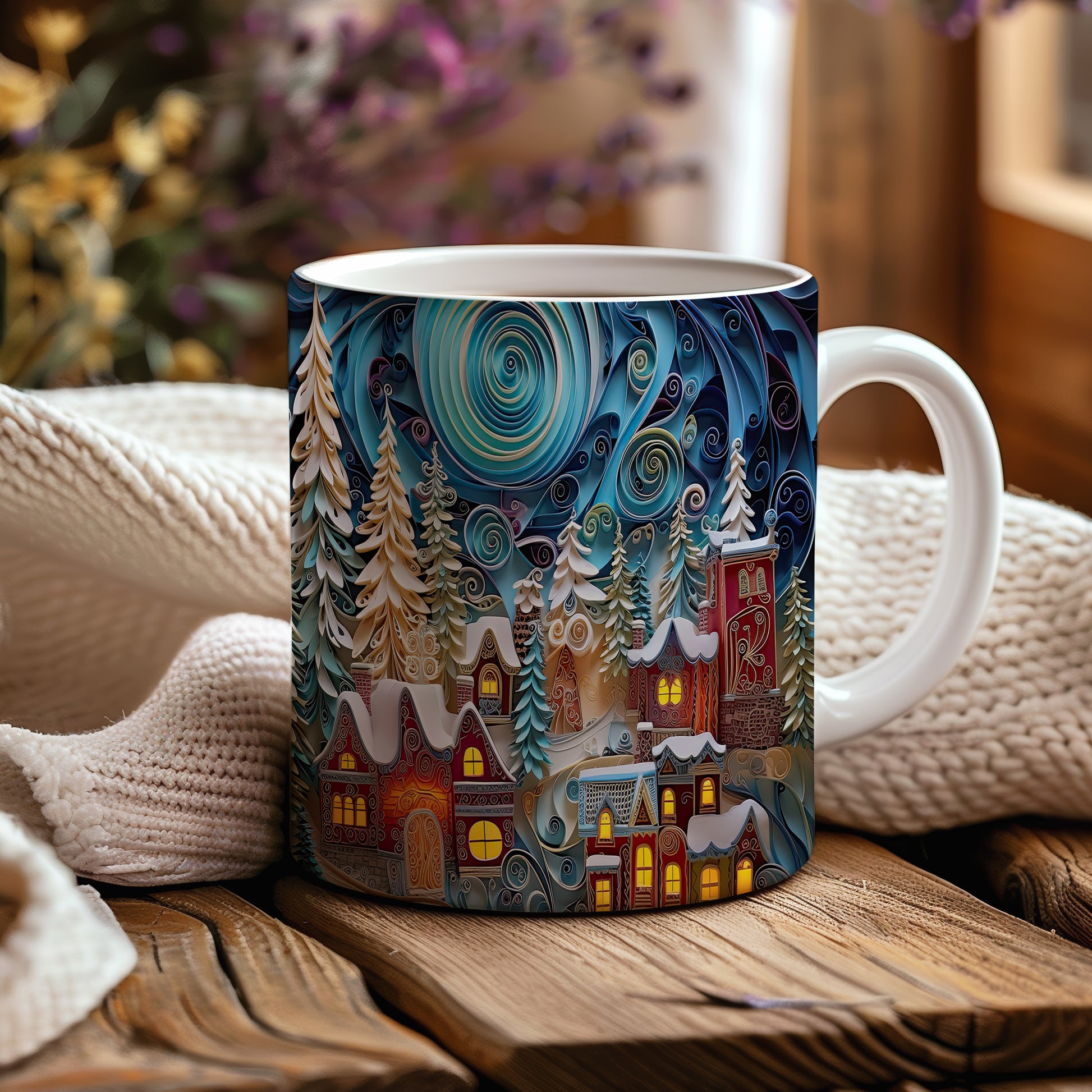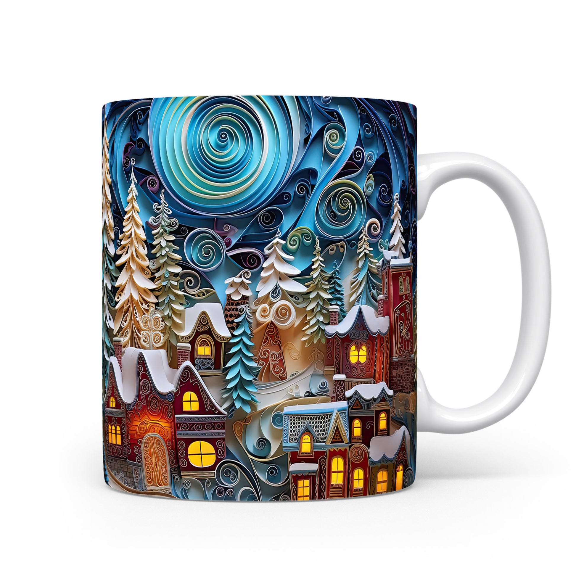 Tento hrnek s vánočním motivem zasněžené vesnice přináší kouzlo zimních svátků. Je ideální pro milovníky teplých nápojů a skvělým dárkem pro rodinu či přátele. Materiál: keramika. Objem: 330 ml. Vhodné do myčky i mikrovlnky. Užívejte si příjemné chvíle s oblíbeným nápojem v tomto stylovém hrnku.