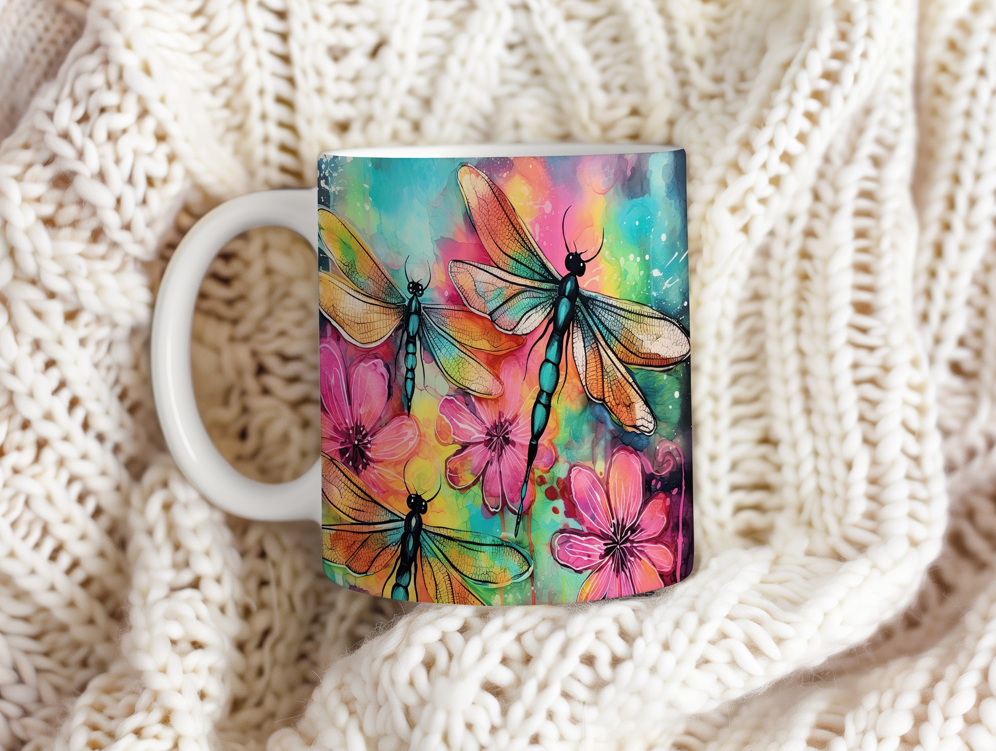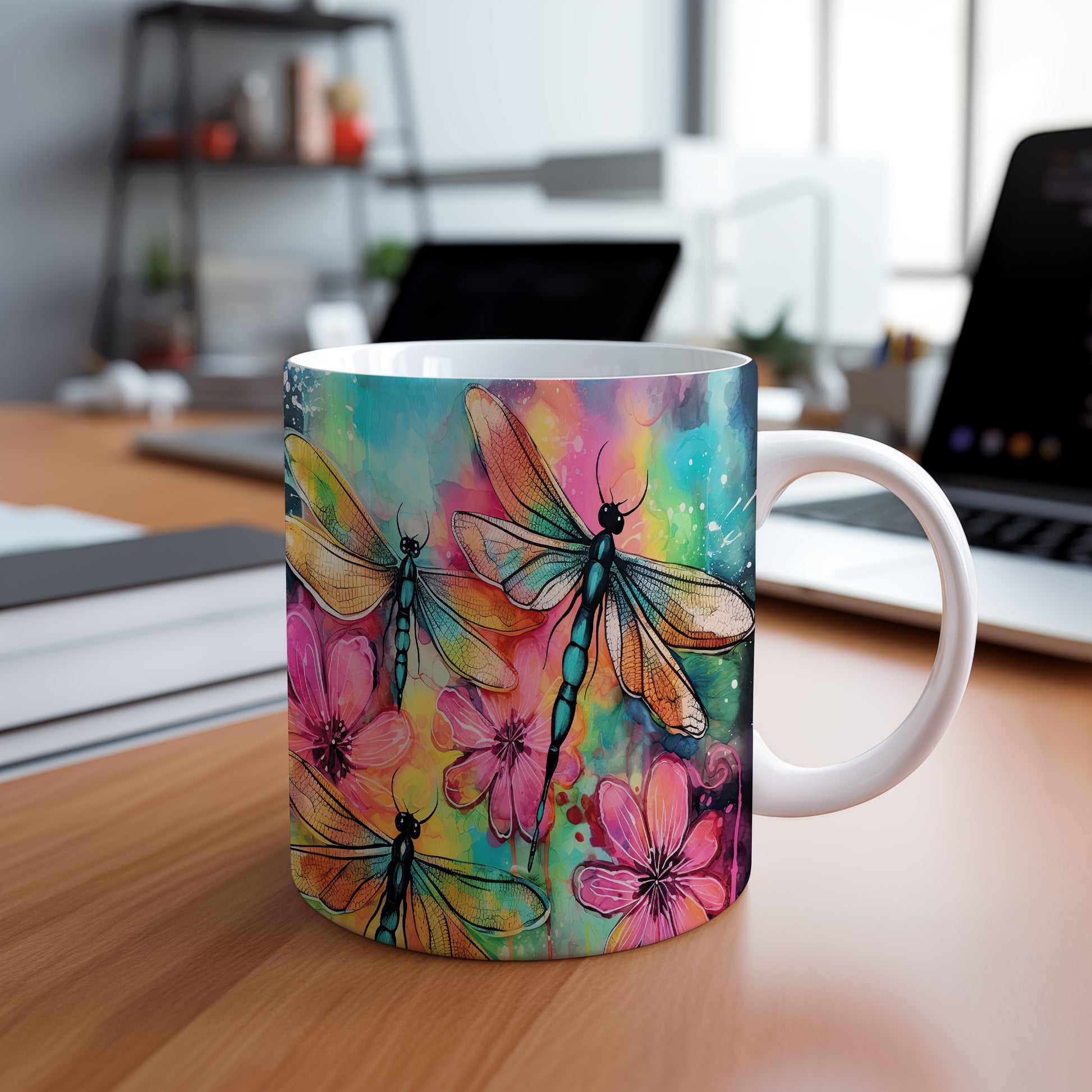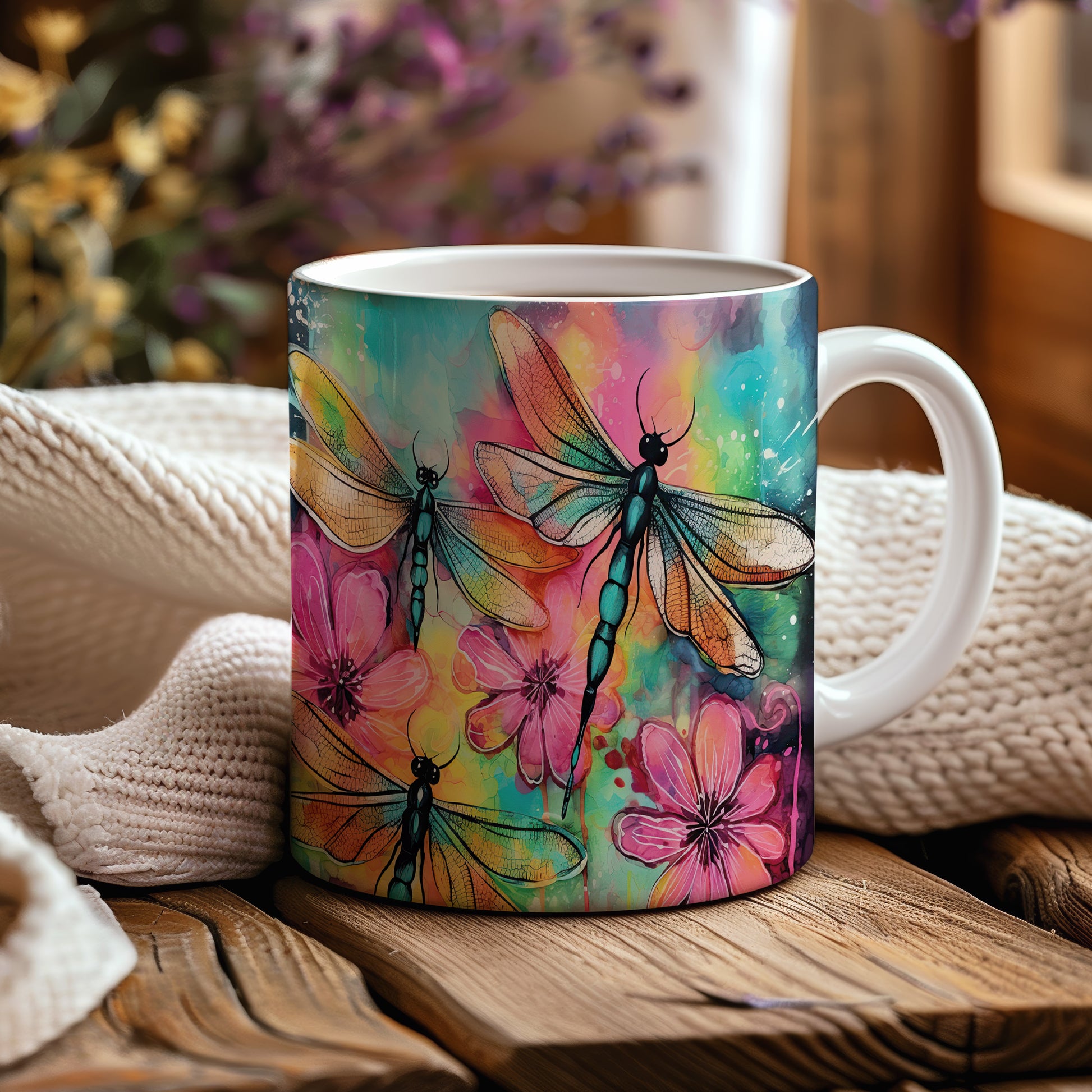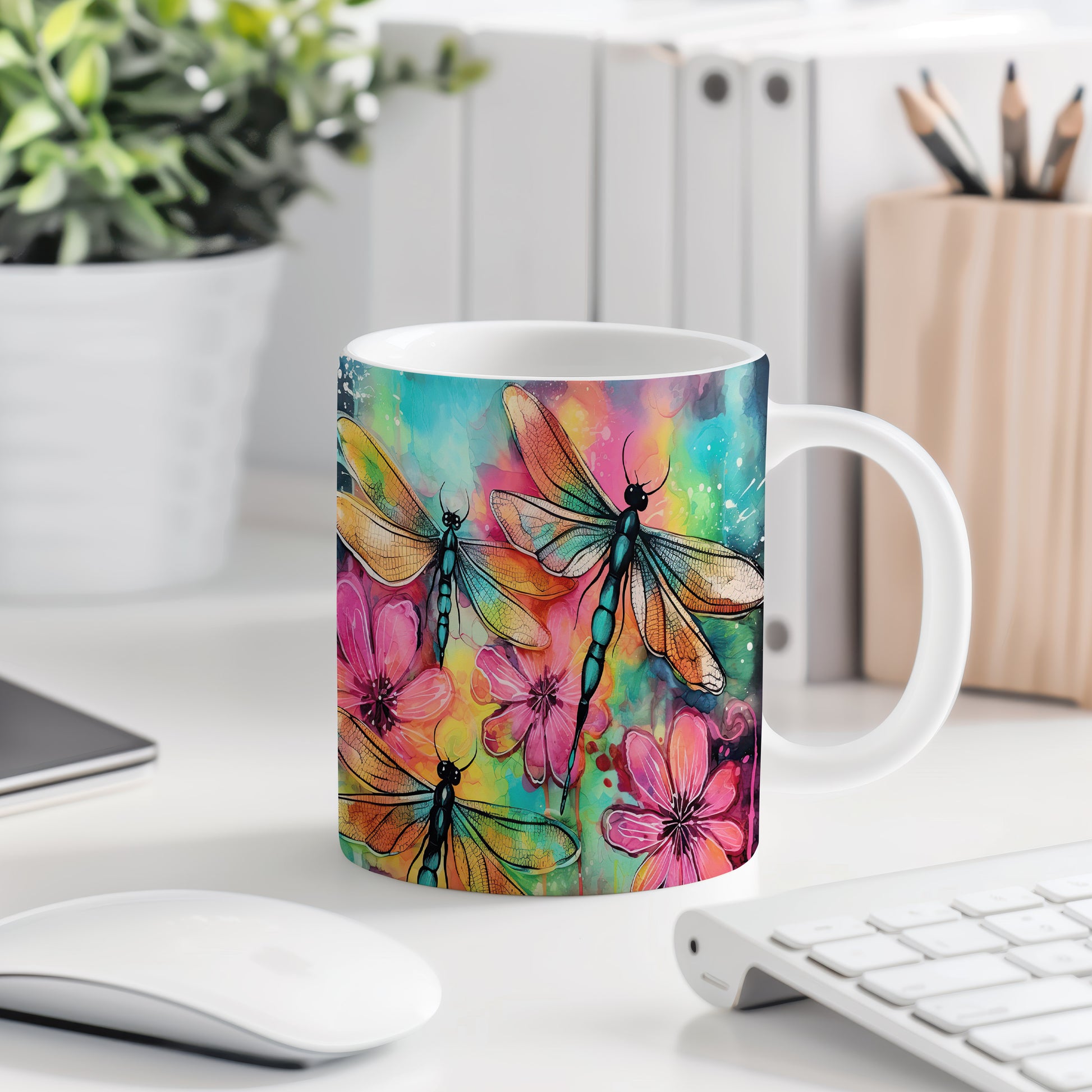 Tento hrnek s motivem vážek a barevných květin přináší do vašeho dne kousek přírody a radosti. Je ideální pro milovníky přírody a skvělým dárkem pro přátele či rodinu. Materiál: keramika. Objem: 330 ml. Vhodné do myčky i mikrovlnky. Užijte si každé sousto s tímto stylovým hrnkem, který vám zpříjemní chvíle s oblíbeným nápojem.