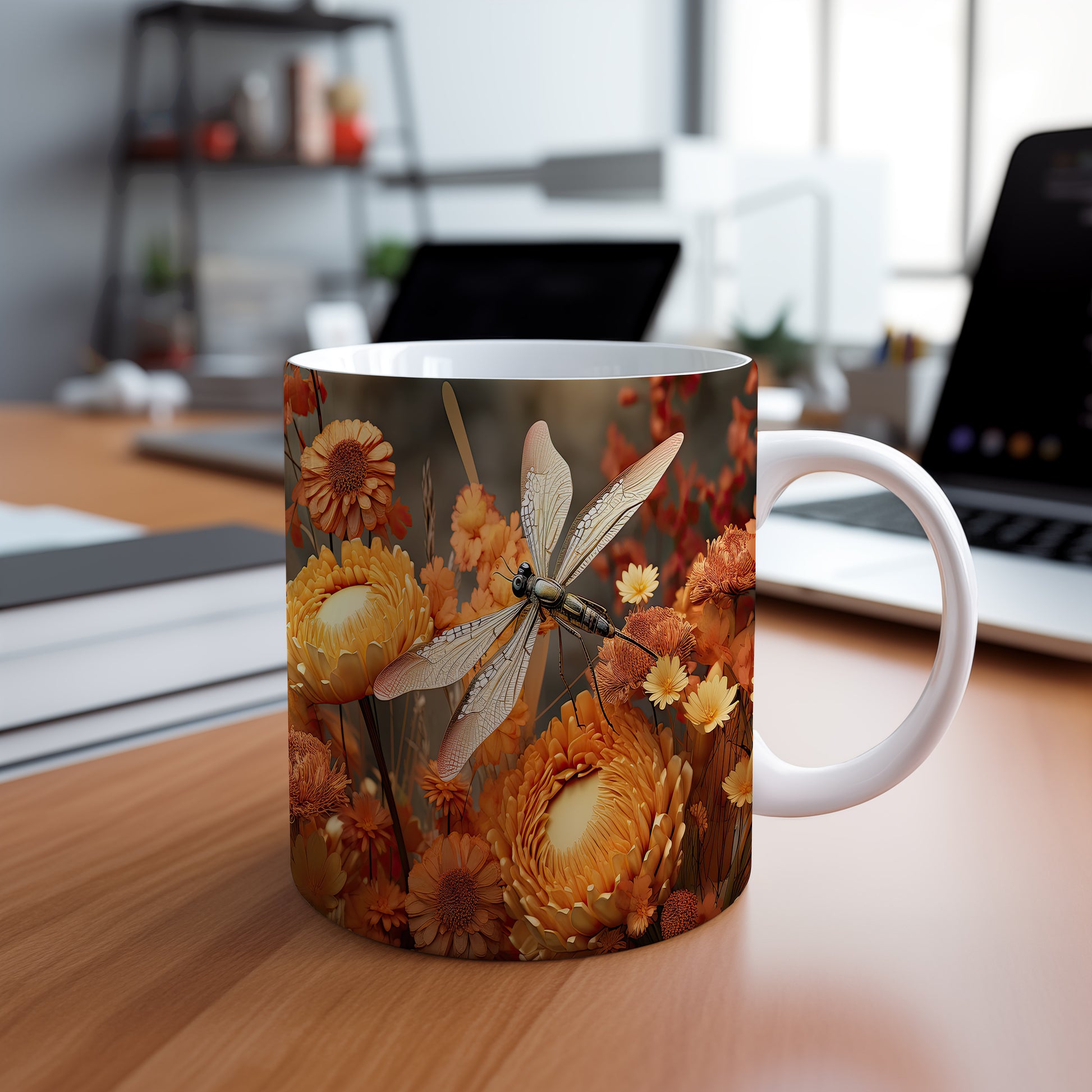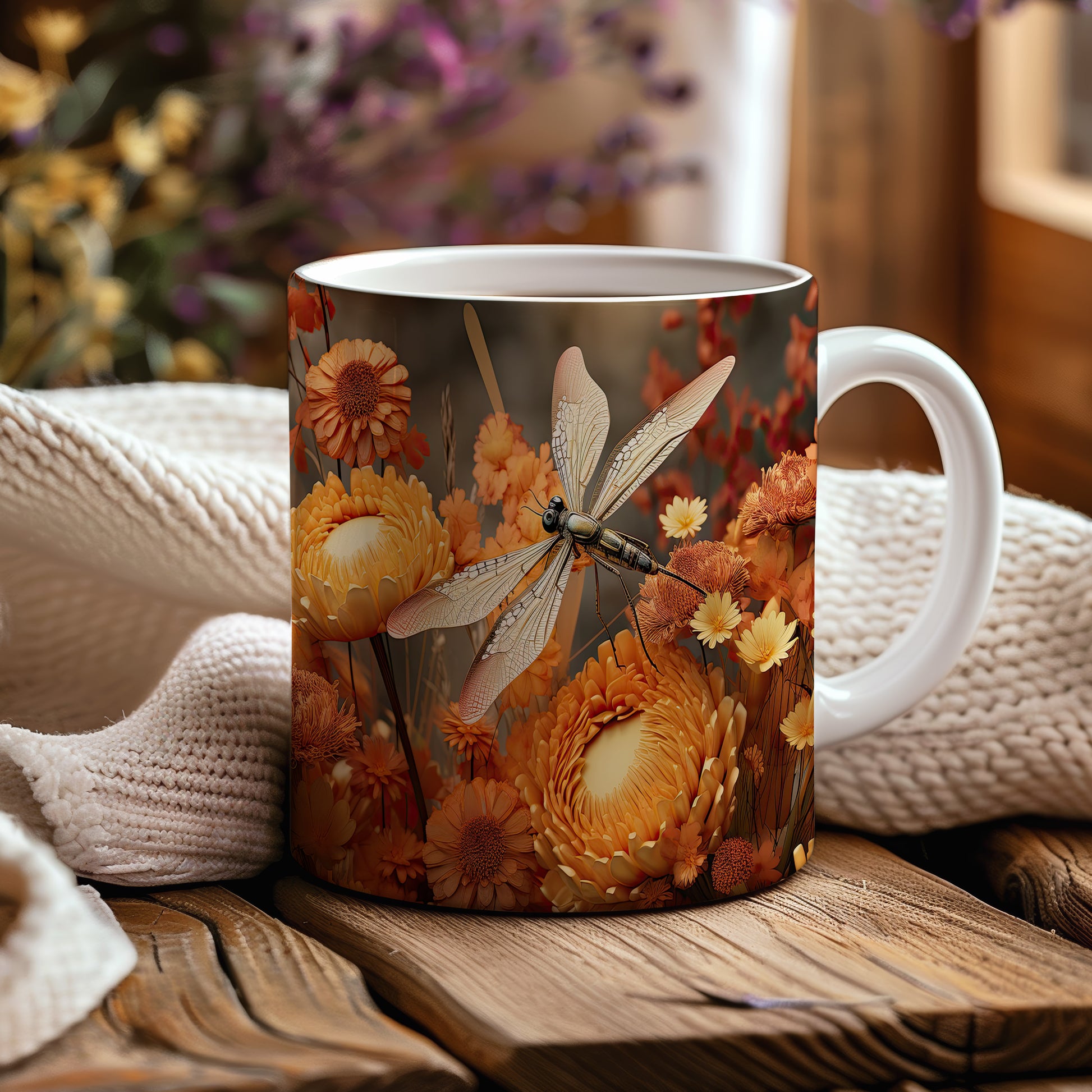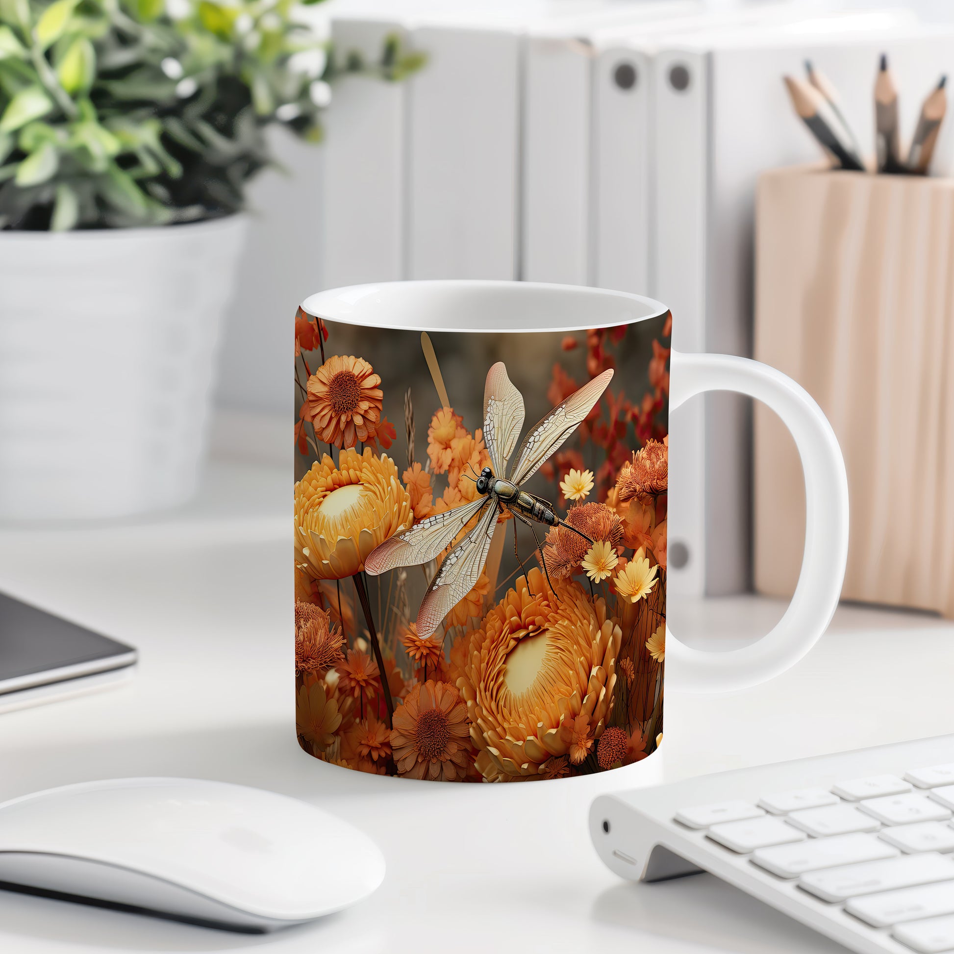 Hrnek s motivem vážky a květin je krásným kouskem pro milovníky přírody a květin. Tento hrnek je skvělým dárkem pro přátele nebo rodinu, kteří ocení přírodní krásy. Materiál: keramika. Objem: 330 ml. Vhodné do myčky i mikrovlnky. Používání tohoto hrnku přináší radost z každého doušku.
