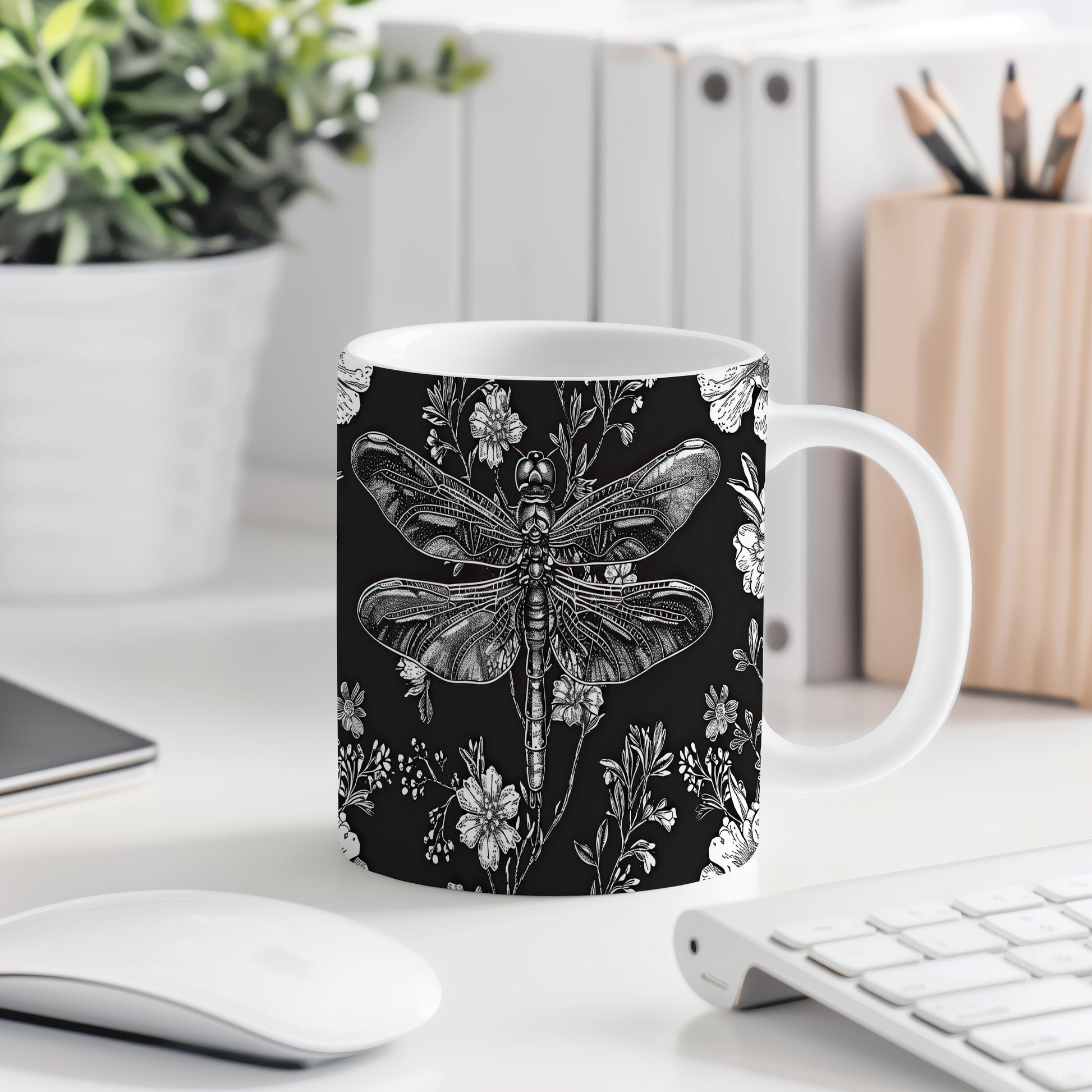 Tento elegantní hrnek s motivem vážky a květin je ideální volbou pro milovníky přírody a jemného designu. Skvěle se hodí jako dárek pro přátele nebo rodinu, kteří ocení krásu a detailní zpracování. Materiál: keramika. Objem: 330 ml. Vhodné do myčky i mikrovlnky. Díky svému stylovému vzhledu přináší do každodenního pití špetku elegance.