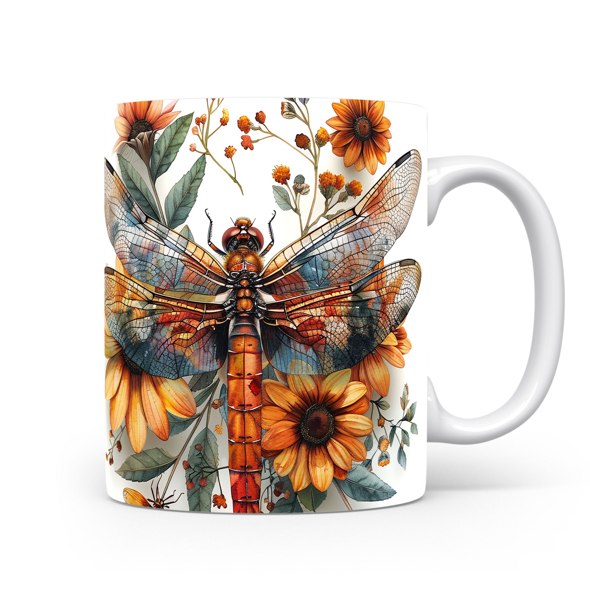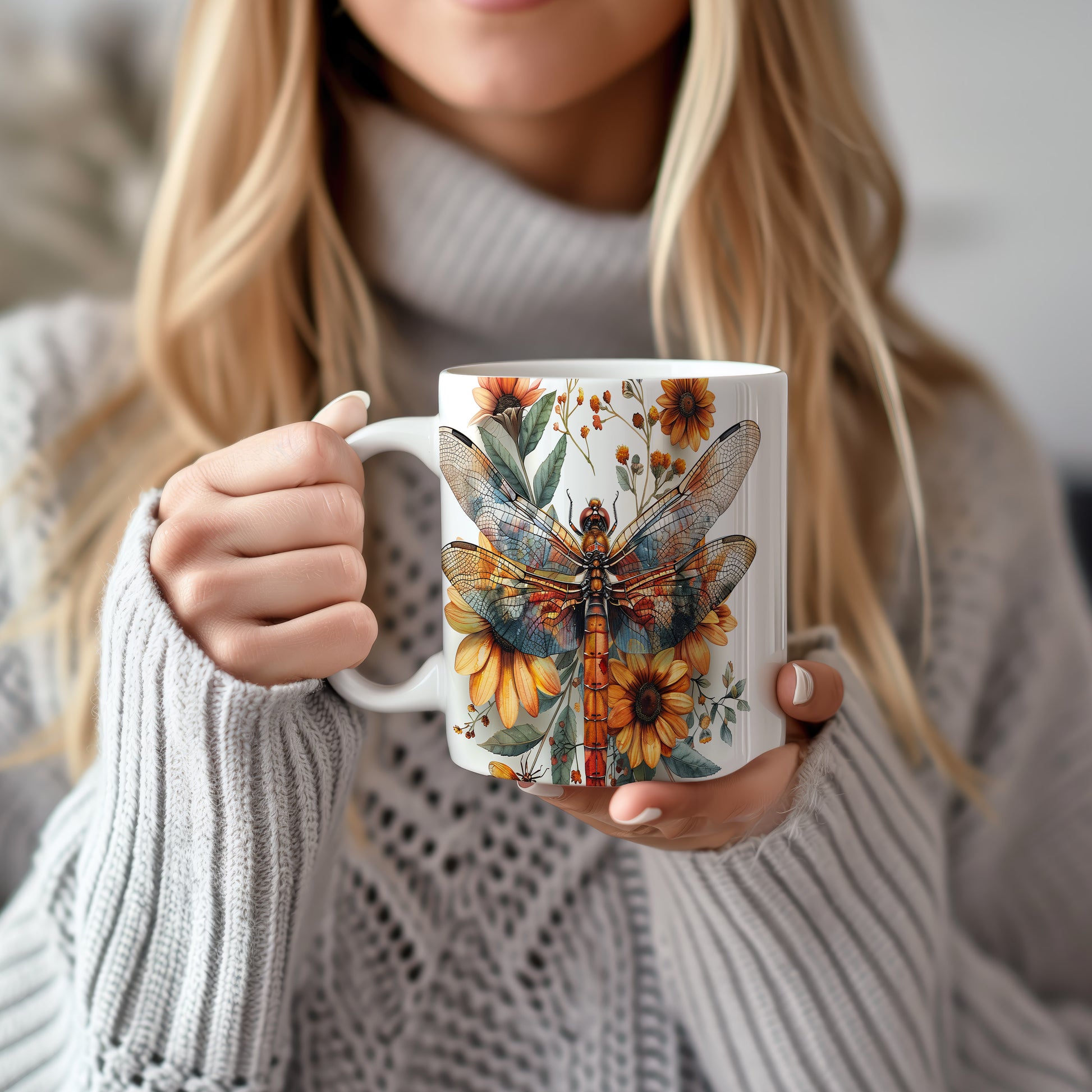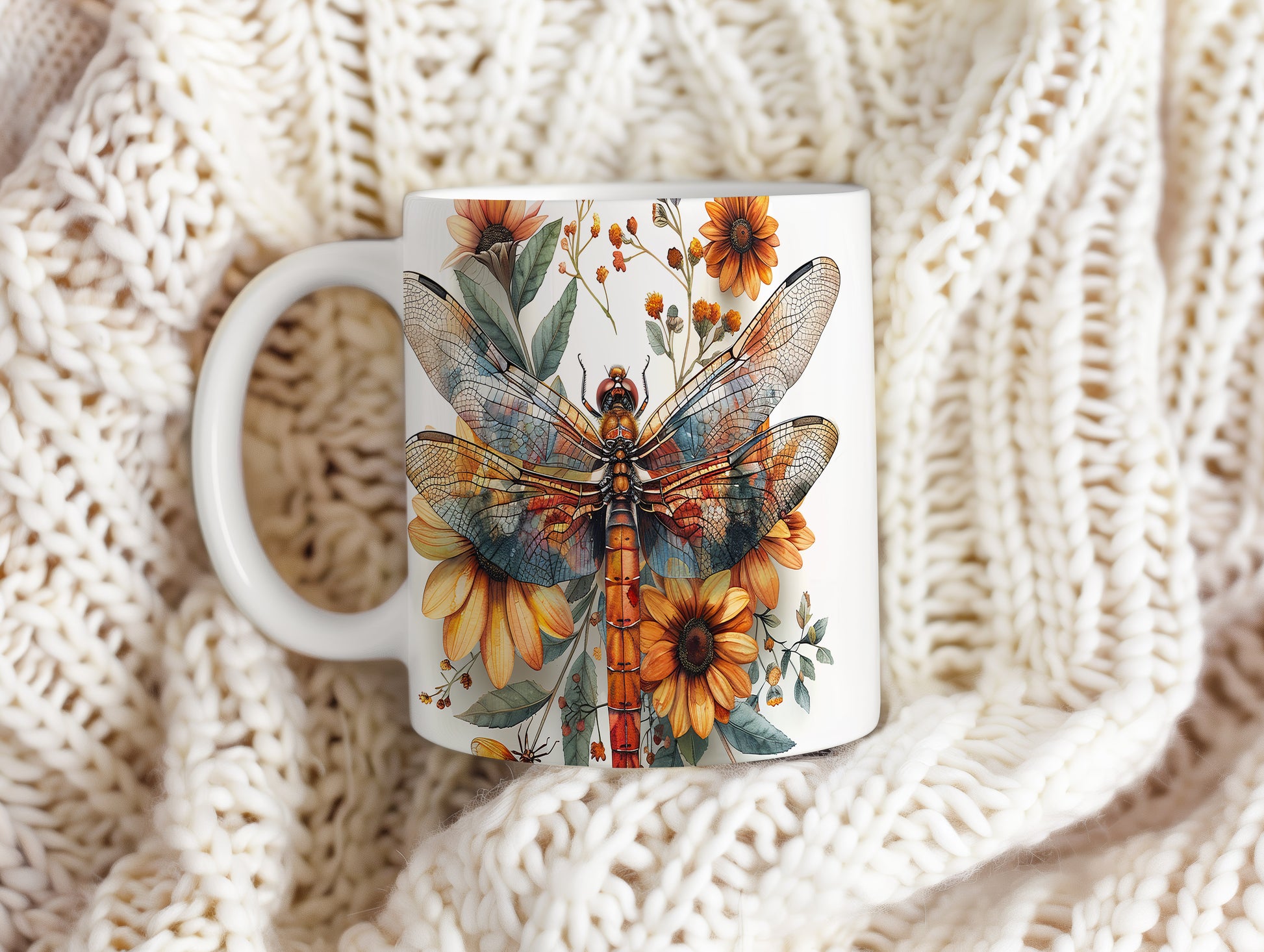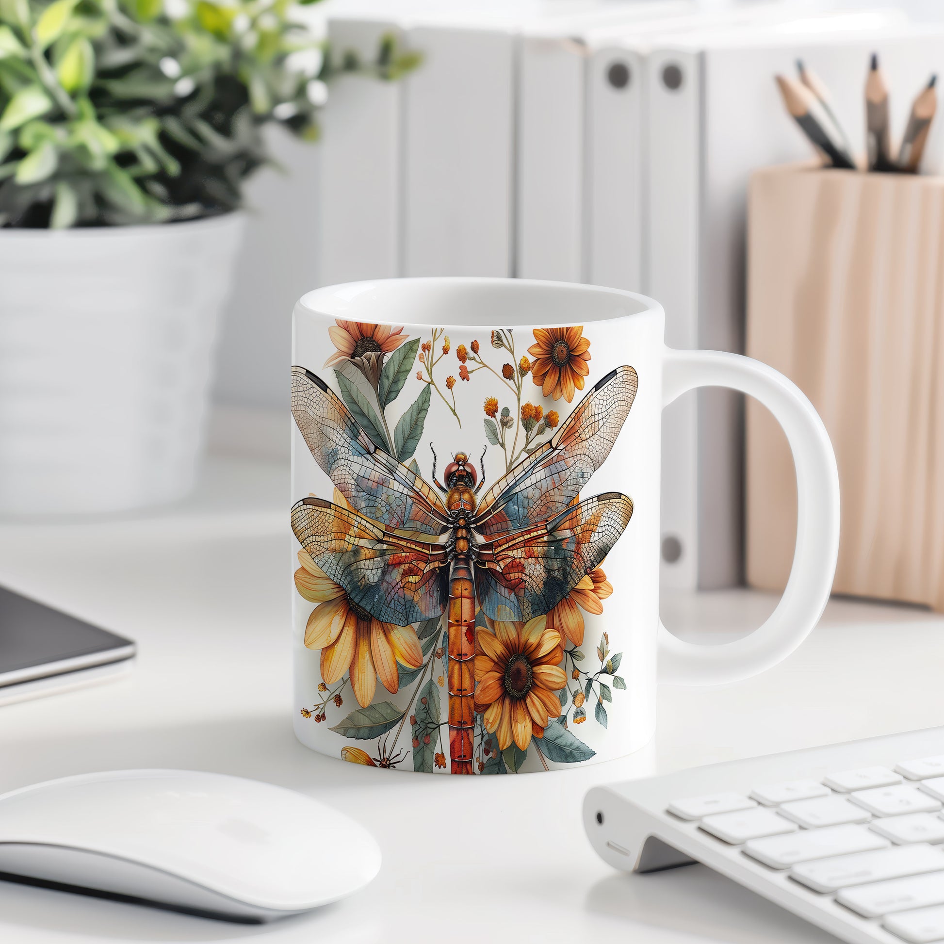 Hrnek s detailní ilustrací vážky obklopené květinami, včetně slunečnic. Tento kousek potěší milovníky přírody a hmyzu, ideální jako dárek pro přátele nebo rodinu. Materiál: keramika. Objem: 330 ml. Vhodné do myčky i mikrovlnky. Používání tohoto hrnku přináší radost z každého doušku.
