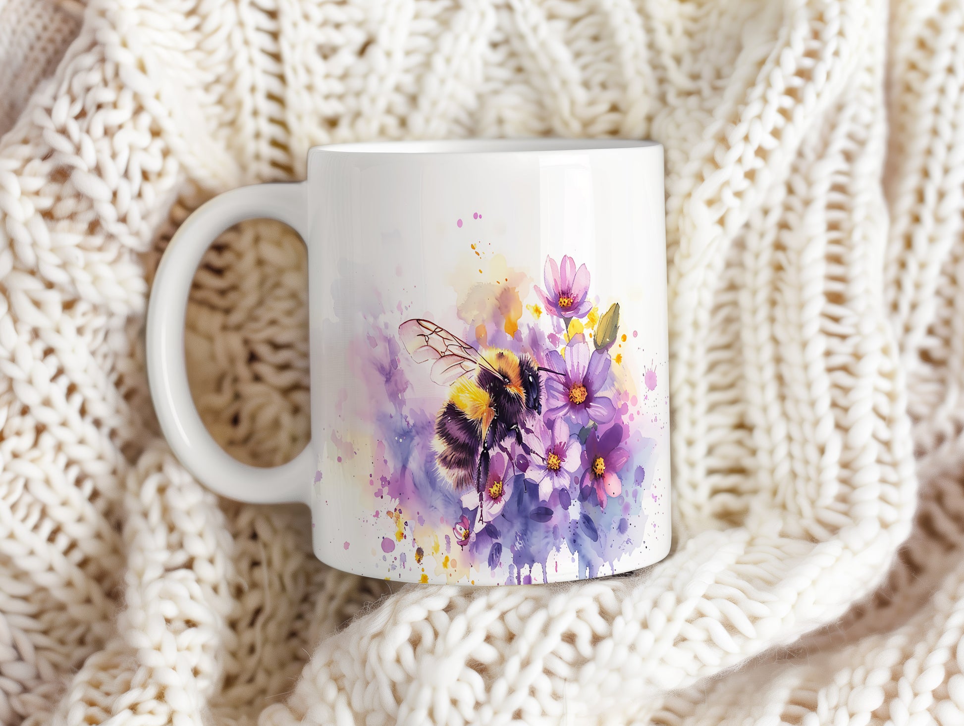 Hrnek s včelou a květinami – bílým provedením