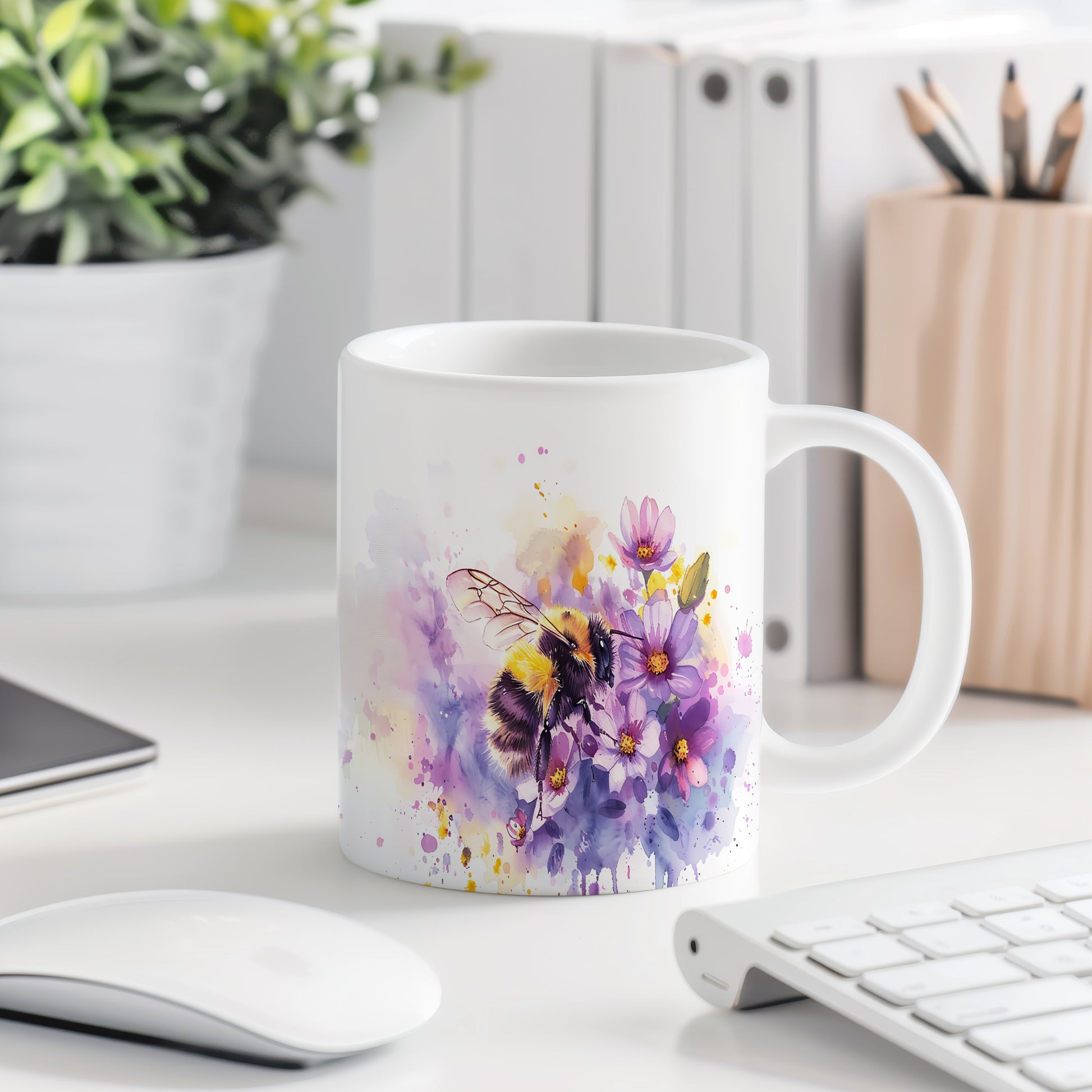 Hrnek s včelou a květinami je krásným kouskem, který potěší milovníky přírody. Tento hrnek je skvělým dárkem pro přátele nebo rodinu, kteří ocení originální design. Materiál: keramika. Objem: 330 ml. Vhodné do myčky i mikrovlnky. Používání tohoto hrnku přináší radost z každého doušku oblíbeného nápoje.