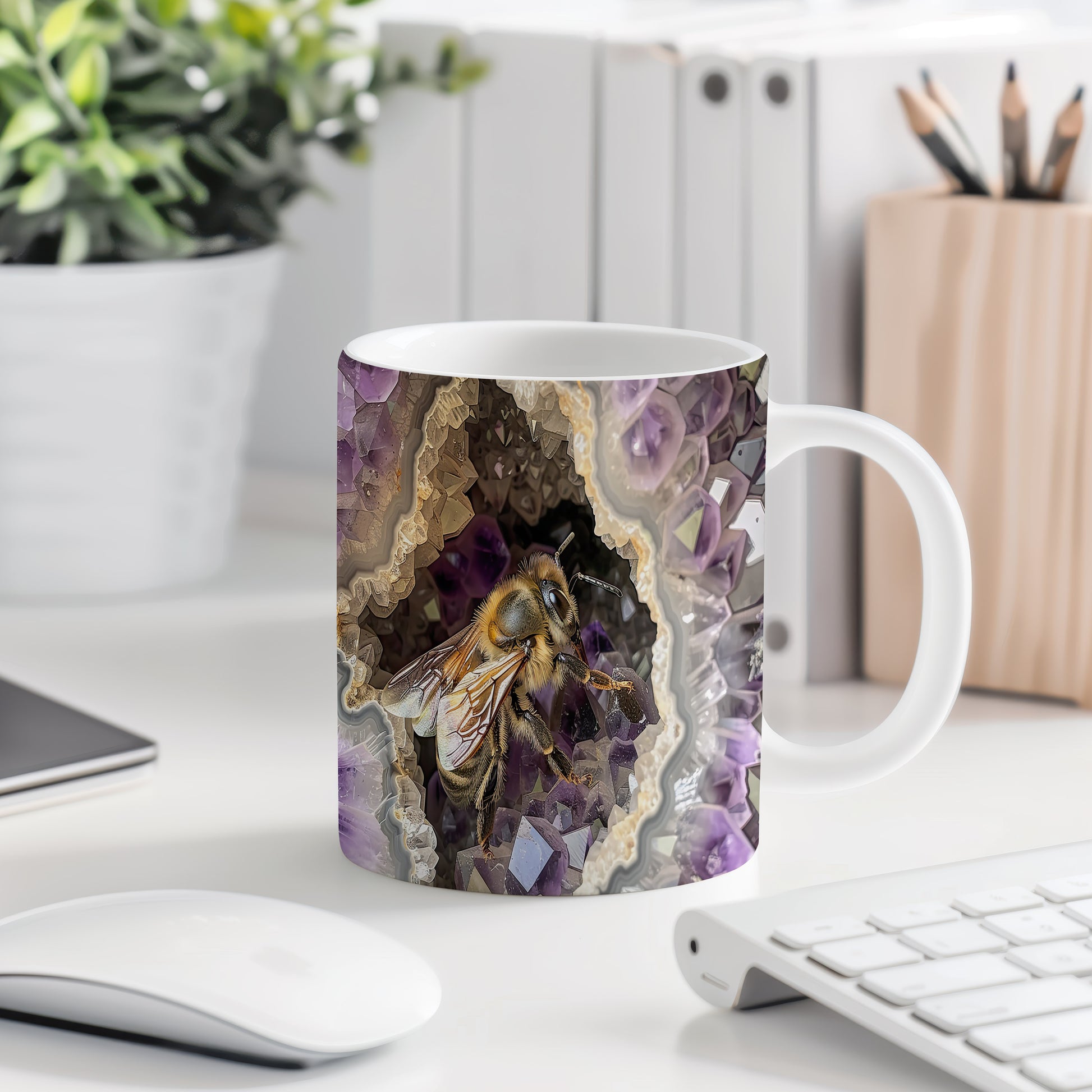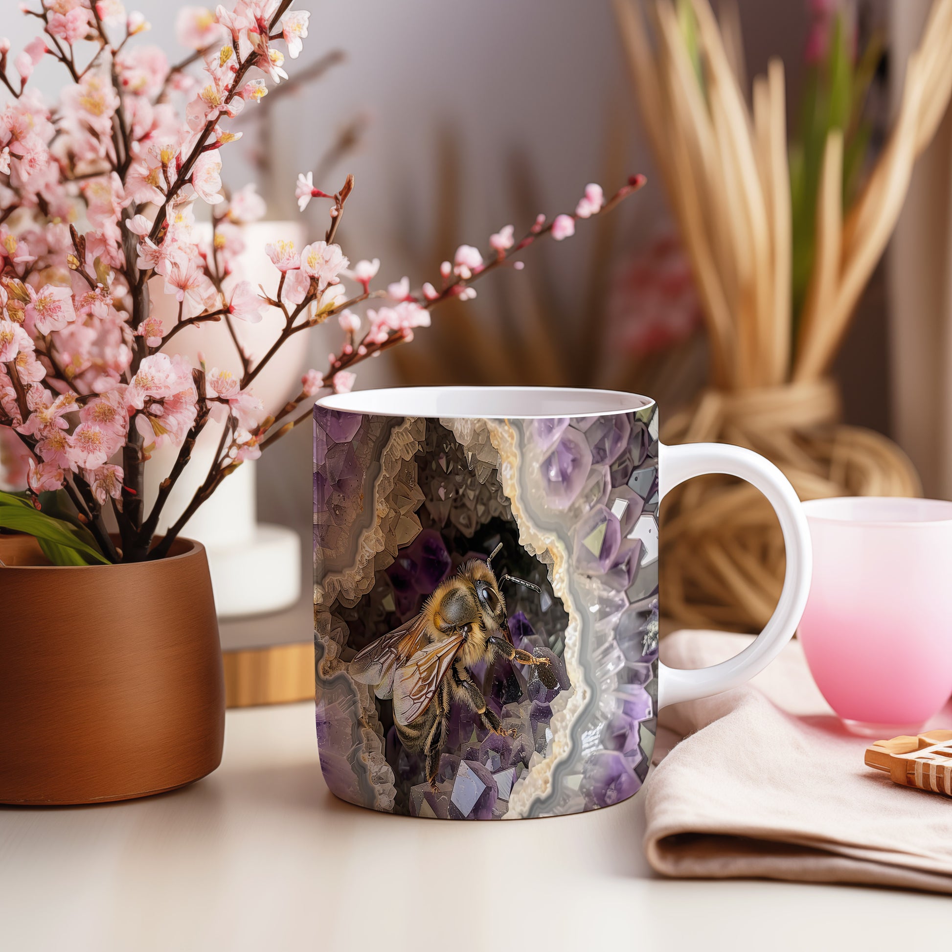Tento hrnek s motivem včely na ametystových krystalech přináší do vašeho domova přírodní krásu a eleganci. Je ideální pro milovníky přírody a skvělým dárkem pro každého, kdo ocení jedinečný design. Materiál: keramika. Objem: 330 ml. Vhodné do myčky i mikrovlnky. Při každém doušku si užijete nejen nápoj, ale i pohled na tento krásný motiv.