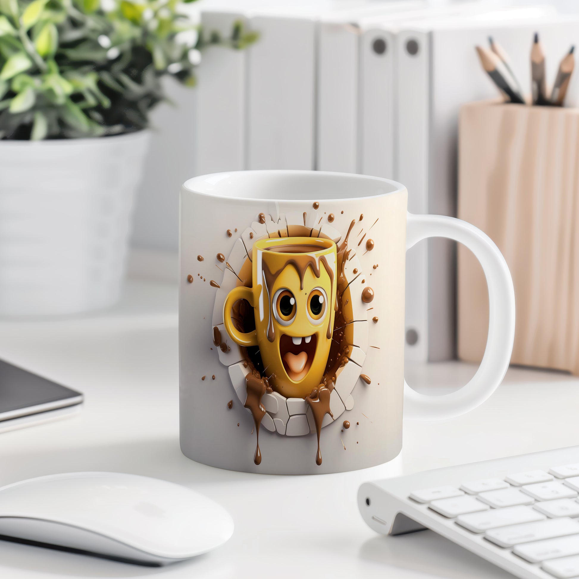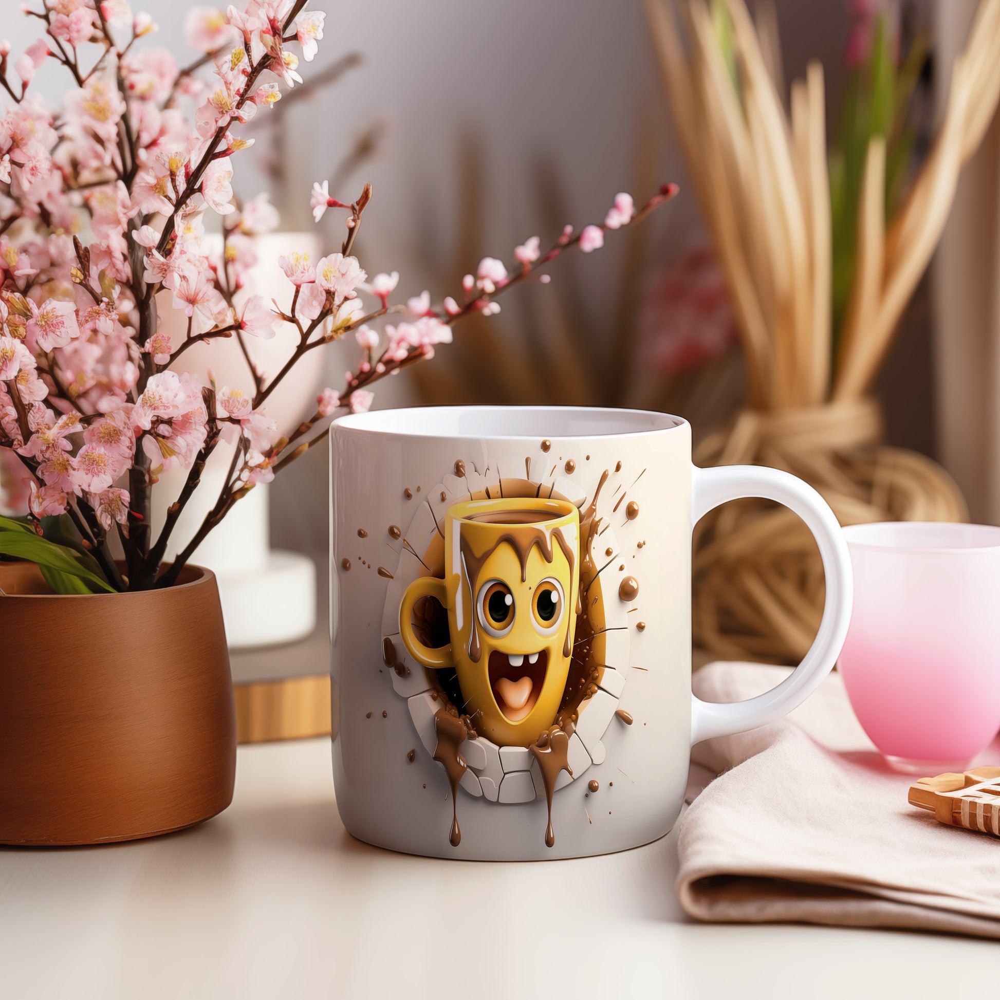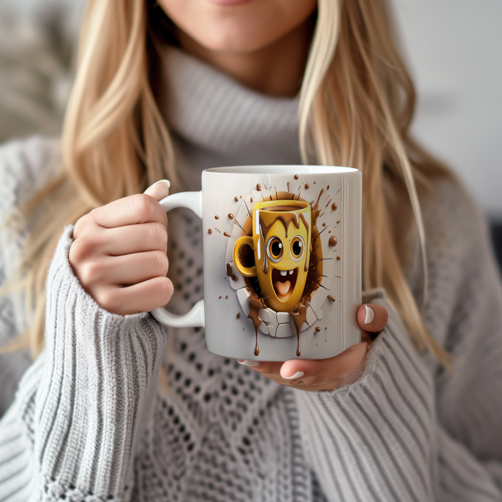 Veselý hrnek s obličejem a čokoládovými kapkami je skvělým kouskem pro každého, kdo má rád dobrou náladu. Tento hrnek je ideální jako dárek pro milovníky kávy nebo čokolády. Materiál: keramika. Objem: 330 ml. Vhodné do myčky i mikrovlnky. Používání tohoto hrnku přináší radost a zábavu při každém doušku.