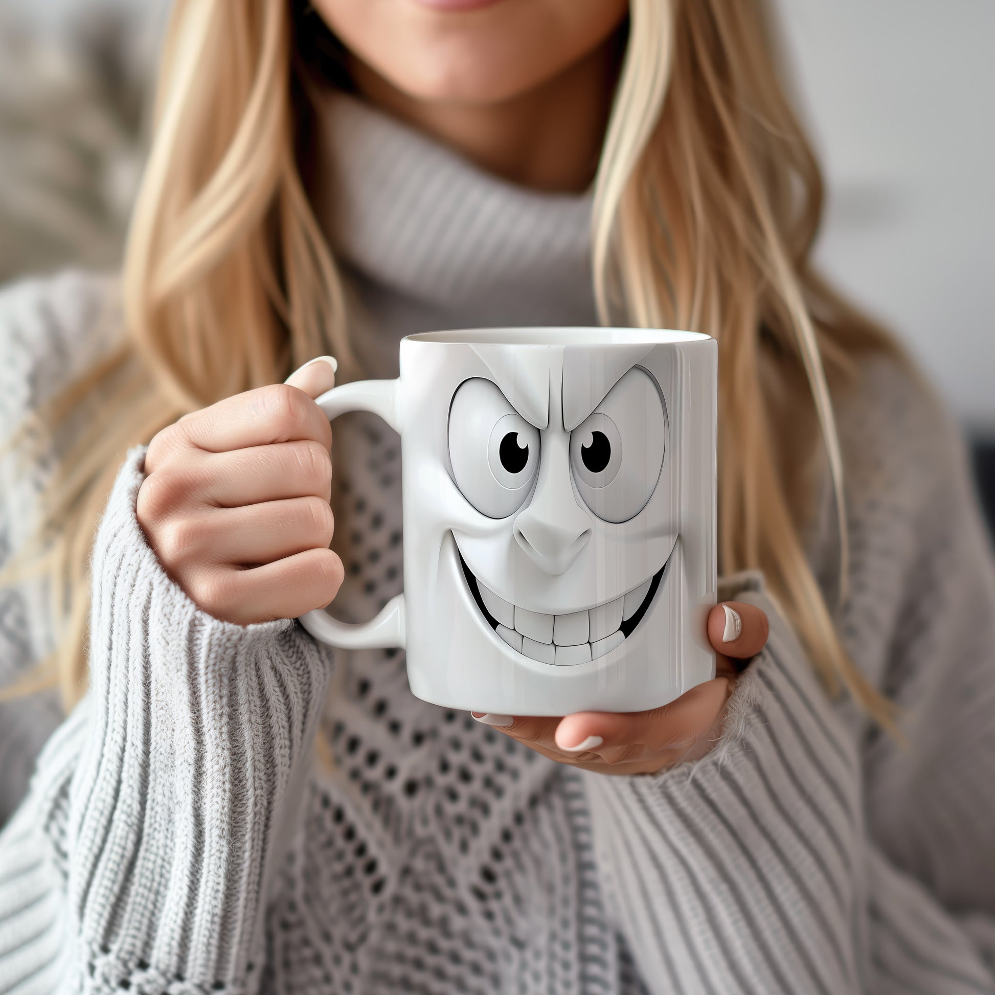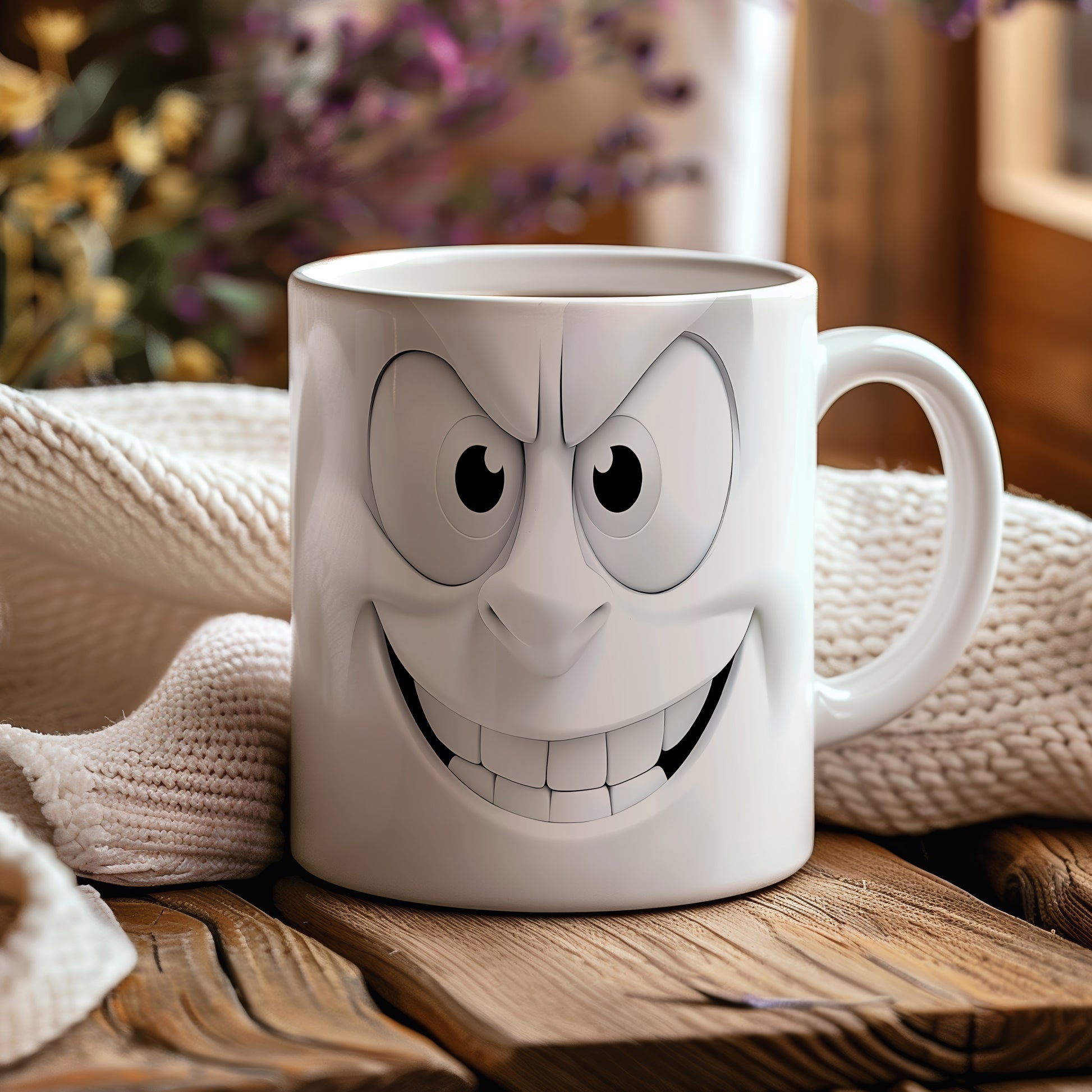 Tento hrnek s veselým obličejem přináší do vašeho dne humor a radost. Je ideální pro všechny, kteří chtějí začít den s úsměvem, nebo jako originální dárek pro přátele a rodinu. Materiál: keramika. Objem: 330 ml. Vhodné do myčky i mikrovlnky. Používáním tohoto hrnku si zpříjemníte každé ráno a dodáte si dobrou náladu.