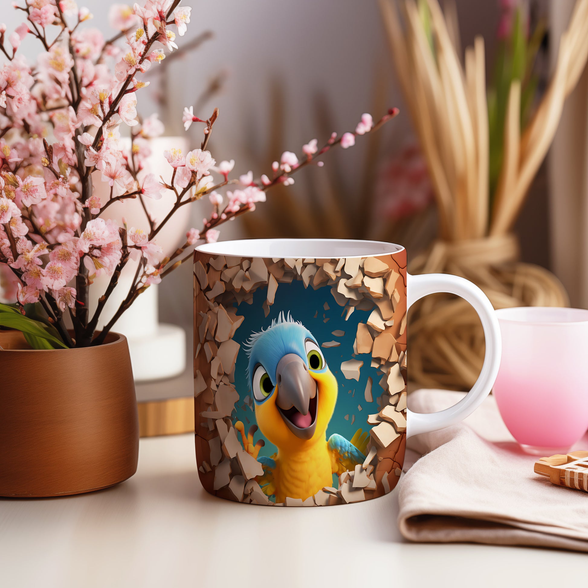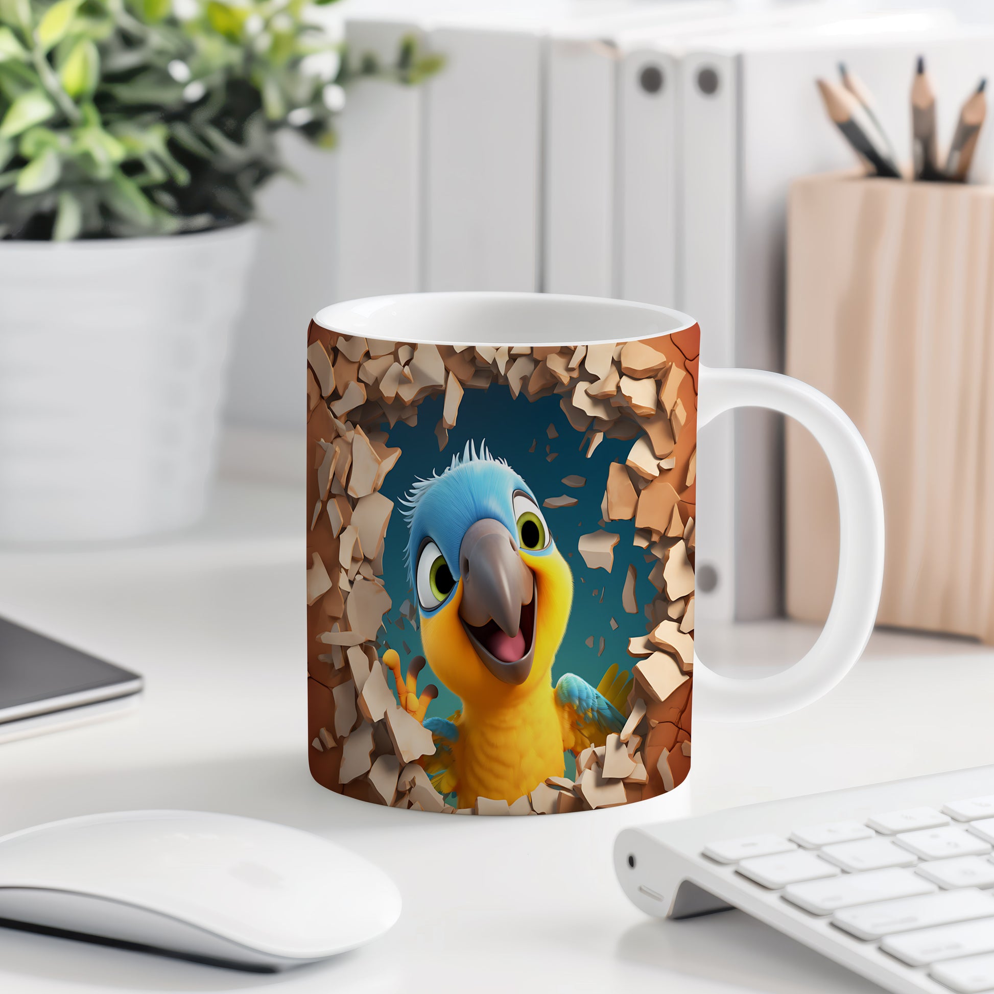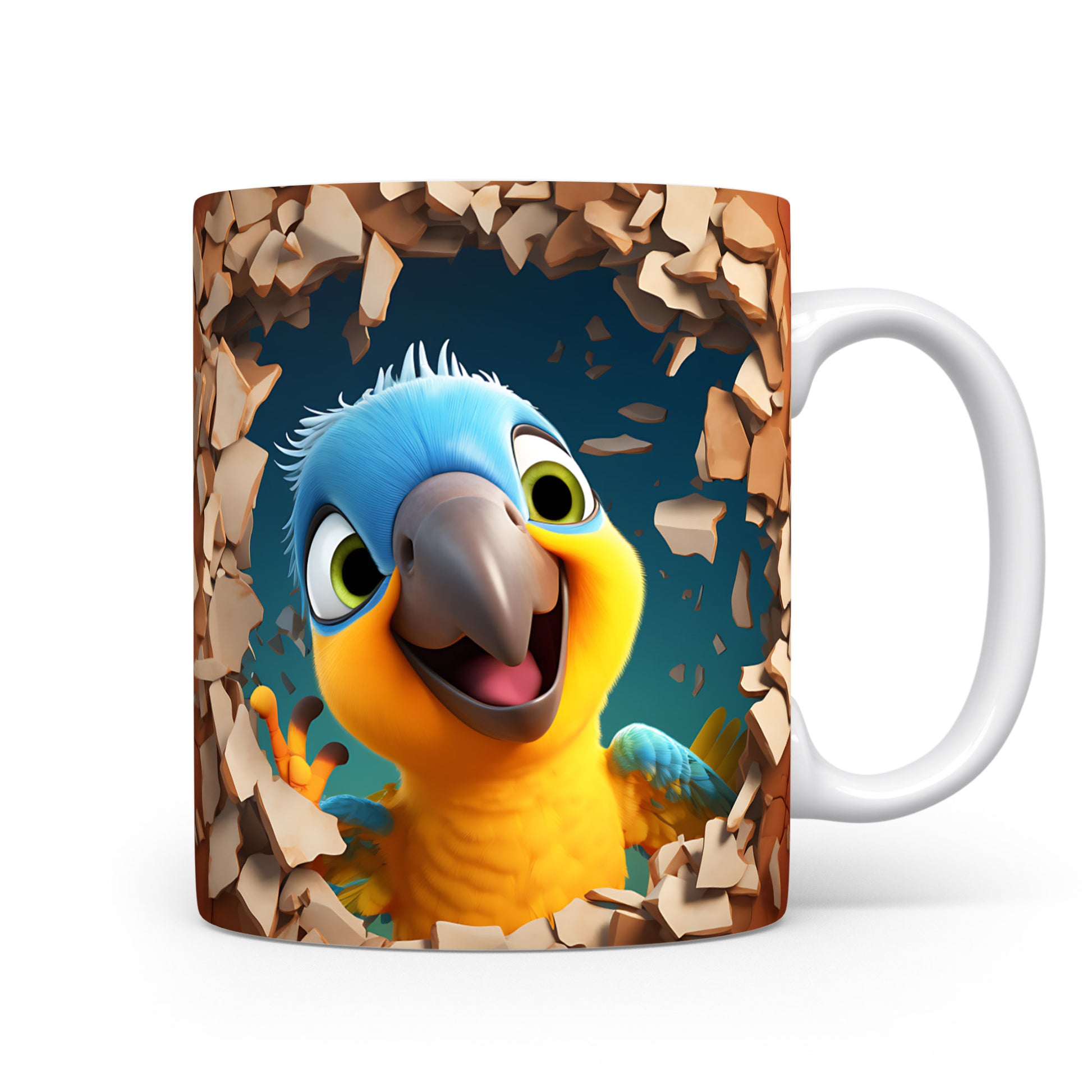 Hrnek s veselým papouškem – 3D efektem