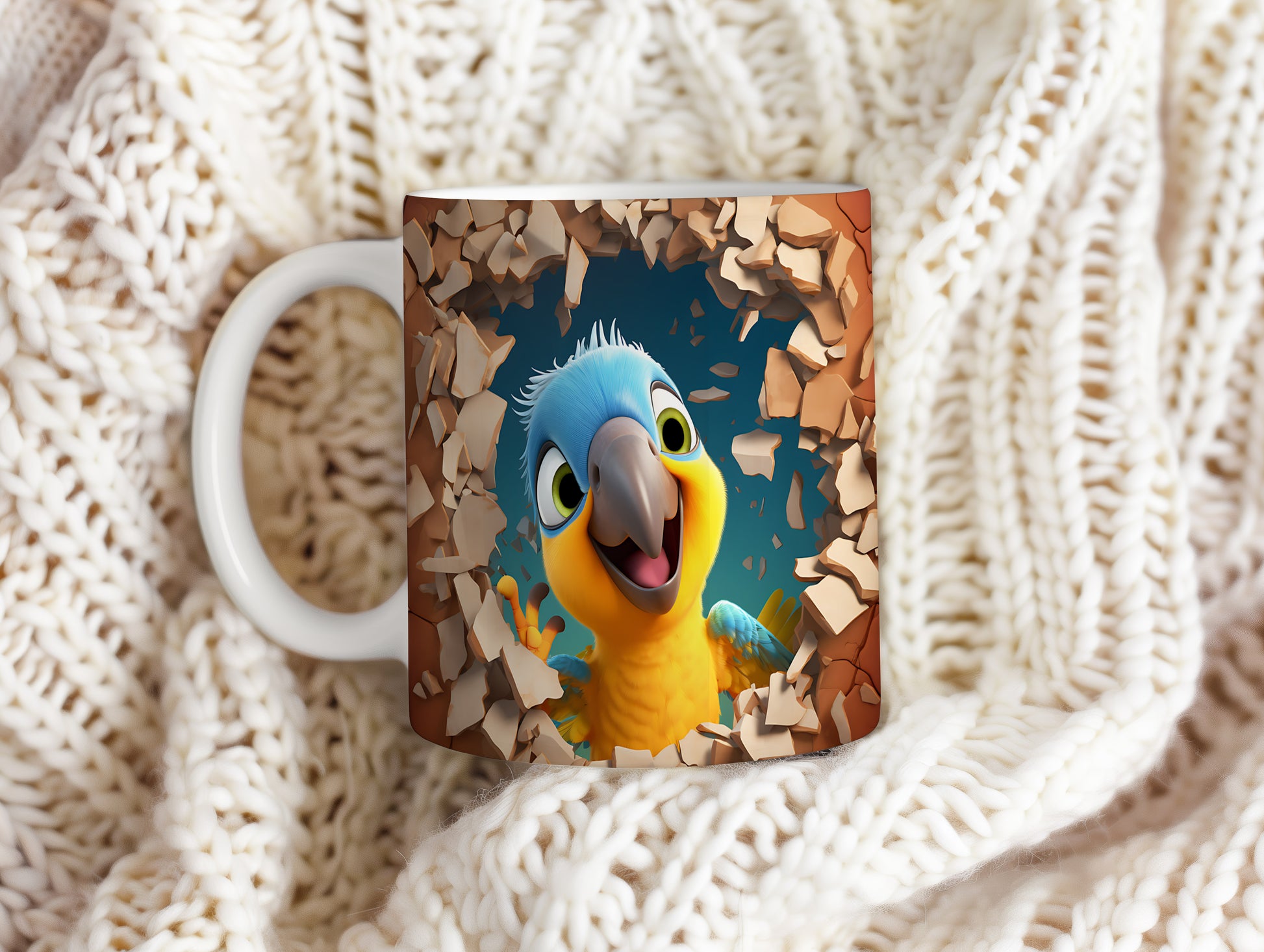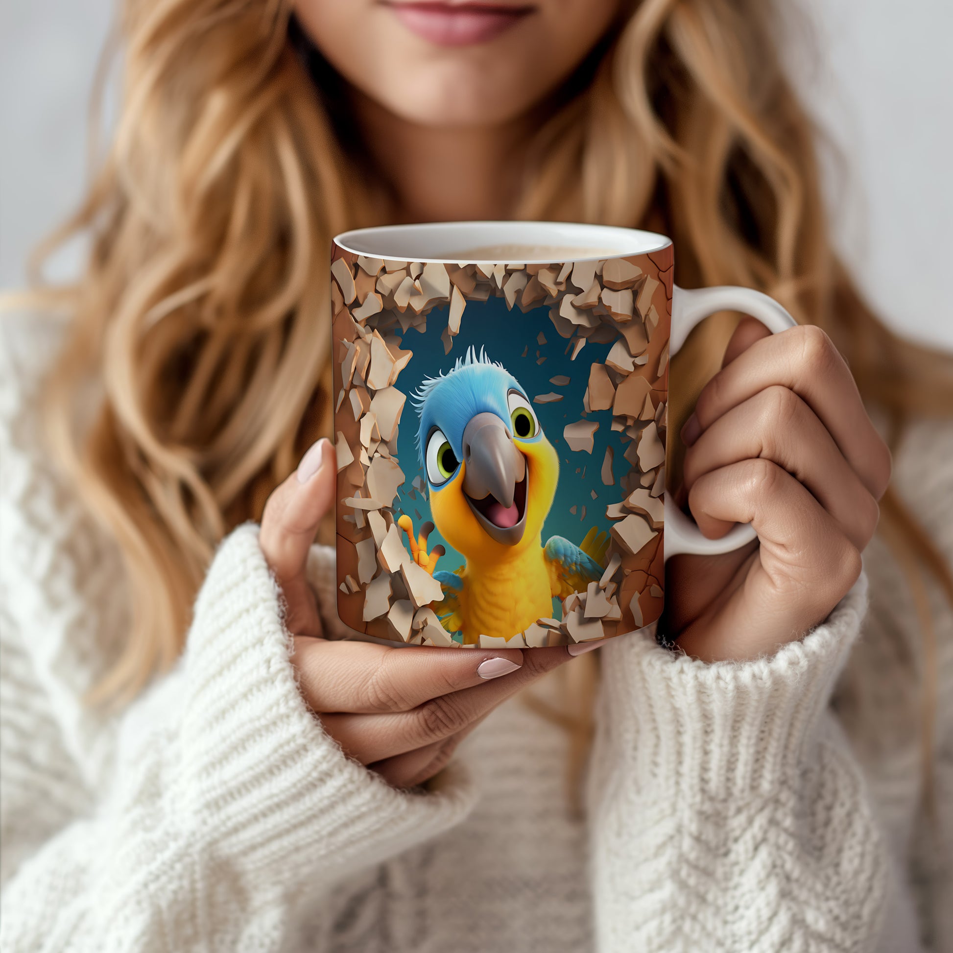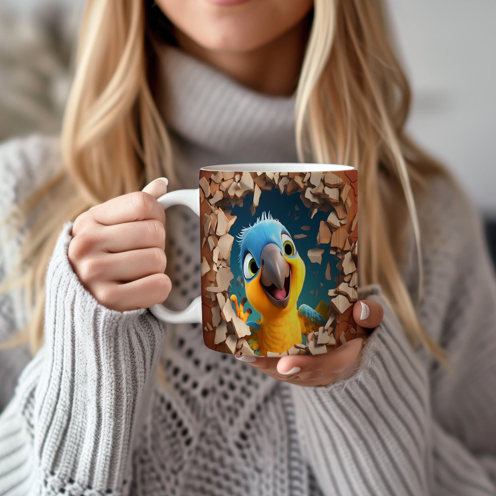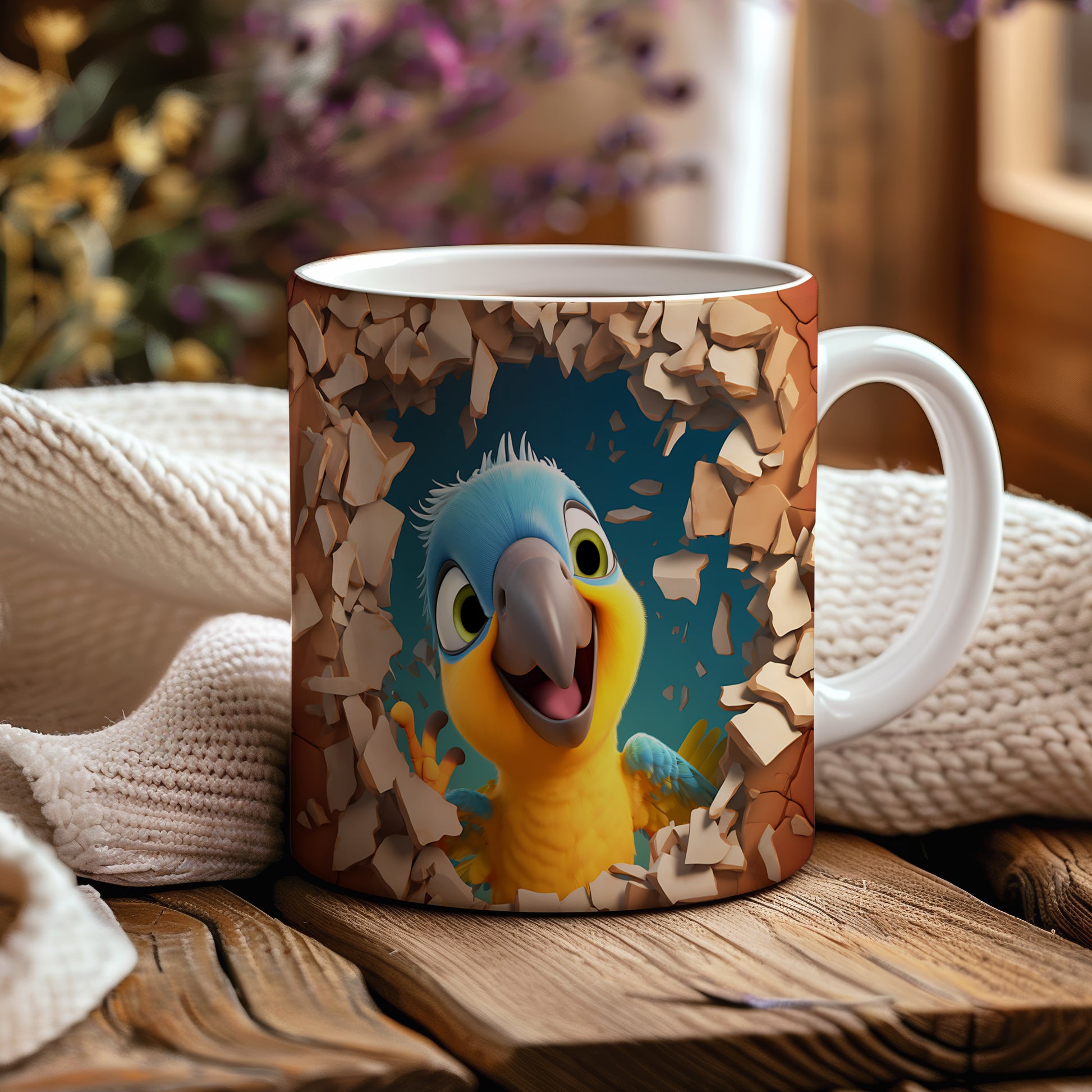 Hrnek s veselým papouškem – 3D efektem
