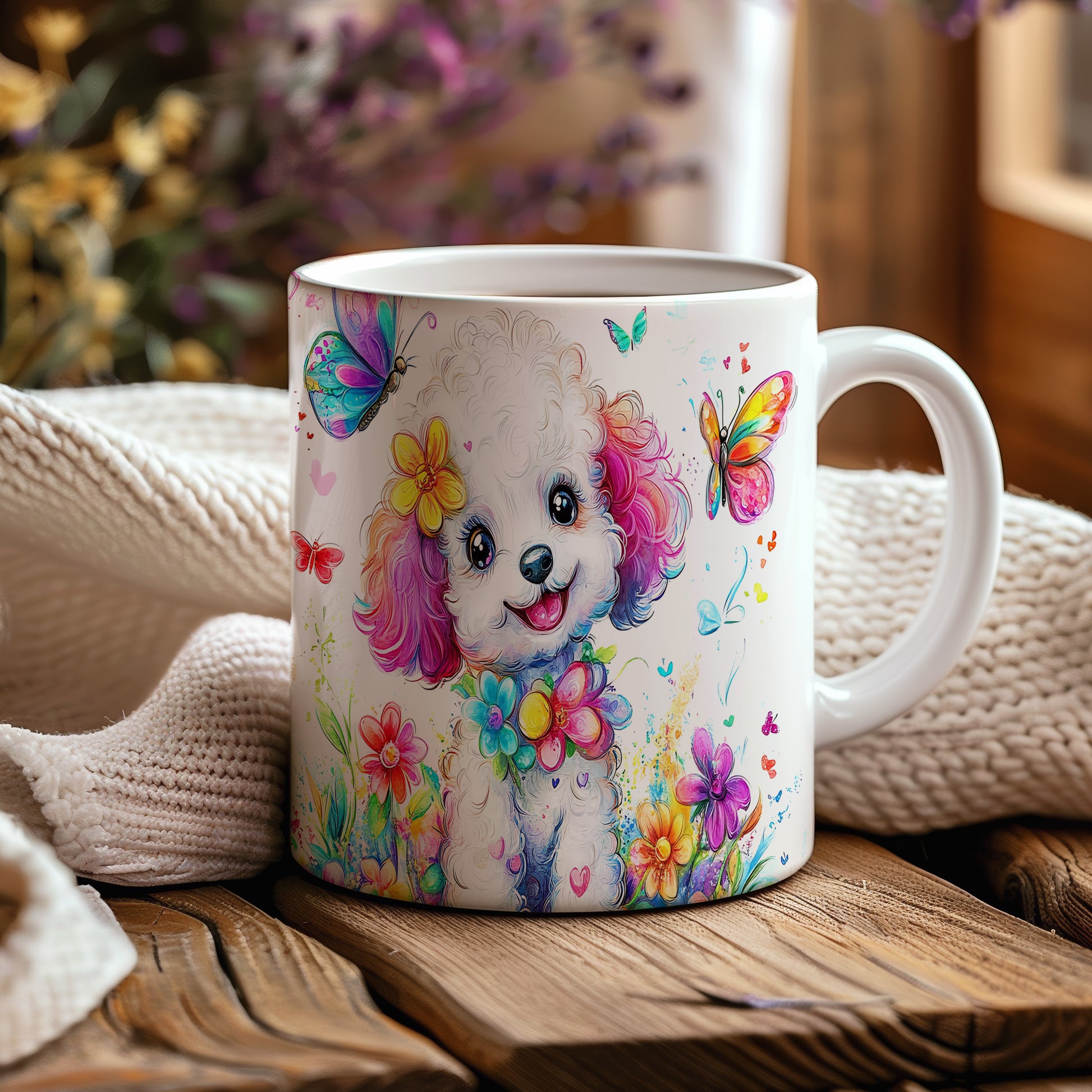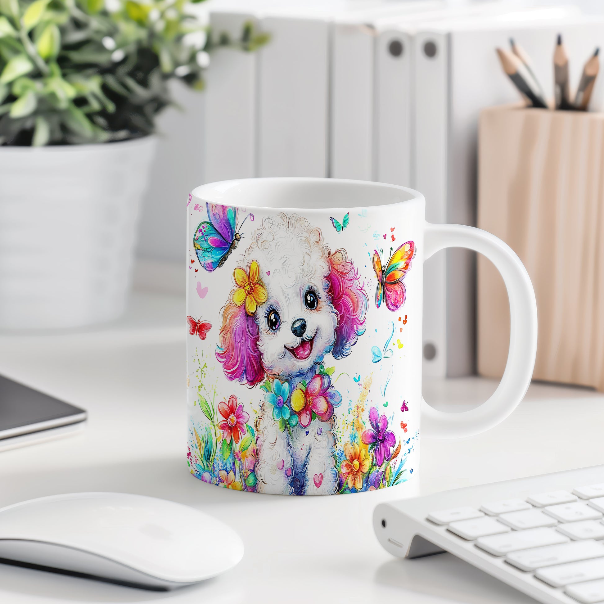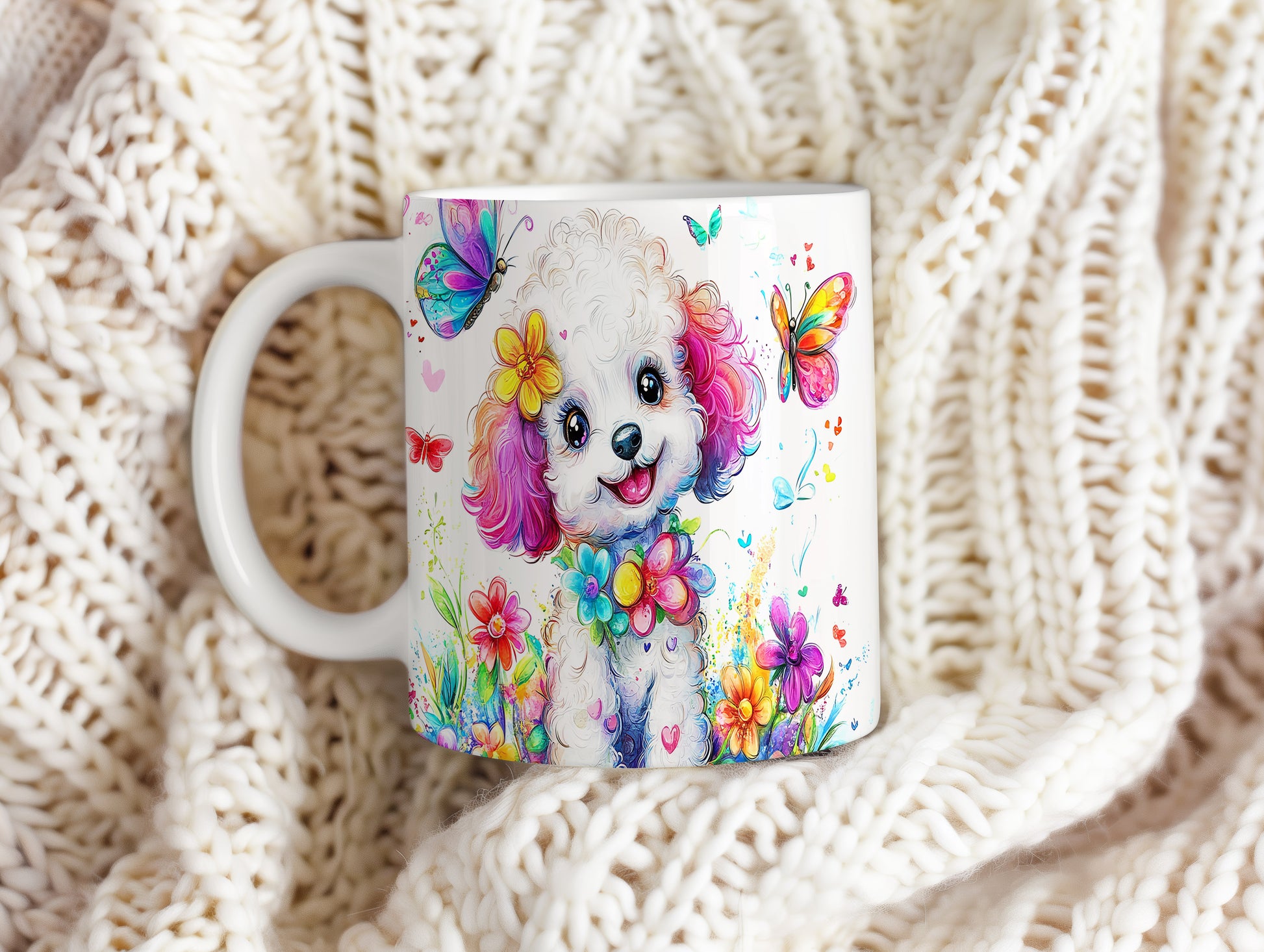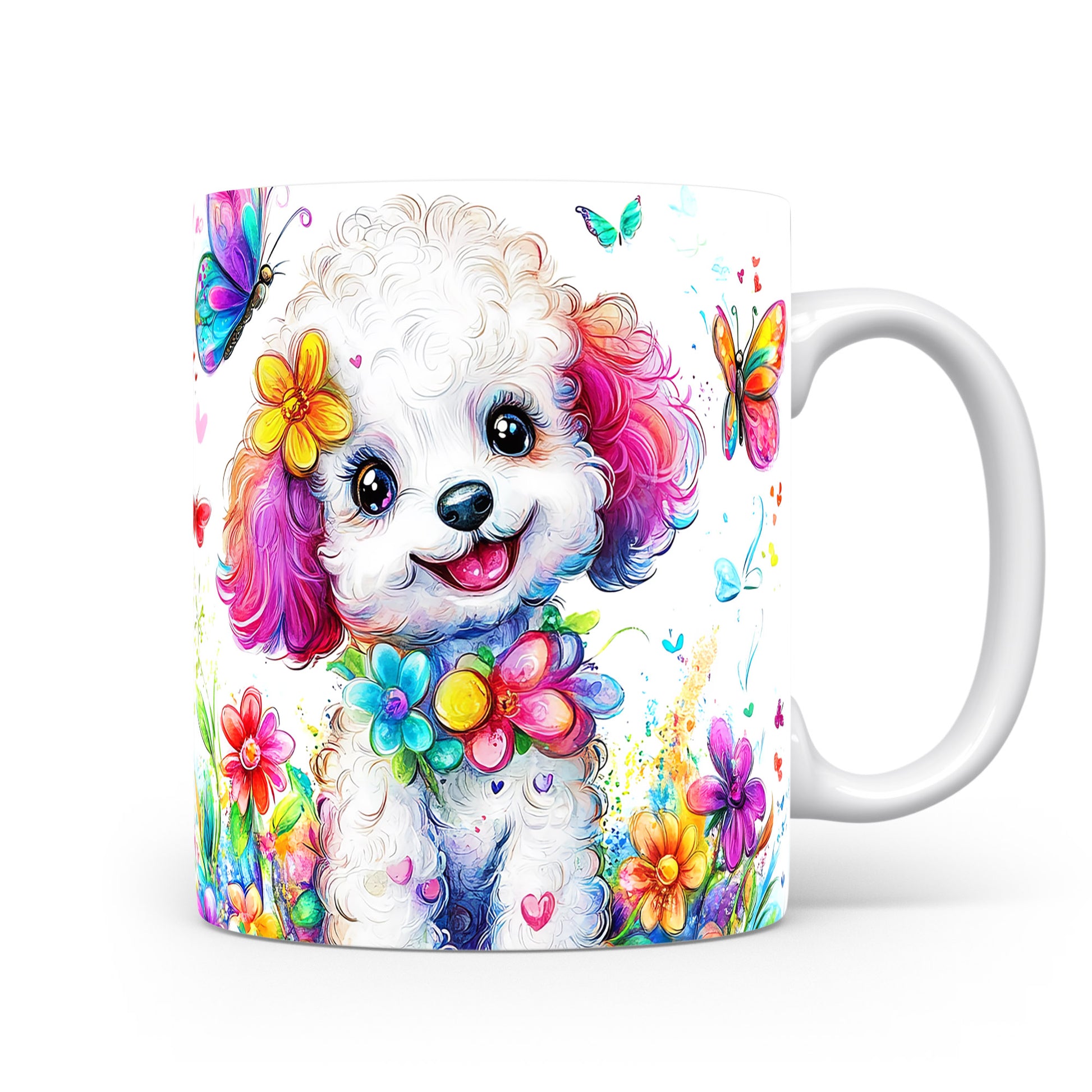 Hrnek s veselým Pudlem a květinami v modrých tónech…