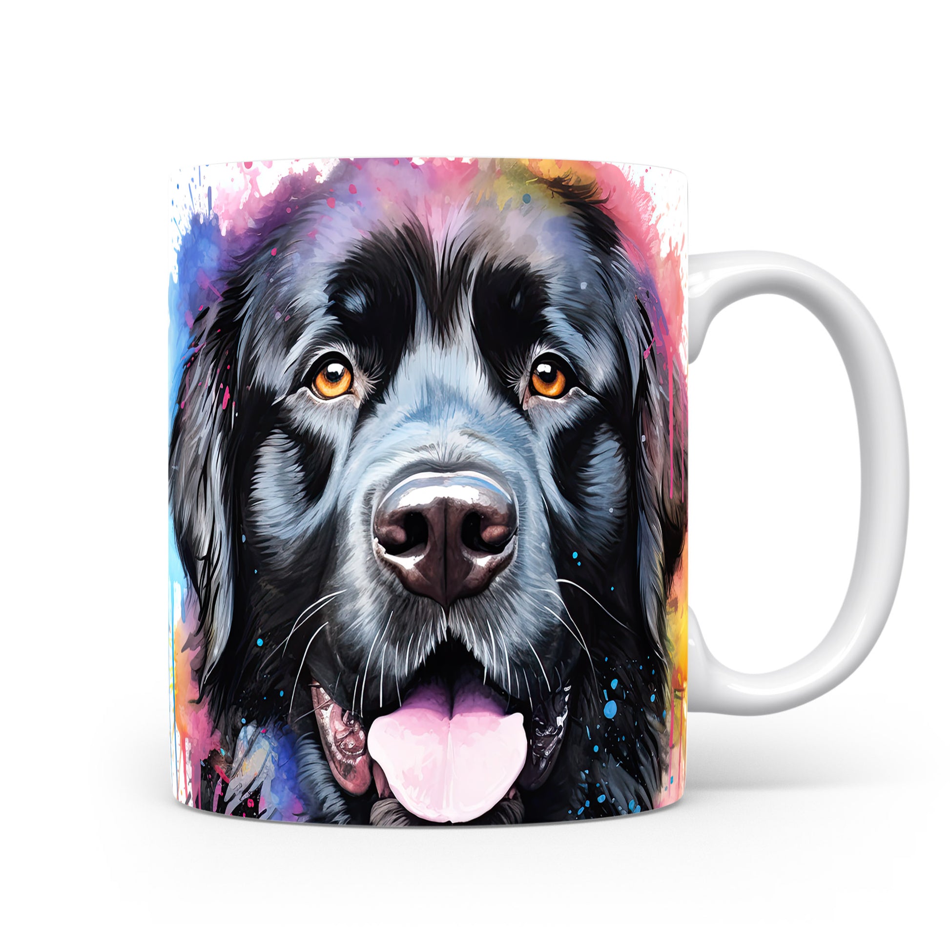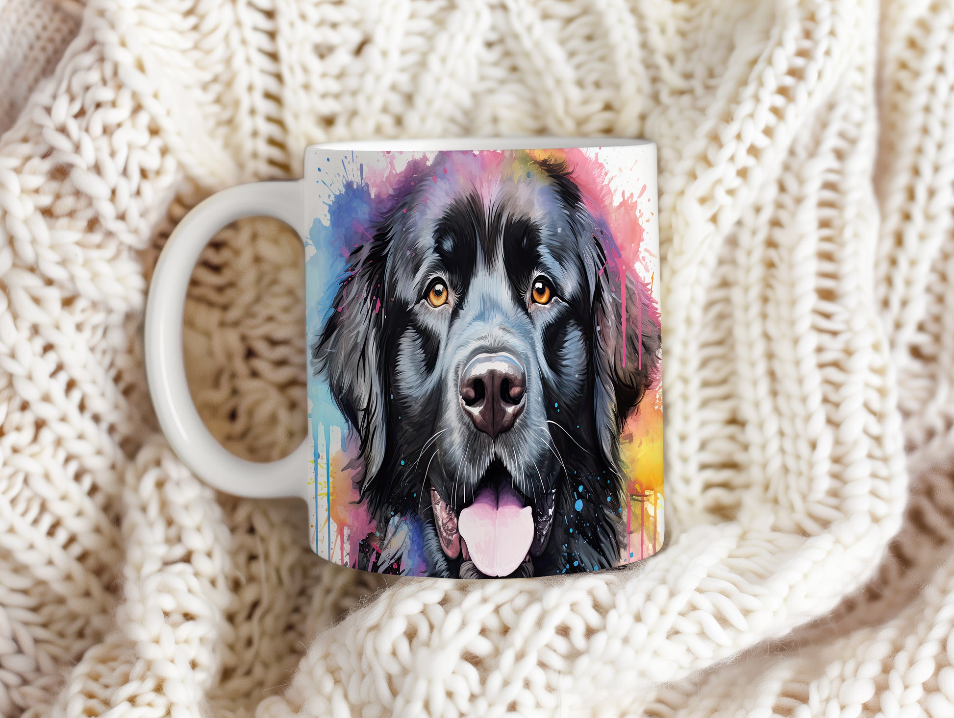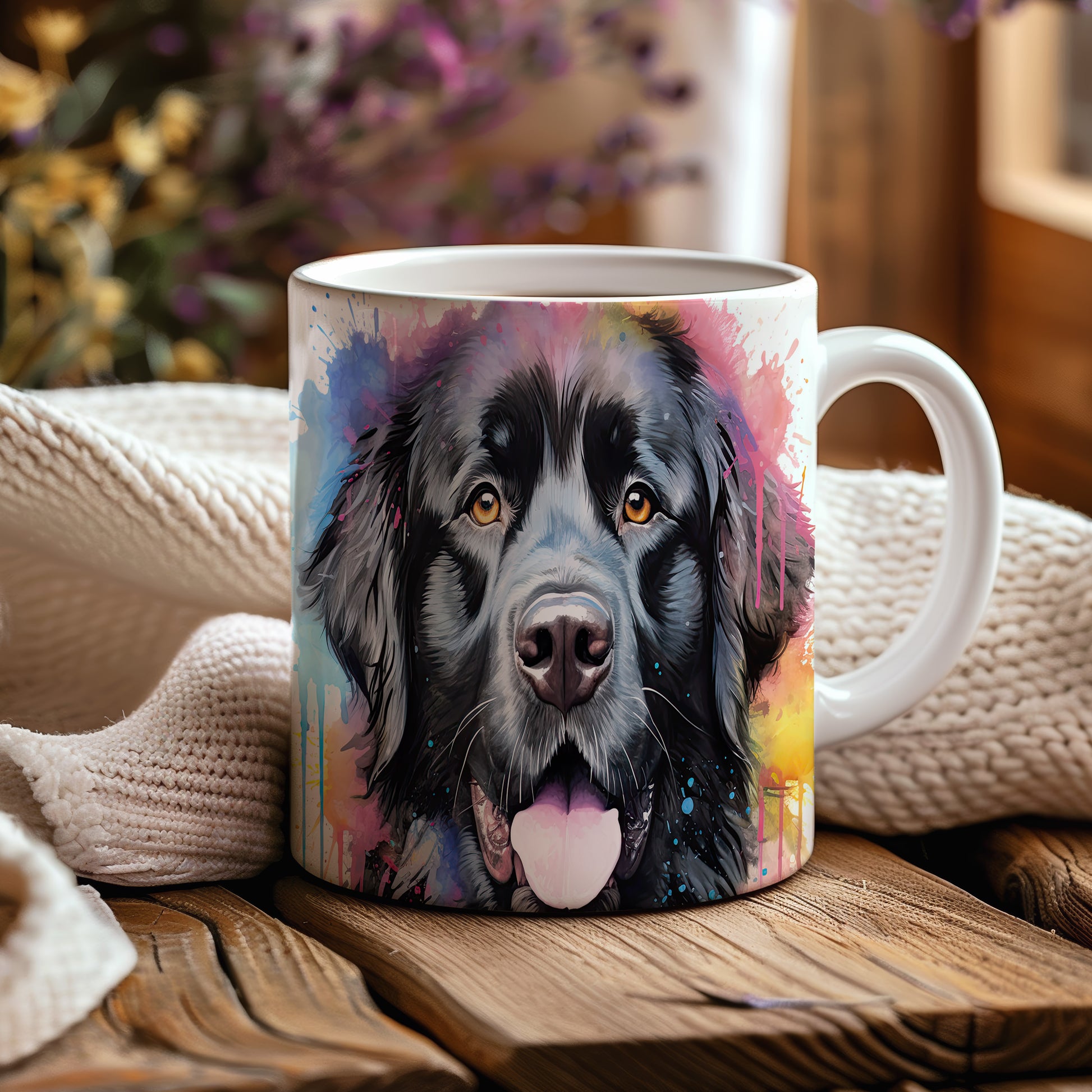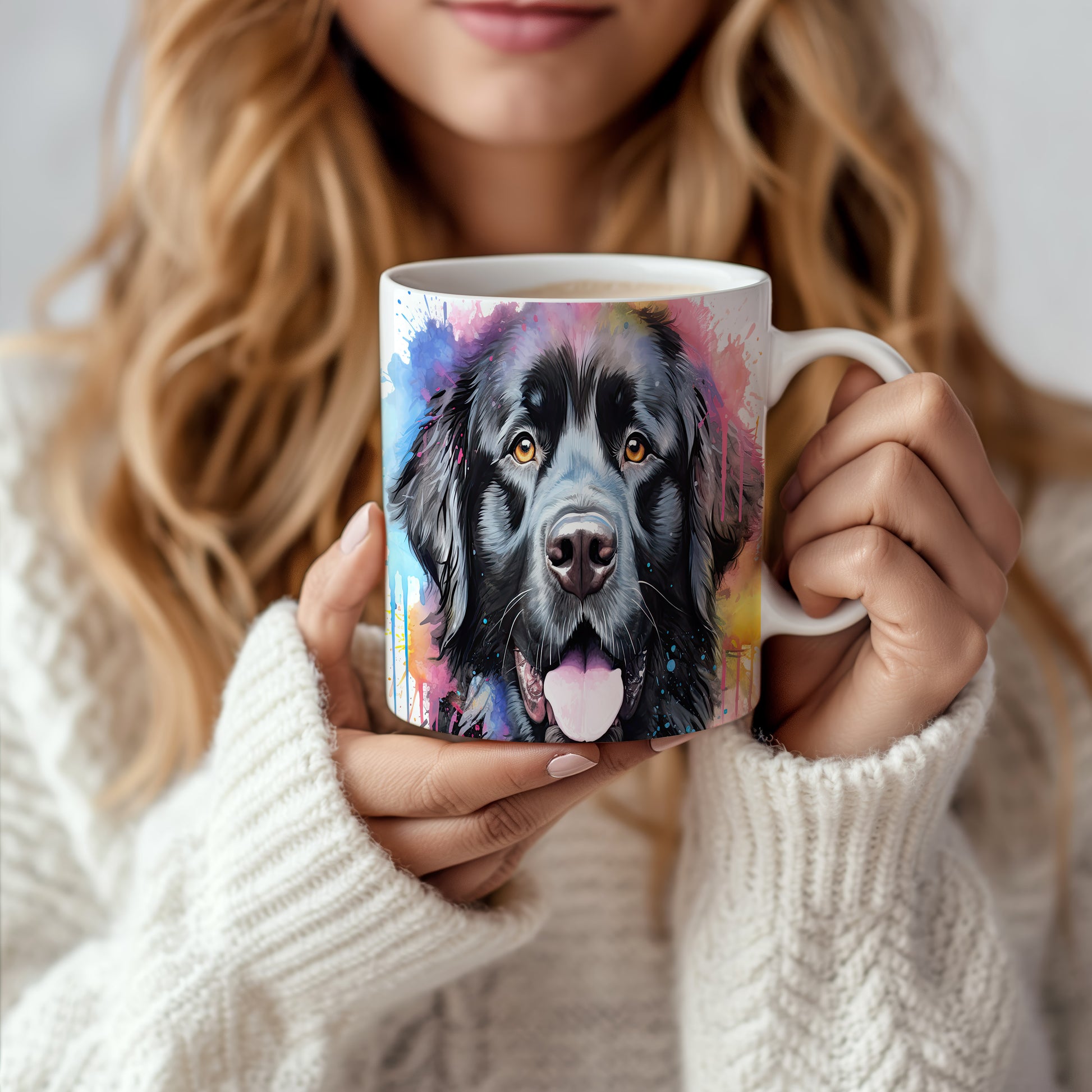 Hrnek s veselým portrétem černého psa v digitálním stylu