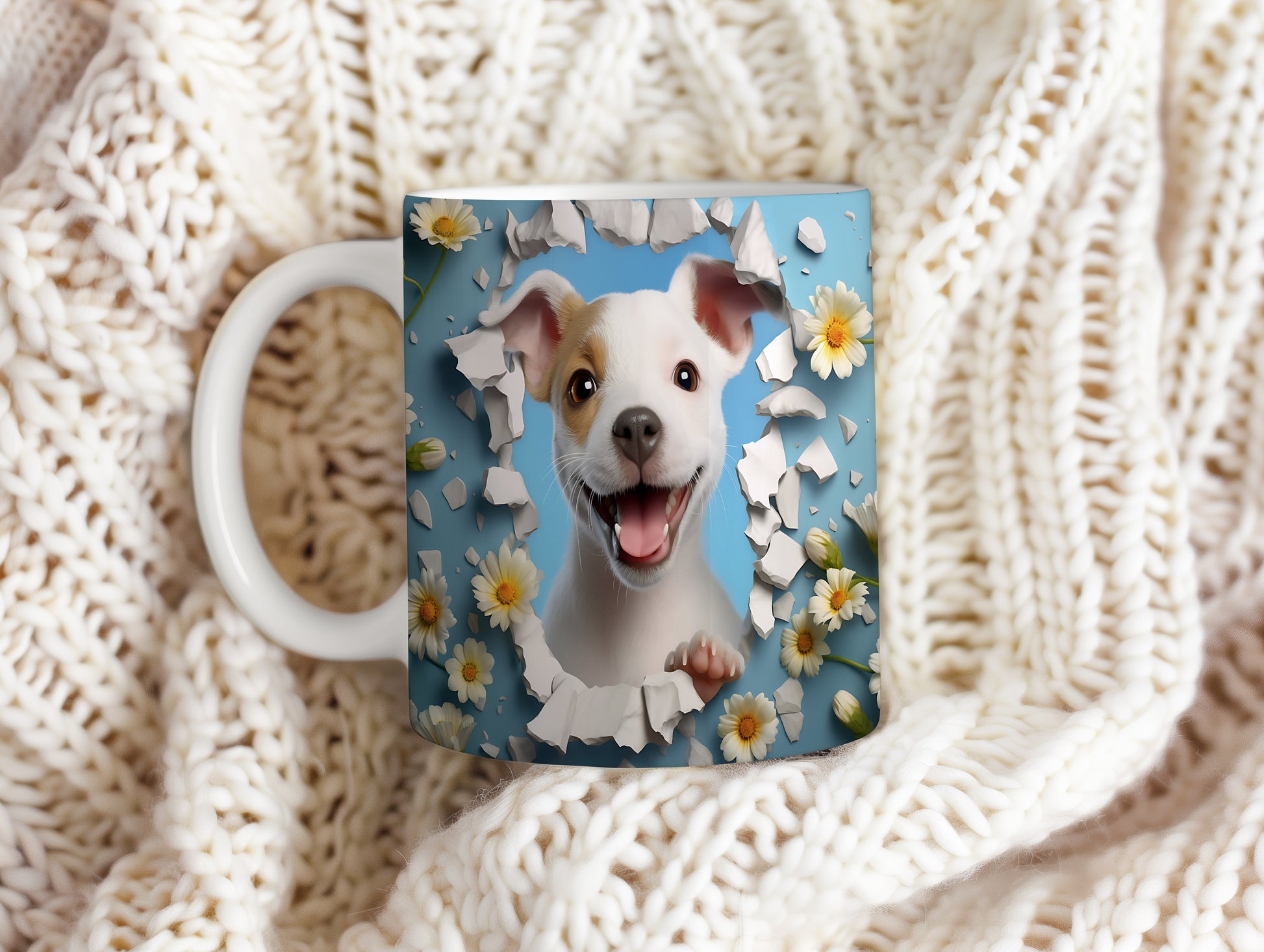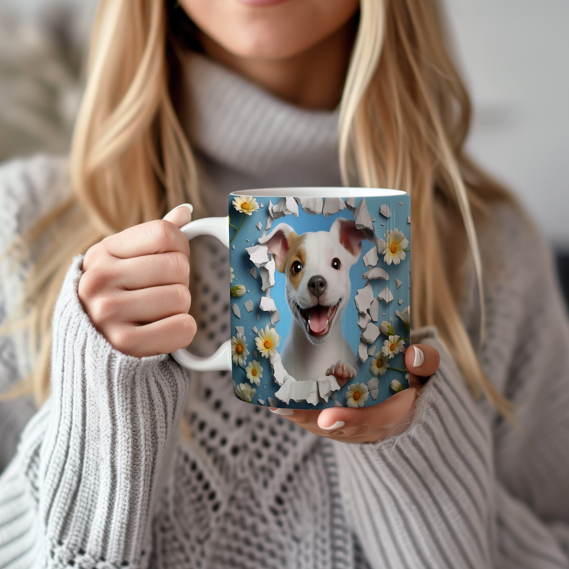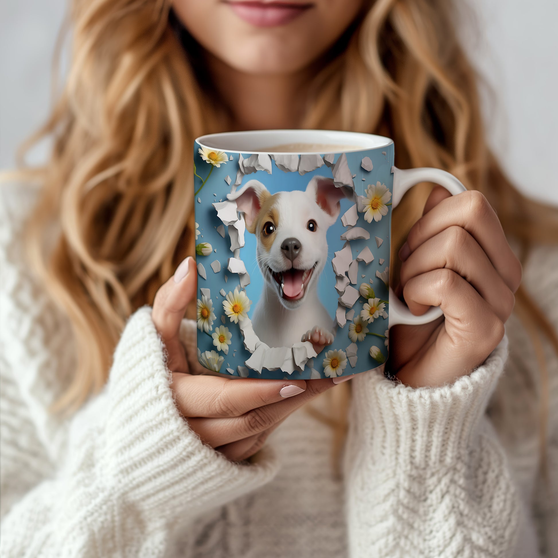 Na hrnku je veselý psík s úsměvem a vystrčenou tlapkou, obklopený květinami na modrém pozadí. Tento hrnek je ideální pro milovníky zvířat a skvělý tip na dárek pro každého, kdo si rád vychutná kávu nebo čaj. Materiál: keramika. Objem: 330 ml. Vhodné do myčky i mikrovlnky. Používání tohoto hrnku přináší radost a pozitivní energii do každého dne.